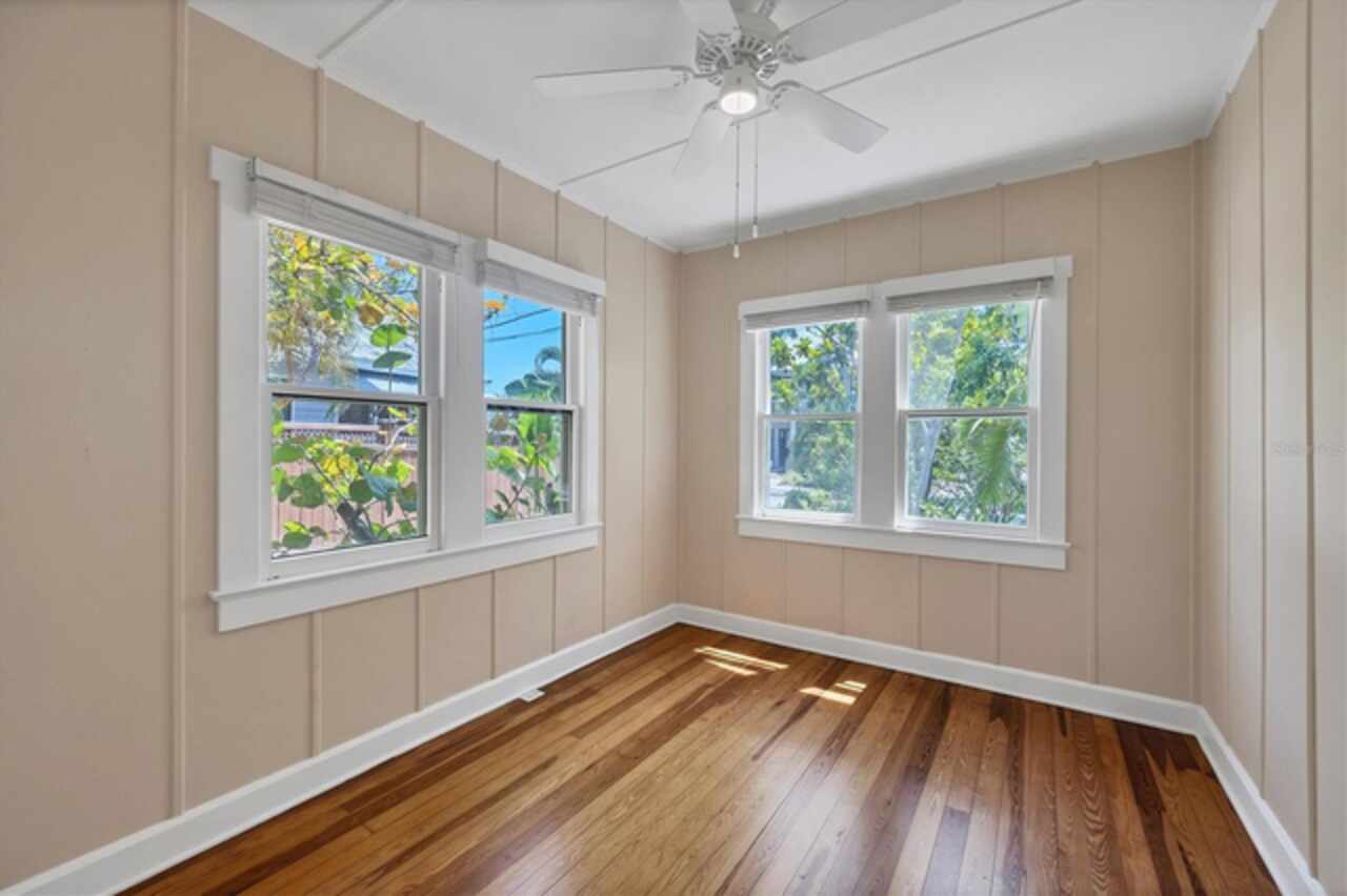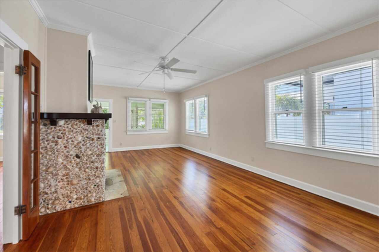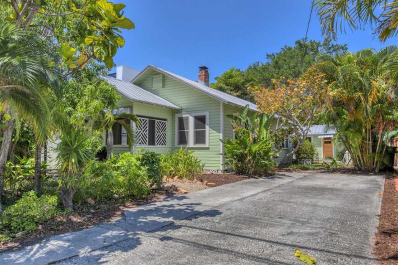 One or more photo(s) has been virtually staged. Prime West-of-Trail location steps to Southside Village and Sarasota Memorial. This 1925 bungalow, with detached guest cottage, offers classic Old Florida charm and rare flexibility. The main home features original heart-pine floors, high ceilings, a bright living area with fireplace, large eat-in kitchen, two bedrooms and one bath, an enclosed back porch for laundry and a generous screened front porch. The guest cottage includes living space, kitchenette, bedroom and bath. Ideal for visitors, office, studio, or rental income. Mature trees, private yard, walkable to dining, cafés, shops and minutes to downtown and Siesta Key. Whether you choose to enjoy it’s charm, use it for income, renovate or rebuild, the location is ideal.