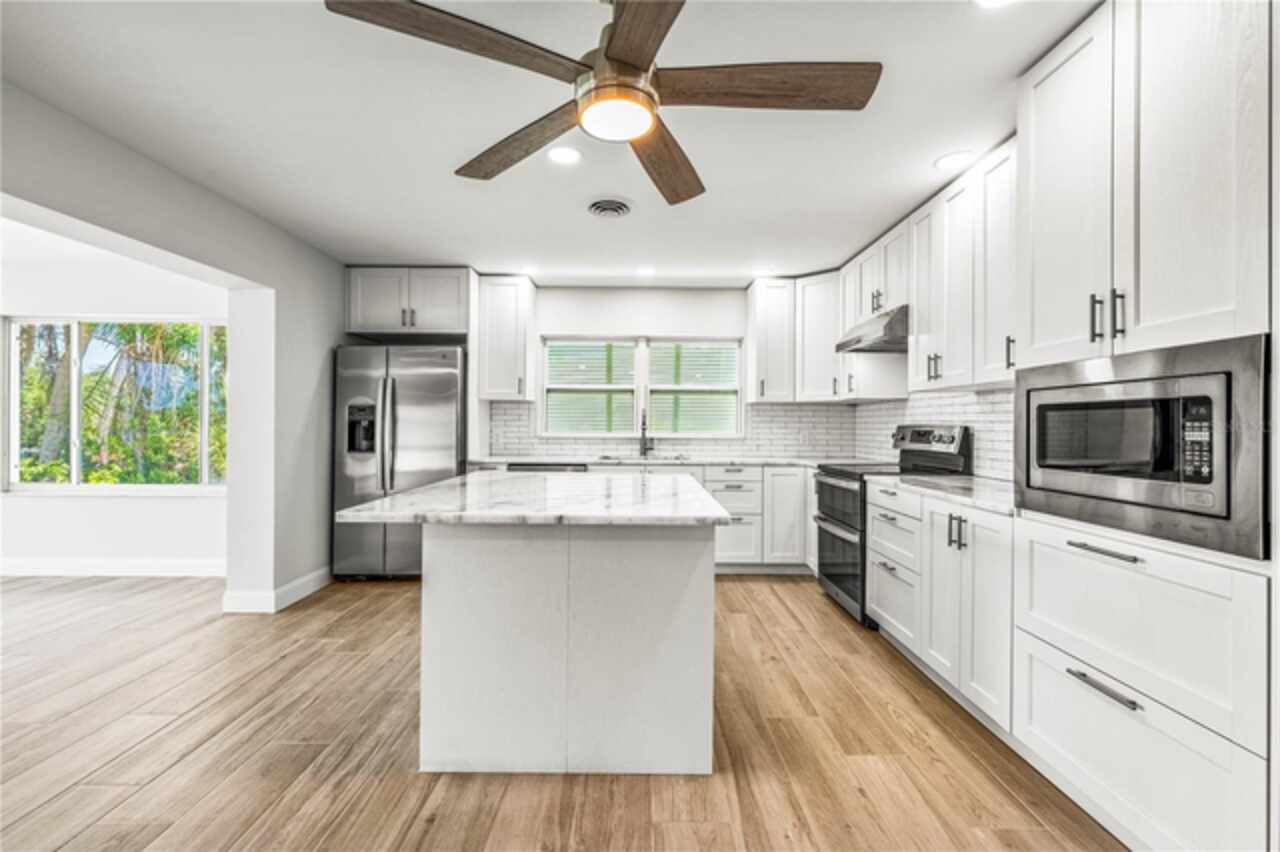 SIGNIFICANT PRICE REDUCTION!!! Highly Sought-After BOAT FRIENDLY, WATERFRONT Home, with PRIVATE BEACH ACCESS in South Venice. - Very recent remodel and renovation completed with quality craftsmanship, this stunning home features remarkable fit and finishes throughout. Located on a quiet waterfront street, 1680 Lemon Bay Dr. sits right at the mouth of the Intracoastal Waterway with unobstructed, direct access to the Gulf of America from your own backyard.The 100’ mangrove walk and dock has been completely rebuilt and offers optimal water depth for docking a boat. From your backyard dock you can easily paddle board or kayak within a couple minutes to your very own private beach oasis, available exclusively to you and your immediate neighbors. Thoughtfully designed with an open-concept floor plan, the kitchen and dining area flow seamlessly into the main living space, where panoramic bay windows frame breathtaking waterfront views and mature palm trees. The brand-new kitchen is a showstopper—featuring all-new stainless steel appliances, a large island and genuine marble countertops throughout, and bright, modern cabinetry. Retreat to the primary suite, complete with a beautifully remodeled ensuite bathroom and walk-in closet. The bathroom boasts a sleek double vanity with shaker cabinetry, while the walk-in shower steals the spotlight with floor-to-ceiling true marble tile and a bold blue glass accent, adding a modern touch. From the primary suite, enjoy direct access to the covered, screened lanai—perfect for relaxing and taking in the tranquil views. The private backyard is a peaceful escape, ideal for morning or evening paddleboard/kayak excursions or simply unwinding in a hammock strung between the palm trees. After the fun has been had, you can refresh in the outdoor shower. The possibilities are endless when it comes to enjoying Florida’s natural outdoor beauty from this home. ADDITIONAL UPDATES INCLUDE : This home has been extensively remodeled, also including interior and exterior paint, new tile flooring throughout, authentic marble finishes throughout. recessed lighting, rebuilt dock, 2025 HVAC, 2025 updated plumbing and electrical, 2025 well pump and filtration system. FEATURED LOCATION: 1680 Lemon Bay is situated as one of the closest homes to the South Venice Beach Ferry, offering exclusive access to a private beach for South Venice residents. Downtown Venice offers a quaint, historic atmosphere with a true small-town feel. it’s the perfect place to enjoy boutique shopping, local dining, and coastal culture with live performances at the Venice Theatre. You're also just minutes from Venice Municipal Airport, local public beaches, and main road; US-41 (Tamiami Trail), with a wide variety of shops and restaurants nearby. Schedule your private showing today to discover everything this remarkable home has to offer!