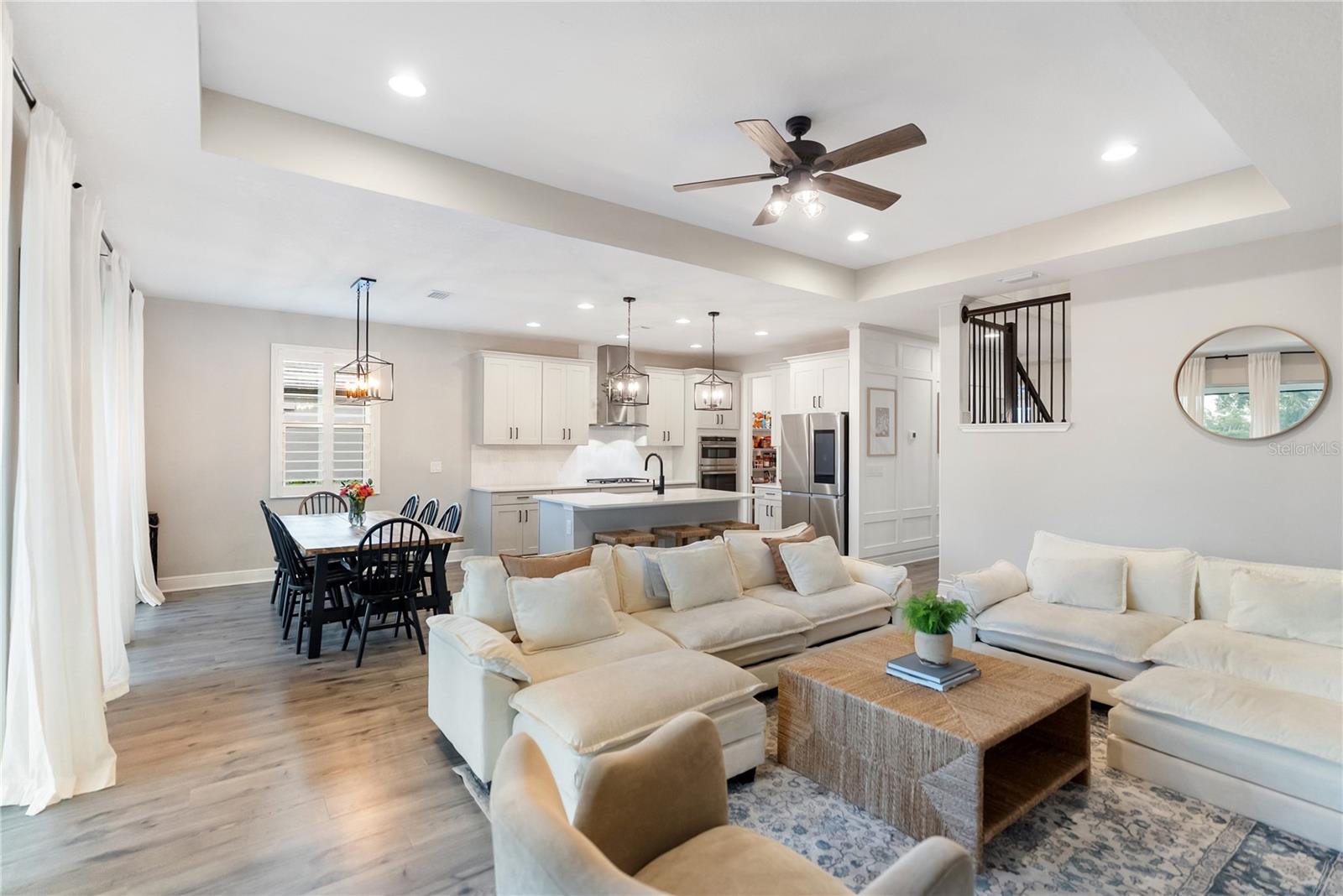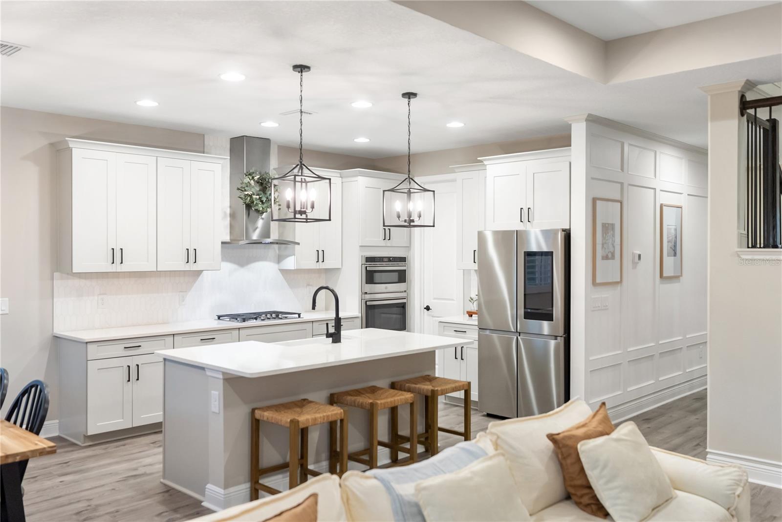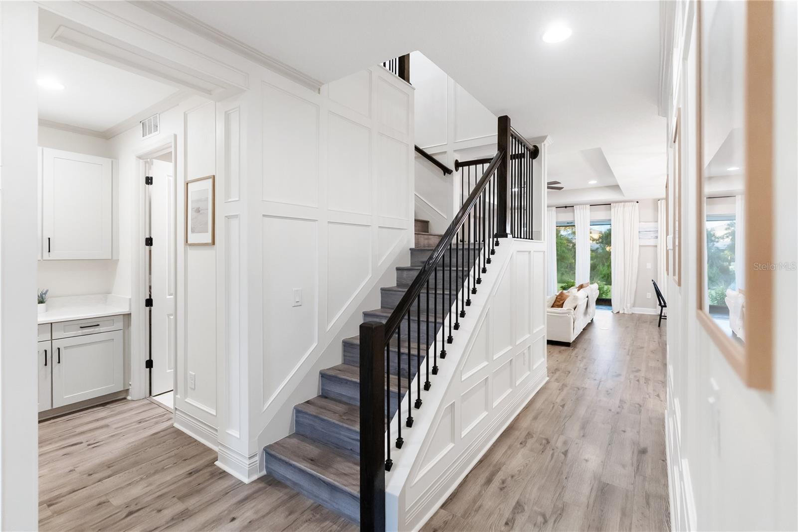 Under contract-accepting backup offers. Luxury meets Elegance. Prepare to be captivated by this custom-designed, energy-efficient masterpiece located in the highly desirable Sweetwater community of Lakewood Ranch! This magnificent 4-bedroom, 3-bathroom home isn't just a place to live; it's a statement of style and comfort, perfectly positioned on a premium, oversized lot with NO REAR NEIGHBOR—guaranteeing exceptional peace and privacy. Step inside and be instantly charmed by the architectural details. The showstopping custom black iron staircase is a true work of art, complemented by exquisite upgraded trim and millwork that flows throughout the home. The heart of this residence is a chef’s dream kitchen, featuring dazzling quartz countertops and rich 42-inch shaker cabinetry, providing a perfect backdrop for entertaining. A downstairs guest bedroom and full bathroom offer ideal multi-generational living flexibility. The main living area is further enhanced by chic accent walls, adding a pop of designer style! The flexible layout is ideal for modern living, including a dedicated office/den with elegant French doors, offering a quiet space for focus. Retreat to the luxurious primary suite, a sanctuary redefined by custom built-in cabinetry that ingeniously transforms part of the space into a versatile living area or home office nook, complete with a charming built-in bookcase. Upstairs, you will find 2 generous bedrooms surrounding a massive bonus/entertainment area and a dedicated office nook, providing endless possibilities for play, study, or media. Every window in the home is framed by gorgeous Plantation shutters, adding timeless sophistication and light control. Get ready to create the ultimate Florida lifestyle! The backyard is prepped for paradise with an 80-amp in-ground pool & spa pre-wire and a dedicated control switch. Plus, you have the convenience of a gas drop for your pool/spa equipment and a separate gas drop on the lanai—perfect for a deluxe outdoor kitchen! Enjoy incredible year-round comfort and dramatically lower utility bills thanks to spray foam insulation throughout and a premium, recently installed (9/2025) upgraded air handler and external AC unit. The colossal oversized garage features a 4-foot extension, providing endless possibilities for a home gym, workshop, or abundant storage. Location, location, location! You'll be zoned for the brand-new Lakewood Ranch K–8 school and have access to the first-class amenities of Sweetwater, including a resort-style heated pool, playground, pump track, multi-purpose sport court, pickleball courts, a state-of-the-art 24-hour fitness room, and a fantastic social space. This is more than a home; it's an elevated lifestyle waiting for you!