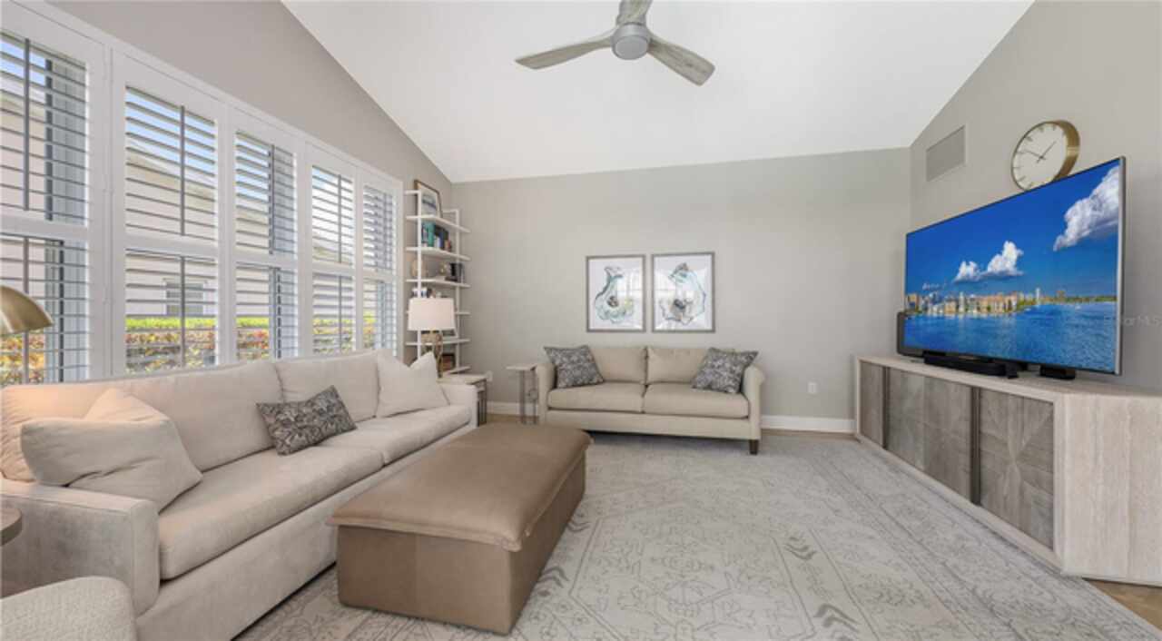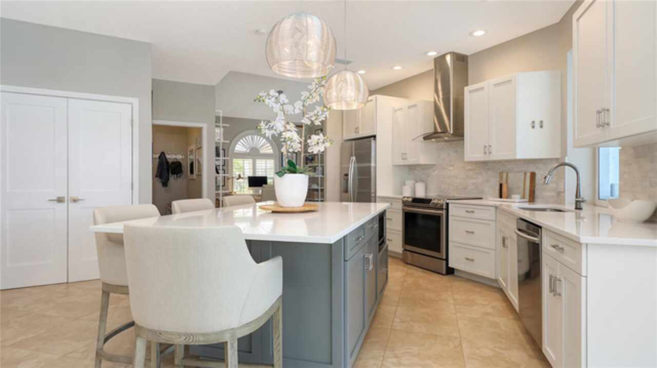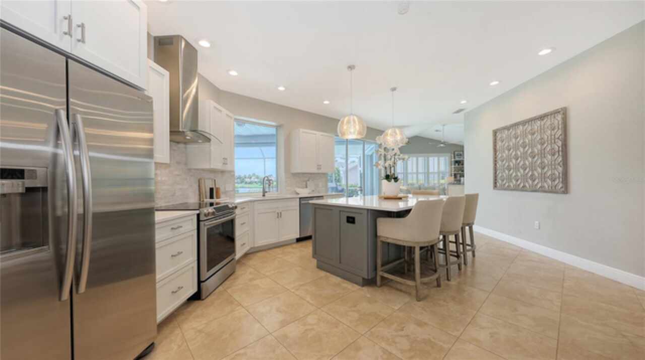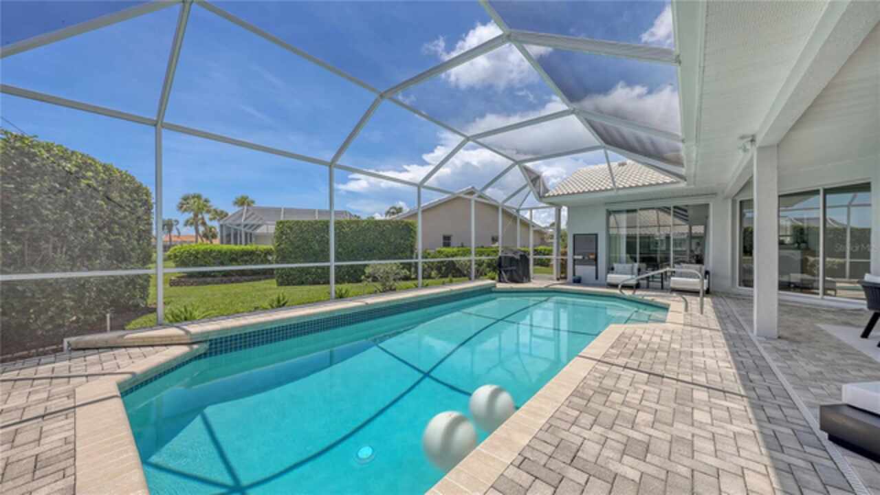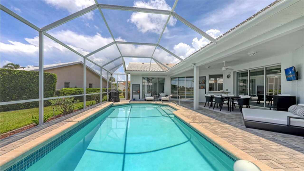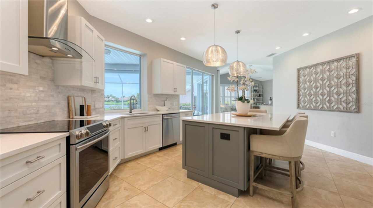 Under contract-accepting backup offers. Welcome to 1689 Valley Drive—a stylish and fully updated 3-bedroom, 2-bath home in one of Venice’s favorite gated communities. NO CDD FEE! Set on a large peaceful, lakefront corner lot, this home offers water views, a private pool, and a layout that’s both functional and beautiful. A hurricane screen on the lanai along with window shutters offers storm readiness and peace of mind. Inside, you’ll find a bright, open floor plan with high ceilings, pocket doors, neutral colors, and loads of natural light. The kitchen features white shaker cabinets, quartz countertops, stainless appliances, a large island, and gorgeous pendant lighting—perfect for casual meals or entertaining guests. The A/C was replaced in 2023. The custom-designed office space is a standout with tons of natural light, and a quiet setting that makes working from home a pleasure. Open the pocket sliders and step outside to your own private retreat featuring a paver patio, saltwater screened-in pool with solar panels and newer heat pump, a covered lanai space, and amazing lake views—great for relaxing, dining al fresco, or enjoying the Florida sunshine. Privacy hedges and landscape lighting add to the home's outdoor ambiance. The attached two-car garage has been upgraded with epoxy flooring and a built-in storage system. Everything in this home has been tastefully updated, so it’s completely move-in ready. Community heated pool and spa, fitness room, clubhouse and tennis courts. Optional golf memberships available! And with easy access to beaches, golf, restaurants, and shopping, the location couldn’t be better. If you’re looking for a meticulously maintained lakefront pool home in a secure, friendly neighborhood—this is it!