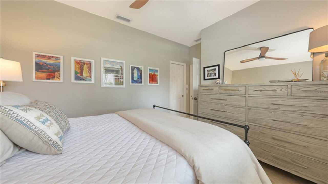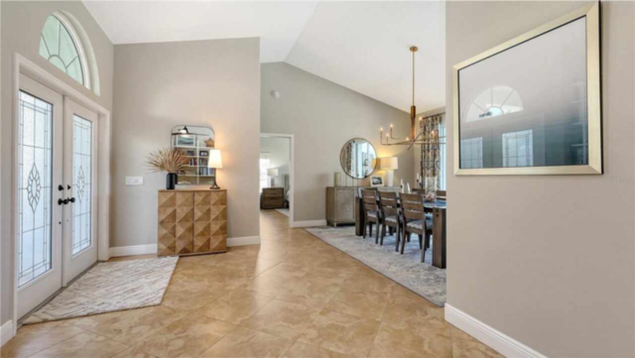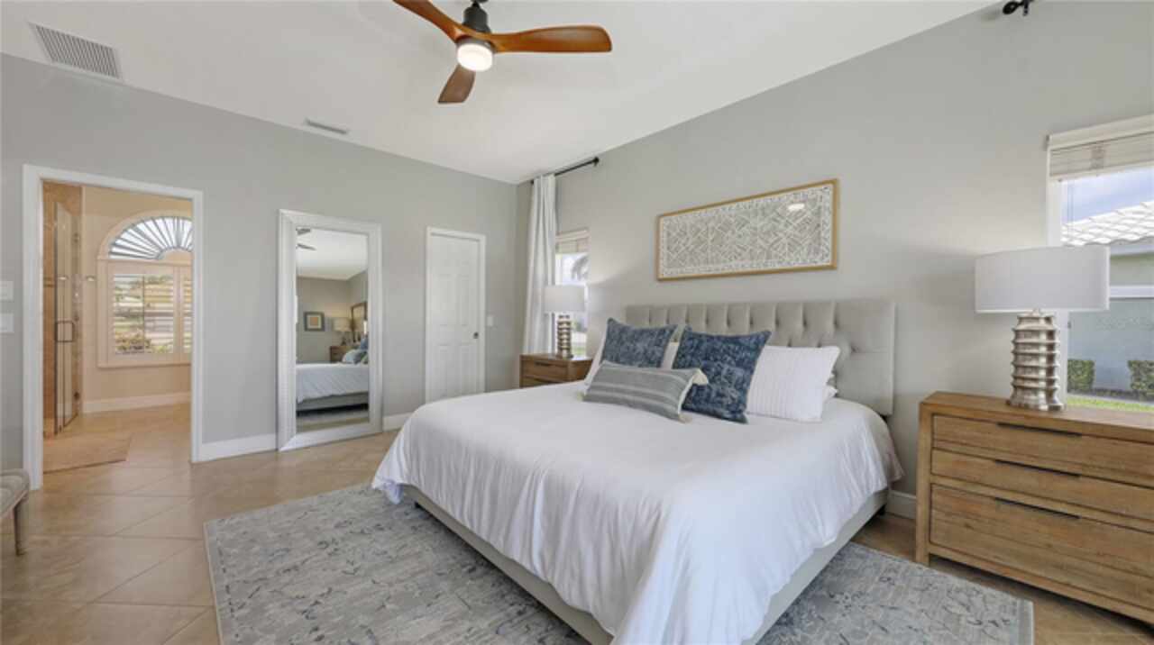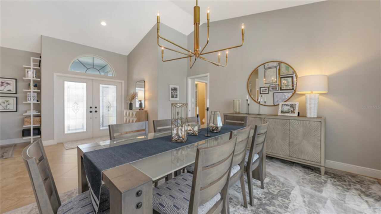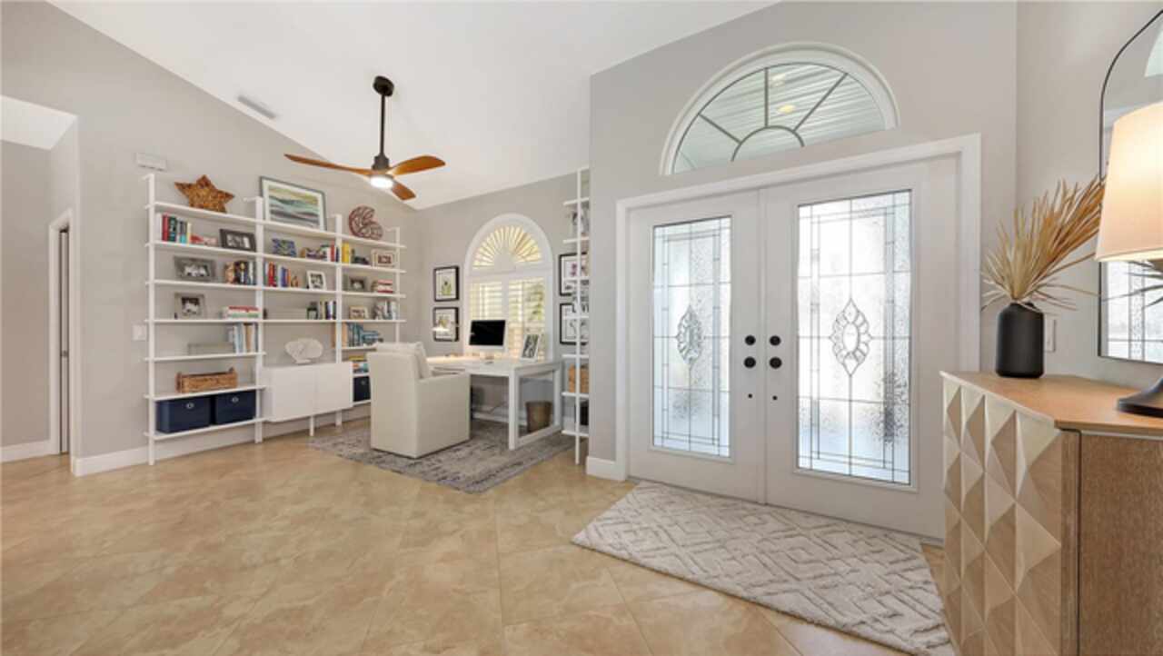Under contract-accepting backup offers. Welcome to 1689 Valley Drive—a stylish and fully updated 3-bedroom, 2-bath home in one of Venice’s favorite gated communities. NO CDD FEE! Set on a large peaceful, lakefront corner lot, this home offers water views, a private pool, and a layout that’s both functional and beautiful. A hurricane screen on the lanai along with window shutters offers storm readiness and peace of mind. Inside, you’ll find a bright, open floor plan with high ceilings, pocket doors, neutral colors, and loads of natural light. The kitchen features white shaker cabinets, quartz countertops, stainless appliances, a large island, and gorgeous pendant lighting—perfect for casual meals or entertaining guests. The A/C was replaced in 2023. The custom-designed office space is a standout with tons of natural light, and a quiet setting that makes working from home a pleasure. Open the pocket sliders and step outside to your own private retreat featuring a paver patio, saltwater screened-in pool with solar panels and newer heat pump, a covered lanai space, and amazing lake views—great for relaxing, dining al fresco, or enjoying the Florida sunshine. Privacy hedges and landscape lighting add to the home's outdoor ambiance. The attached two-car garage has been upgraded with epoxy flooring and a built-in storage system. Everything in this home has been tastefully updated, so it’s completely move-in ready. Community heated pool and spa, fitness room, clubhouse and tennis courts. Optional golf memberships available! And with easy access to beaches, golf, restaurants, and shopping, the location couldn’t be better. If you’re looking for a meticulously maintained lakefront pool home in a secure, friendly neighborhood—this is it!
