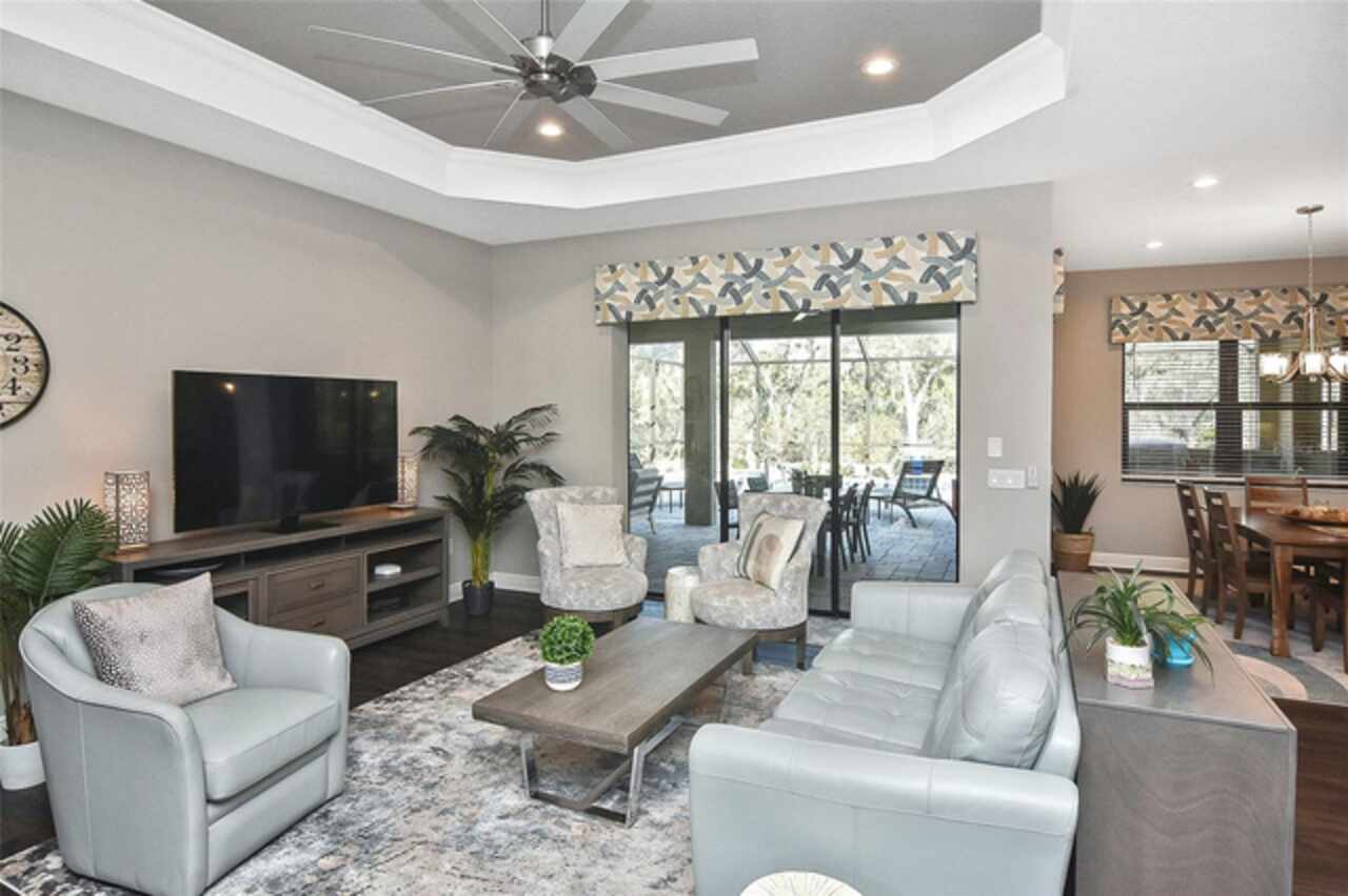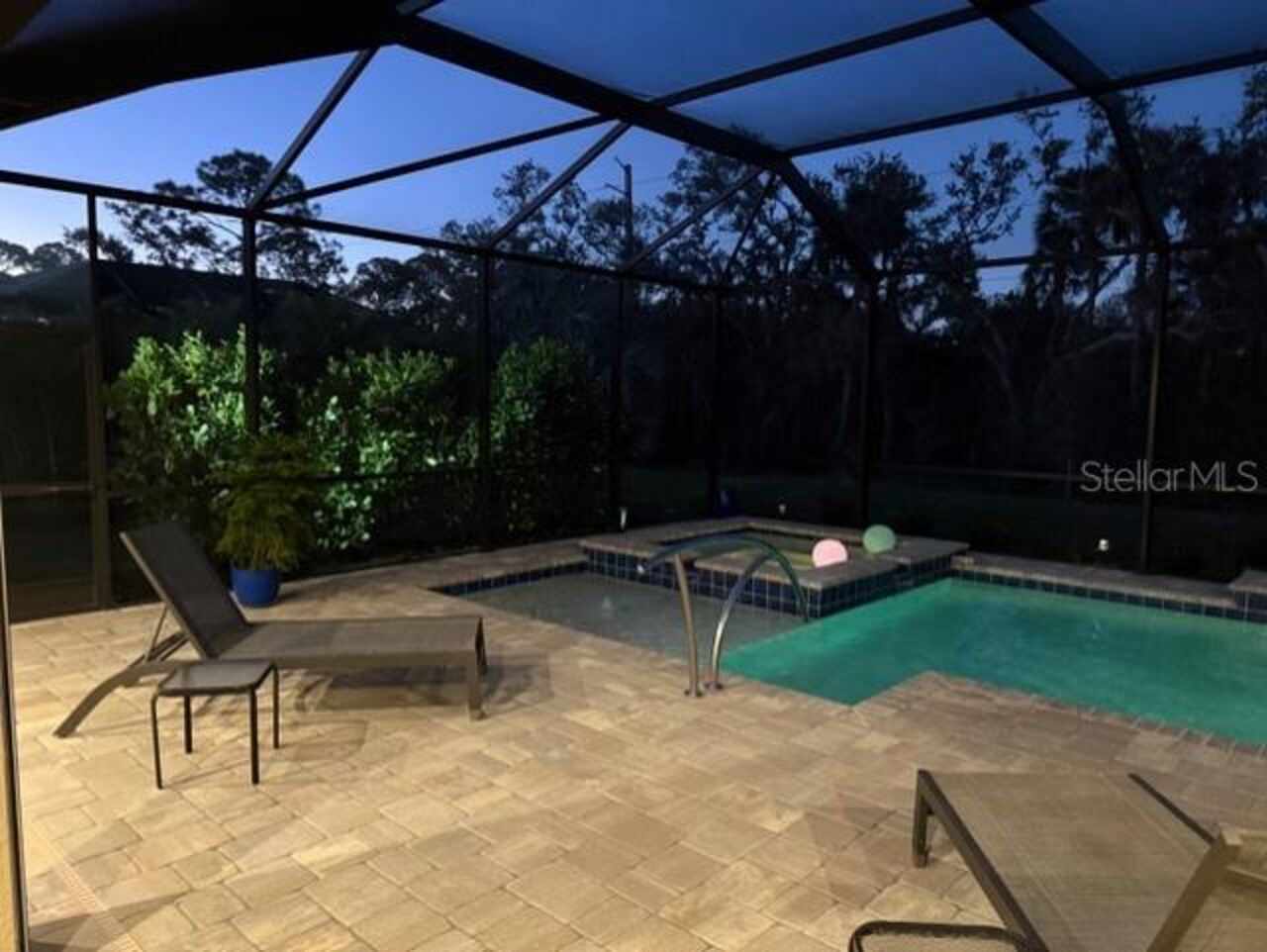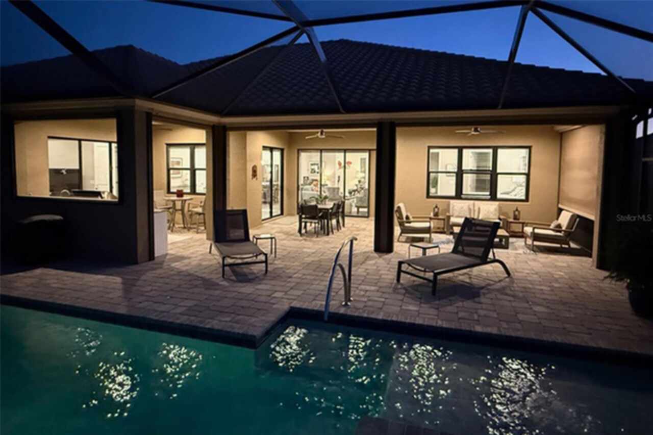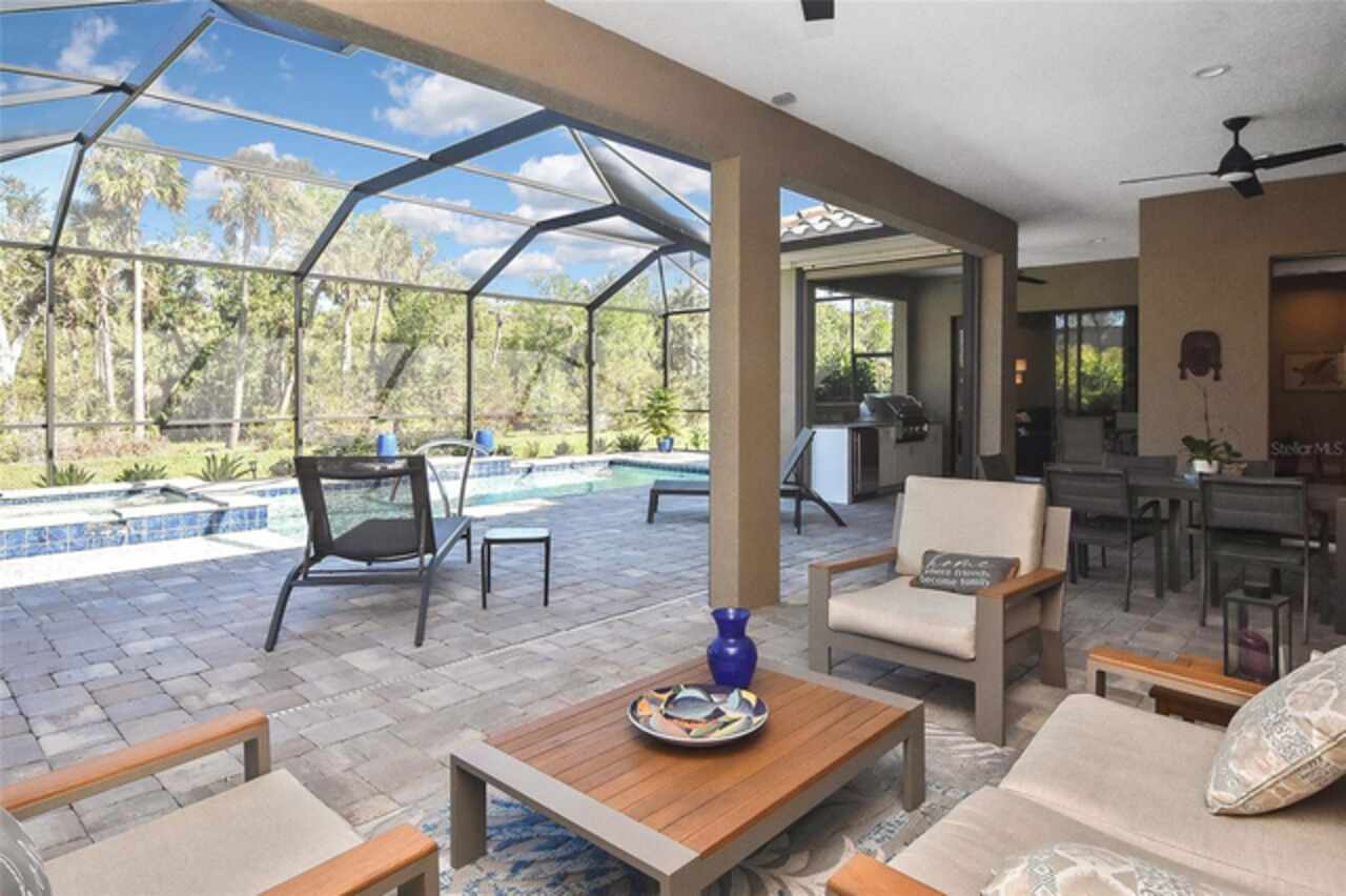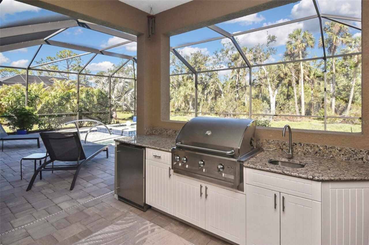 Under contract-accepting backup offers. Stunning 3 bedroom, 3 bath, 3-car garage home backing to nature. This beautifully designed Captiva model features an open, split floor plan filled with natural light and thoughtful details throughout. The gourmet kitchen boasts stainless steel appliances, a walk-in pantry, quartz counters and upper and lower cabinet lighting - perfect for both everyday living and entertaining. An inviting office/den showcases custom built-in desk and bookcases, while the spacious clubroom opens directly to the outdoor living area. Step outside to your private retreat with a fully equipped outdoor kitchen, heated saltwater pool, and spa - all overlooking a serene, wooded yard. This home also features storm smart shades along the back, elegant outdoor lighting, extended 3 car garage with pebble tec floors and whole house surge protector. The list is endless.
