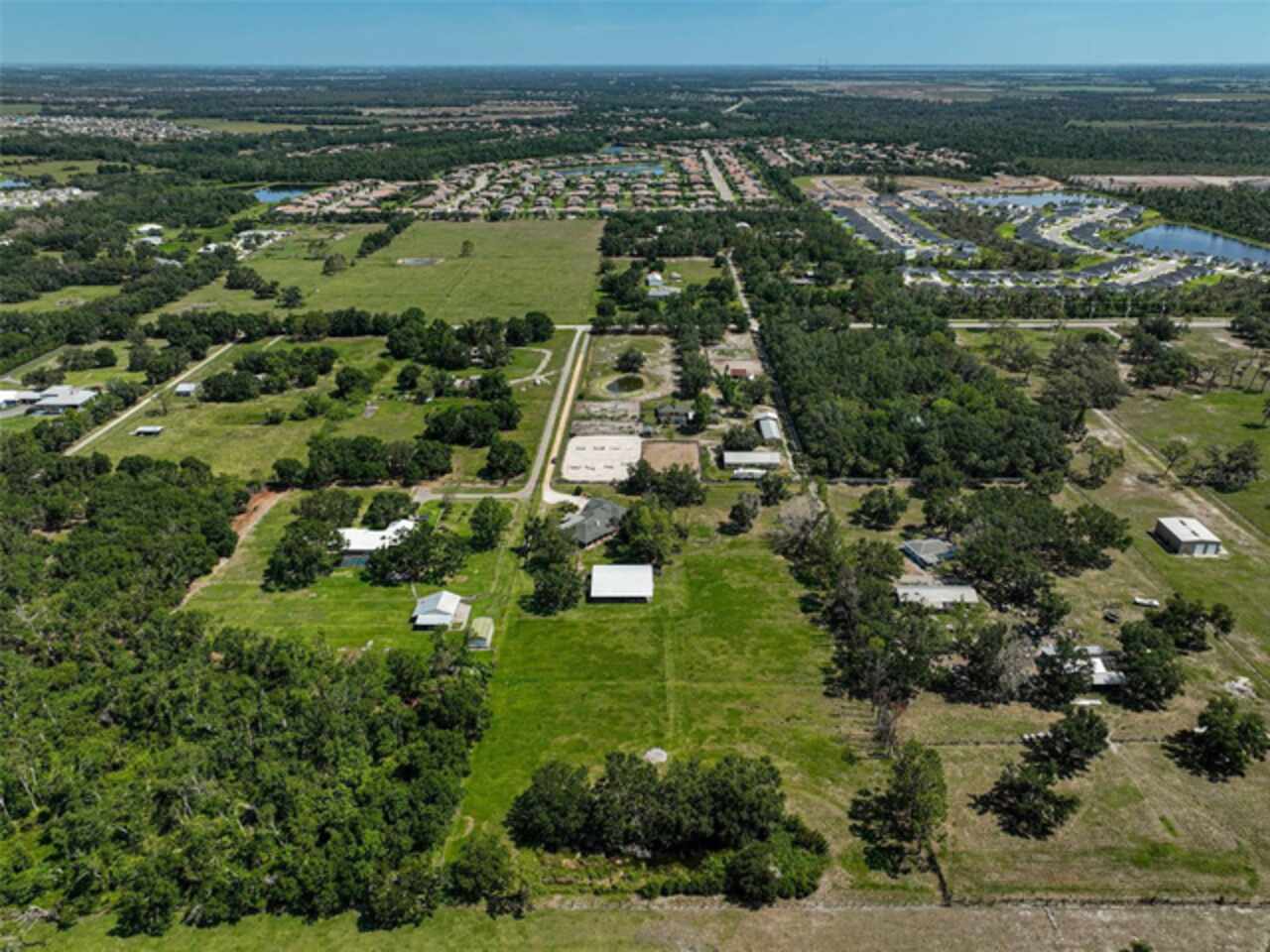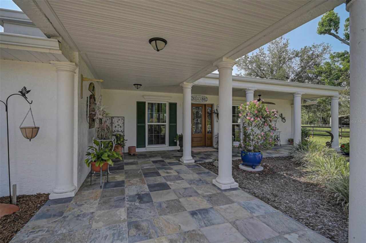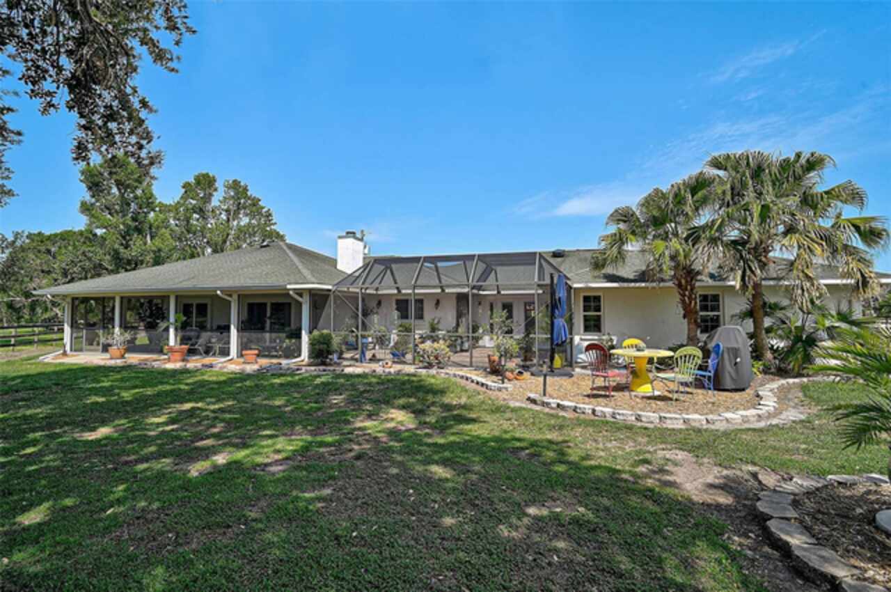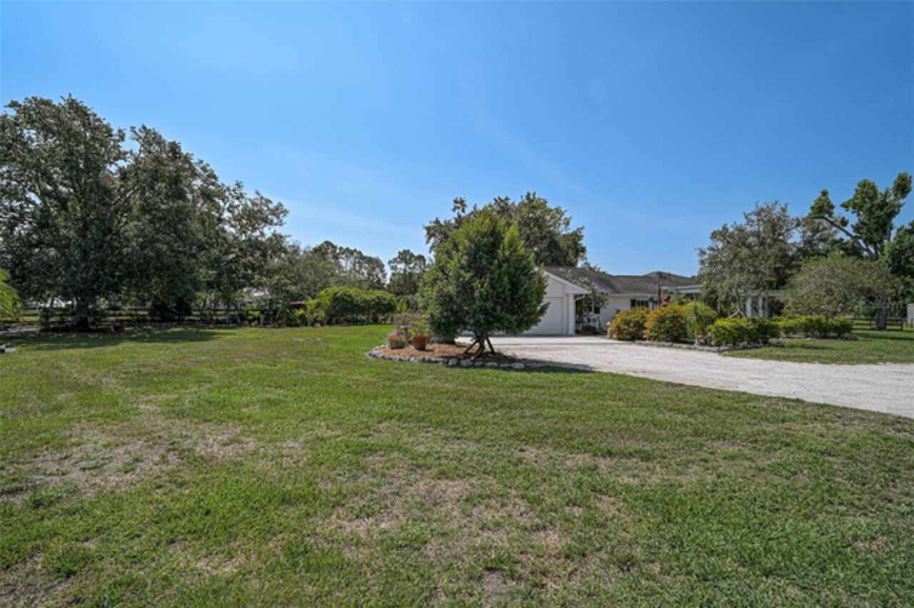 A Slice of Old Florida Charm, Luxurious 5-Acre Equestrian Retreat with Barn & Scenic Views! Escape to a lifestyle of serenity, space & timeless southern charm in this exceptional estate. Perfectly positioned just minutes from Lakewood Ranch yet tucked away on a quiet country road, this custom-built home offers the ultimate blend of privacy, elegance & freedom, w/ no HOA & over five acres of fully fenced land to call your own. From the moment you arrive, the home’s charm is undeniable, welcoming you with an expansive covered front porch adorned w/ stately columns & elegant slate tile underfoot. This inviting space sets the tone for the entire property, offering a peaceful place to sip your morning coffee or enjoy quiet evenings surrounded by lush landscaping & flowering accents. Designed for both comfort + function, the residence spans 2, 543 sqft & features 3 bedrooms, 3 full bathrooms & a thoughtful split floor plan that offers flexibility for families, guests, or multigenerational living. Step inside to find light-filled living spaces with vaulted ceilings, flowing tile floors in the kitchen, dining & utility areas & wood-look tile running through the living room & guest wing. The living room is warm & inviting with rich wood-paneled ceilings, a cozy brick wood burning fireplace, elegant upgraded fixtures & beautiful crown molding, details that elevate the sense of classic Southern refinement. At the heart of the home, the chef’s kitchen is a dream with solid wood cabinetry, stainless steel appliances, and additional counter space are perfect for prepping meals or gathering with friends. A charming dinette just off the kitchen offers French doors that open to the oversized screened lanai, while the formal dining room, with its own crown molding, sets the tone for more elegant occasions. The primary suite is a true retreat, w/ French doors to the lanai, walk-in closet & a spa-like en-suite bathroom featuring a jetted tub, dual vanities & a separate shower. A split guest suite functions beautifully as a second primary, w/ its own sliding glass door to the patio, a walk-in closet & a recently updated en-suite bathroom w/ a new vanity, fixtures, chair rail molding, shiplap accents & a beautifully tiled shower. The third bedroom is ideal as a flex space, office, or den & sits adjacent to a fully updated bathroom w/ shiplap & new vanity. All windows + doors have been upgraded to hurricane-rated impact glass including both the living room & guest suite sliders. These open to one of the home’s standout features: a stunning screened paver patio. Partially covered & surrounded by lush views, this relaxing outdoor haven is perfect for enjoying morning coffee, entertaining guests, or simply taking in the beauty of your land. Outside, the property comes alive with opportunity. A 59’ x 56’, 4-stall (12x12 each) center-aisle barn w/ 12x24 tac room + workshop, electric & water is ideal for horses & the cross-fenced pastures, shaded by mature oak trees, create a picturesque & functional setting for a hobby farm or equestrian use. Raised garden beds, butterfly gardens, vibrant landscaping & whimsical sitting areas add to the charm & create peaceful spaces to unwind. W/ no deed restrictions & quick access to I-75, top-rated schools & all the amenities of Lakewood Ranch + East Bradenton, this home is a rare find. Beautifully realized, meticulously maintained & move-in ready. This isn’t just a home, it’s a lifestyle, ready to be enjoyed for years to come!