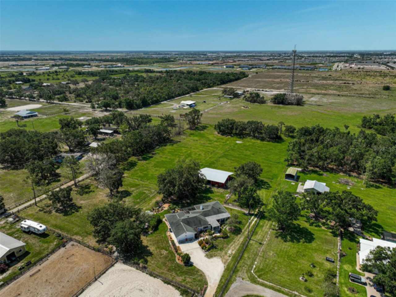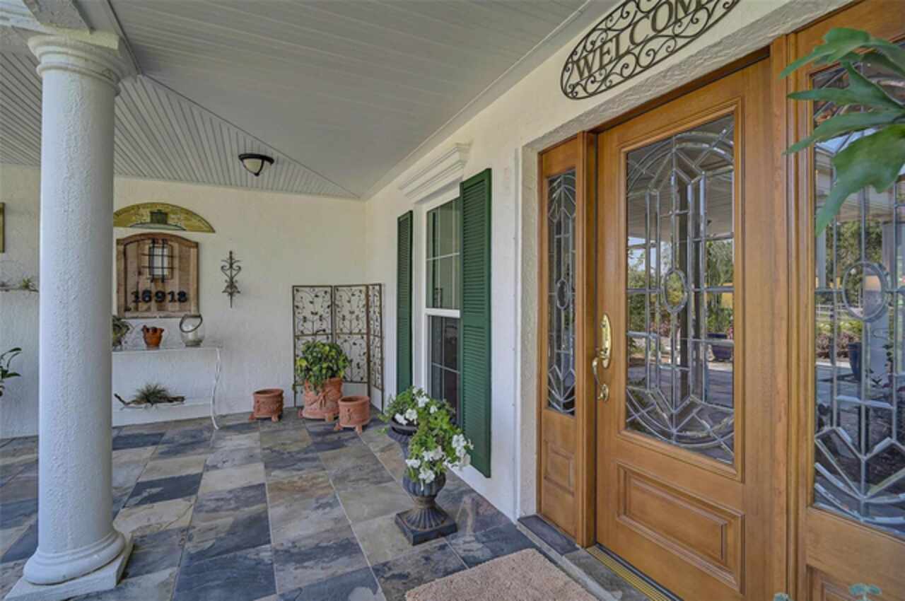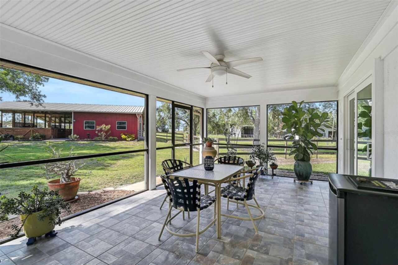 A Slice of Old Florida Charm, Luxurious 5-Acre Equestrian Retreat with Barn & Scenic Views! Escape to a lifestyle of serenity, space & timeless southern charm in this exceptional estate. Perfectly positioned just minutes from Lakewood Ranch yet tucked away on a quiet country road, this custom-built home offers the ultimate blend of privacy, elegance & freedom, w/ no HOA & over five acres of fully fenced land to call your own. From the moment you arrive, the home’s charm is undeniable, welcoming you with an expansive covered front porch adorned w/ stately columns & elegant slate tile underfoot. This inviting space sets the tone for the entire property, offering a peaceful place to sip your morning coffee or enjoy quiet evenings surrounded by lush landscaping & flowering accents. Designed for both comfort + function, the residence spans 2, 543 sqft & features 3 bedrooms, 3 full bathrooms & a thoughtful split floor plan that offers flexibility for families, guests, or multigenerational living. Step inside to find light-filled living spaces with vaulted ceilings, flowing tile floors in the kitchen, dining & utility areas & wood-look tile running through the living room & guest wing. The living room is warm & inviting with rich wood-paneled ceilings, a cozy brick wood burning fireplace, elegant upgraded fixtures & beautiful crown molding, details that elevate the sense of classic Southern refinement. At the heart of the home, the chef’s kitchen is a dream with solid wood cabinetry, stainless steel appliances, and additional counter space are perfect for prepping meals or gathering with friends. A charming dinette just off the kitchen offers French doors that open to the oversized screened lanai, while the formal dining room, with its own crown molding, sets the tone for more elegant occasions. The primary suite is a true retreat, w/ French doors to the lanai, walk-in closet & a spa-like en-suite bathroom featuring a jetted tub, dual vanities & a separate shower. A split guest suite functions beautifully as a second primary, w/ its own sliding glass door to the patio, a walk-in closet & a recently updated en-suite bathroom w/ a new vanity, fixtures, chair rail molding, shiplap accents & a beautifully tiled shower. The third bedroom is ideal as a flex space, office, or den & sits adjacent to a fully updated bathroom w/ shiplap & new vanity. All windows + doors have been upgraded to hurricane-rated impact glass including both the living room & guest suite sliders. These open to one of the home’s standout features: a stunning screened paver patio. Partially covered & surrounded by lush views, this relaxing outdoor haven is perfect for enjoying morning coffee, entertaining guests, or simply taking in the beauty of your land. Outside, the property comes alive with opportunity. A 59’ x 56’, 4-stall (12x12 each) center-aisle barn w/ 12x24 tac room + workshop, electric & water is ideal for horses & the cross-fenced pastures, shaded by mature oak trees, create a picturesque & functional setting for a hobby farm or equestrian use. Raised garden beds, butterfly gardens, vibrant landscaping & whimsical sitting areas add to the charm & create peaceful spaces to unwind. W/ no deed restrictions & quick access to I-75, top-rated schools & all the amenities of Lakewood Ranch + East Bradenton, this home is a rare find. Beautifully realized, meticulously maintained & move-in ready. This isn’t just a home, it’s a lifestyle, ready to be enjoyed for years to come!