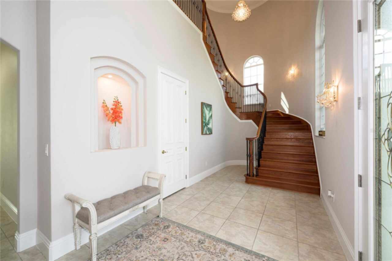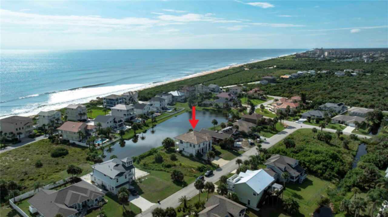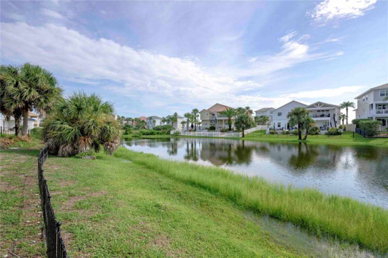 Coastal living at its finest! This 3 bedroom, 3.5 bath waterfront home has a first-floor view of the lake and sweeping second floor ocean views. The entry features a fabulous circular staircase inviting to all who enter. The first floor has an expansive living room and wet bar for entertaining, with dual French doors that open to the backyard and lake facing the ocean. Upstairs, you are greeted with a spacious open kitchen and living floor plan, featuring dual balconies and gas fireplace for entertaining with ocean views. There also lies the master suite which captures the ocean breeze and balcony overlooking the ocean allowing natural light and ocean breeze in. The house is a short walk away from the gated community pool to cool off and gather with friends.