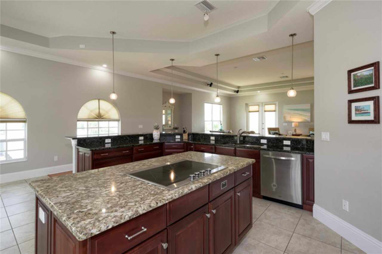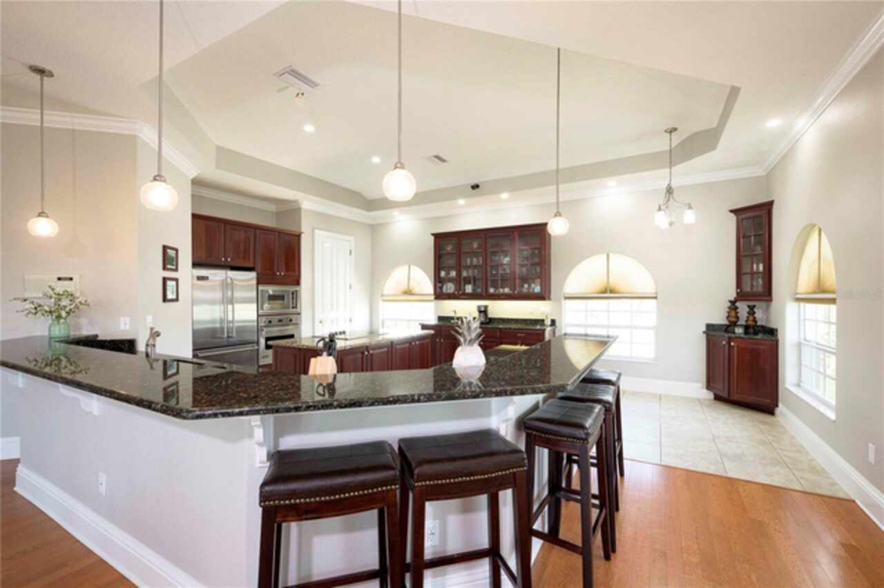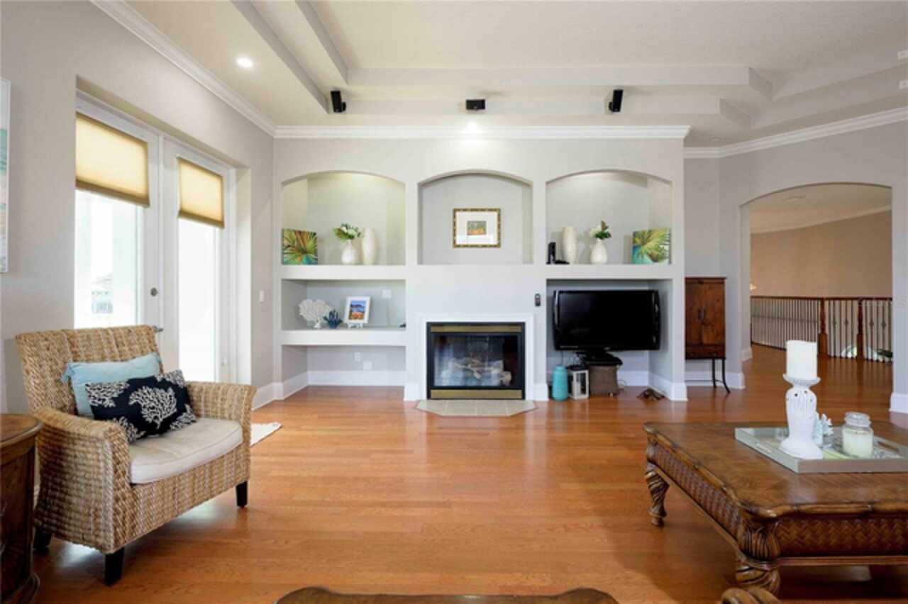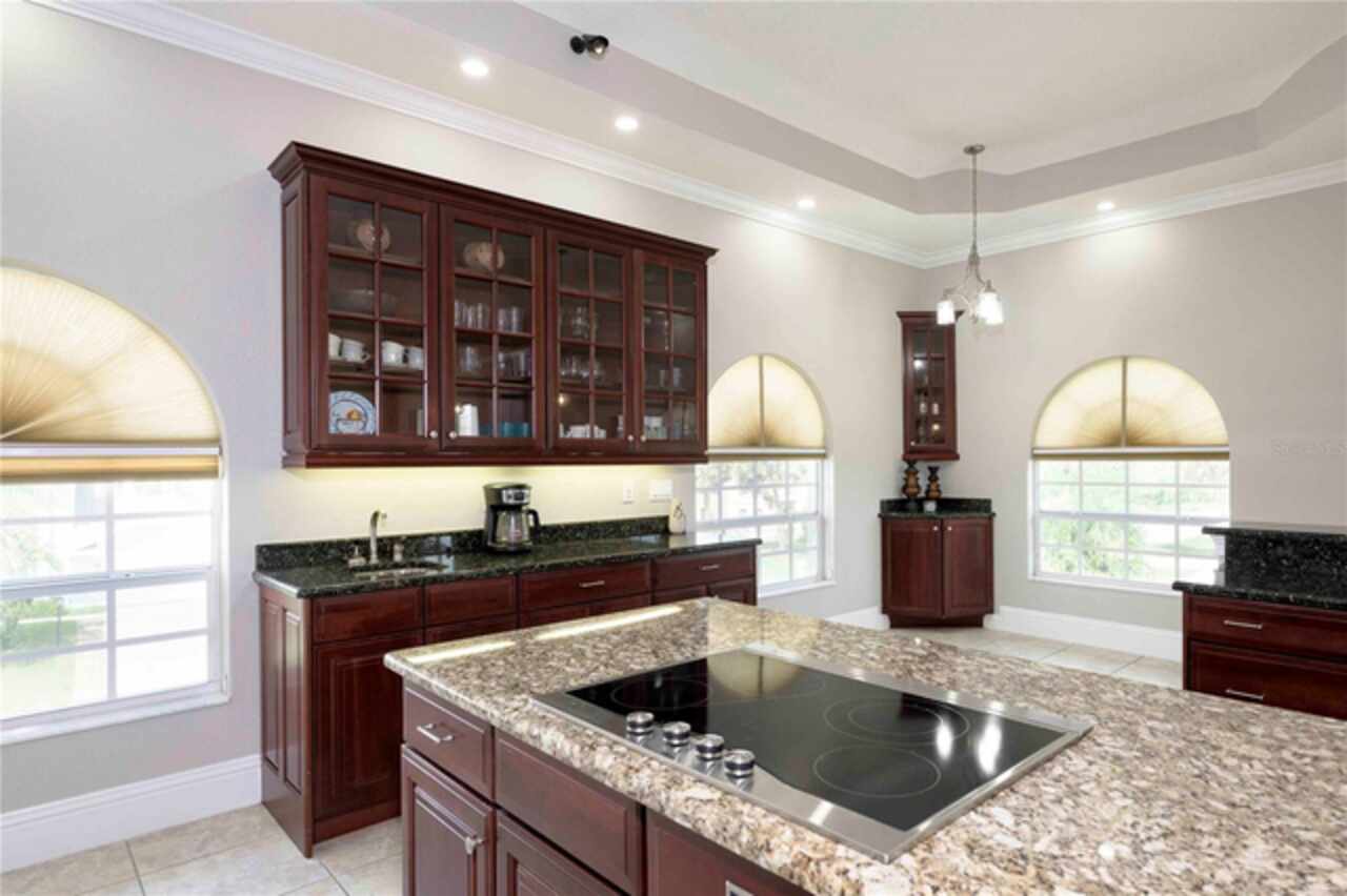 Built-in Features, Cathedral Ceiling(s), Ceiling Fans(s), Coffered Ceiling(s), Crown Molding, Eat-in Kitchen, High Ceilings, Kitchen/Family Room Combo, Open Floorplan, PrimaryBedroom Upstairs, Solid Wood Cabinets, Split Bedroom, Stone Counters, Tray Ceiling(s), Walk-In Closet(s), Window Treatments