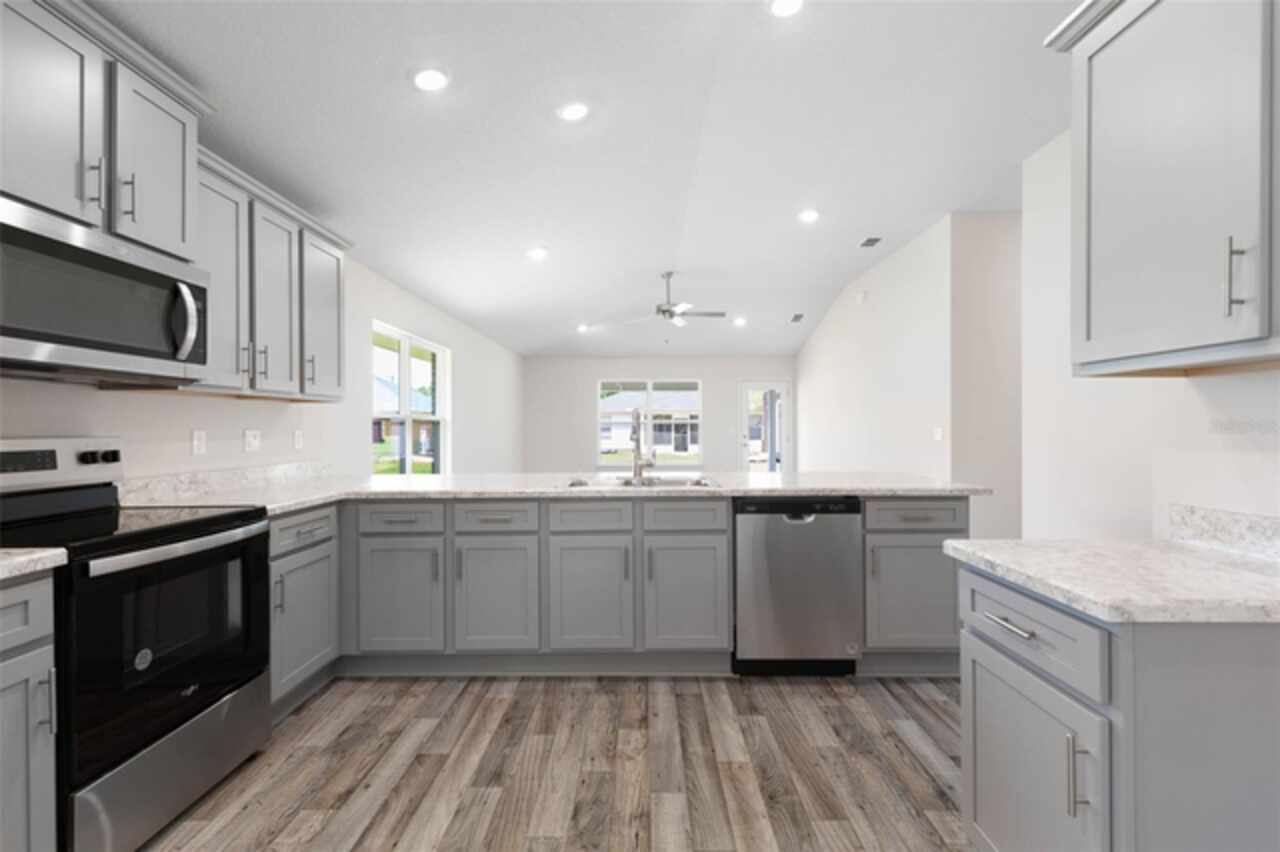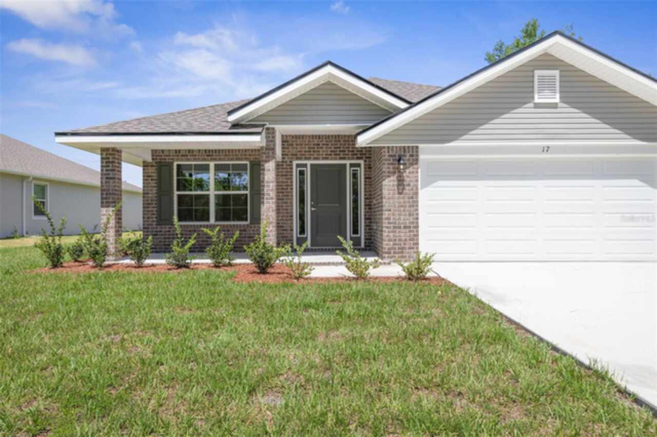 Price improvement! ONLY $1, 000 Deposit required. Save thousands in closing costs when using one of our lender partners. Pictures are of actual home. Pricing INCLUDES lot! This is a beautiful open floor plan with large living / dining room when walking in. Vaulted ceilings throughout with open kitchen overlooking large family room. Appliances included whirlpool range, dishwasher and microwave. Master bath is a 5' easy step in shower with clear glass door and double vanities. Windows are double-paned, tilt ins for easy cleaning while providing you money savings on your electric bill and a quieter home. 10x14 Rear COVERED Patio will be delightful in sun or rain. Located in the South end of Palm Coast at end of cul-de-sac road, Over all, Located near shopping, restaurants, and schools, yet minutes from the beach. Cash discount available.