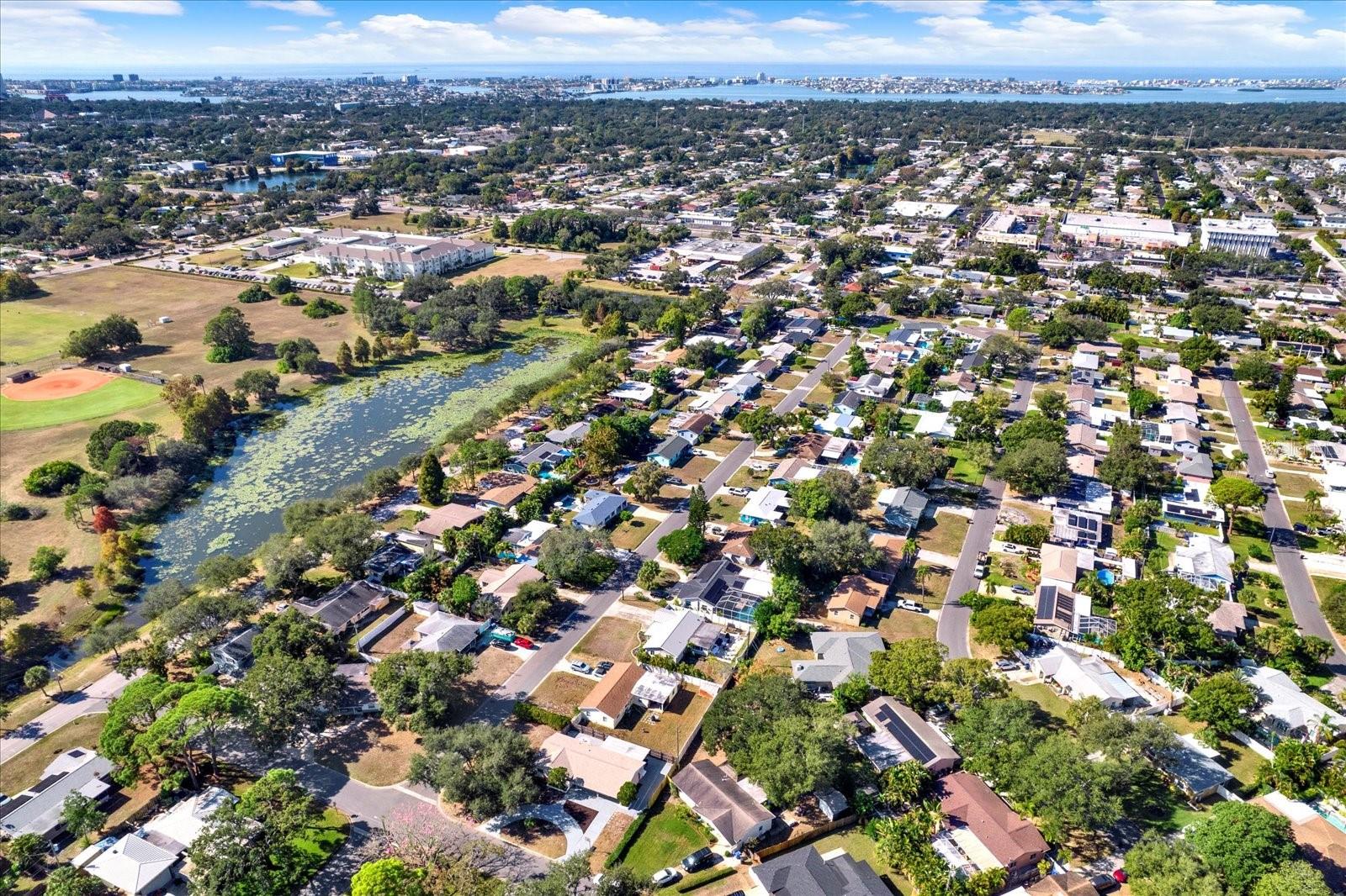 Welcome to Garden Manor, located in one of St. Petersburg's most sought-after neighborhoods. This charming 3-bedroom, 2-bathroom home features a bonus family/sunroom, a 1-car garage, circular drive way , corner lot, and a large patio area perfect for entertaining or relaxing on sunny days. Inside, you'll find a living room and a dining room adjacent to the kitchen, offering plenty of space for hosting guests both indoors and outdoors. Recent updates include a new roof in 2022, HVAC in 2023, heat pump in 2020, freshly painted interior and exterior, new fixtures, and beautiful mature landscaping with plants and trees. Garden Manor is ideally situated for enjoying walks by the nearby pond, visiting the baseball field, shopping at Tyrone Square Mall, dining, exploring parks, and is just a short drive to the stunning Gulf Beaches. Call today for your private tour!