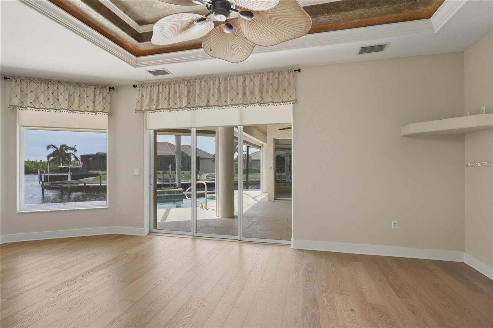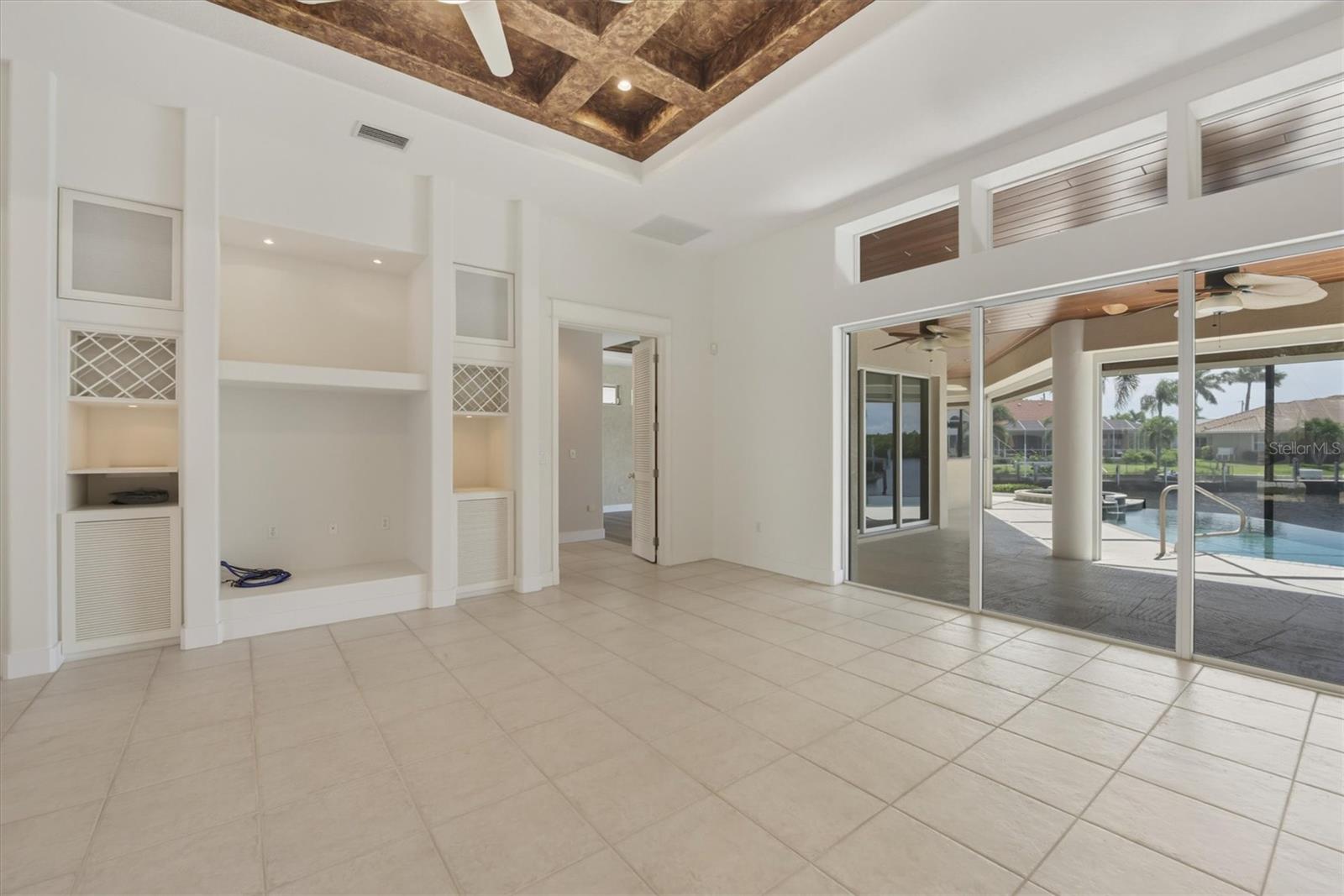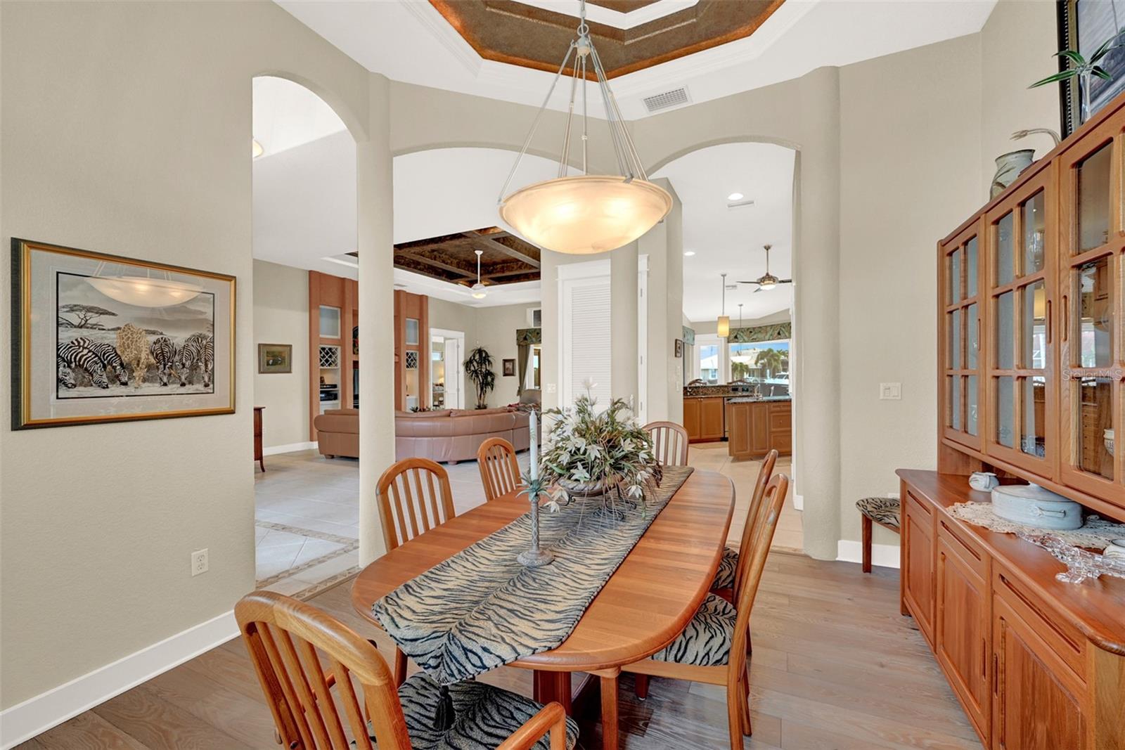 Accessibility Features, Built-in Features, Ceiling Fans(s), Central Vaccum, Coffered Ceiling(s), Crown Molding, Eat-in Kitchen, High Ceilings, In Wall Pest System, Open Floorplan, Primary Bedroom Main Floor, Solid Surface Counters, Solid Wood Cabinets, Split Bedroom, Stone Counters, Thermostat, Tray Ceiling(s), Walk-In Closet(s), Window Treatments