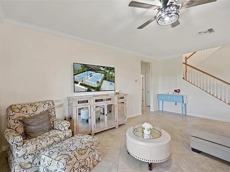 Crown Molding, Eat-in Kitchen, Kitchen/Family Room Combo, Solid Surface Counters, Solid Wood Cabinets, Stone Counters, Thermostat, Walk-In Closet(s)