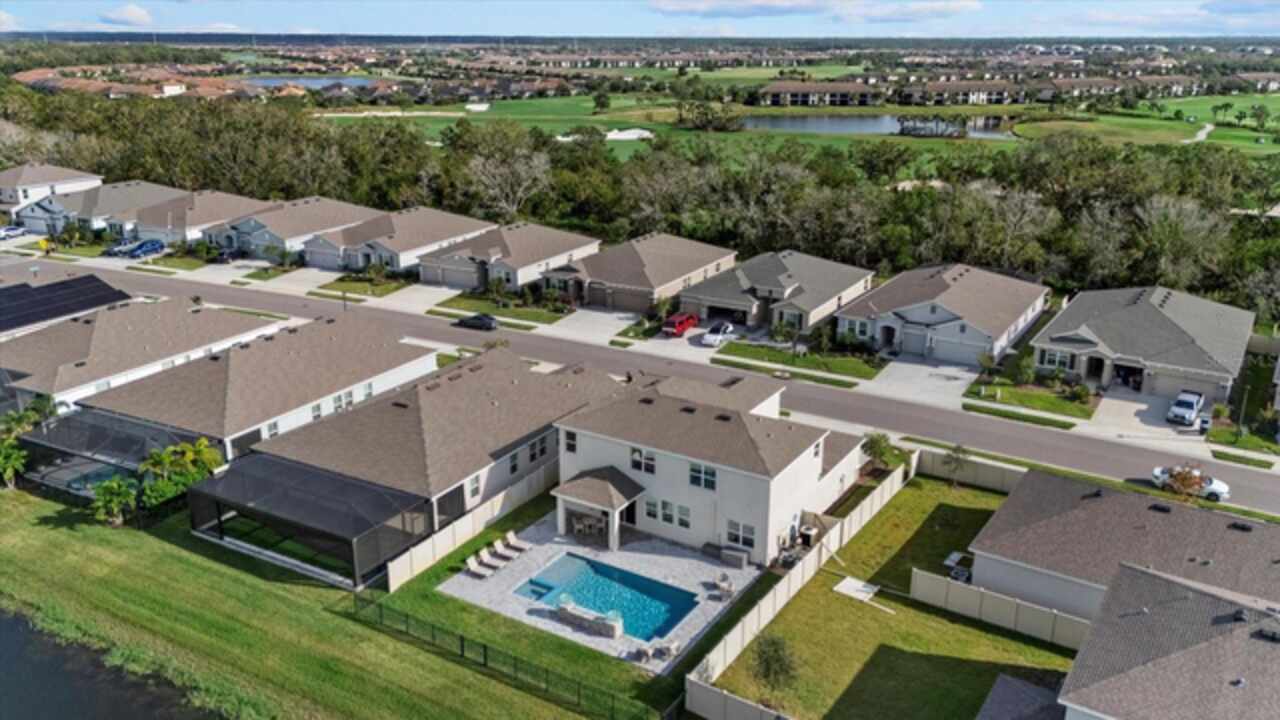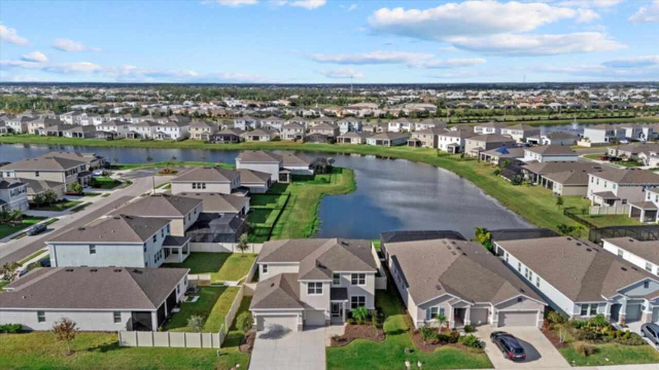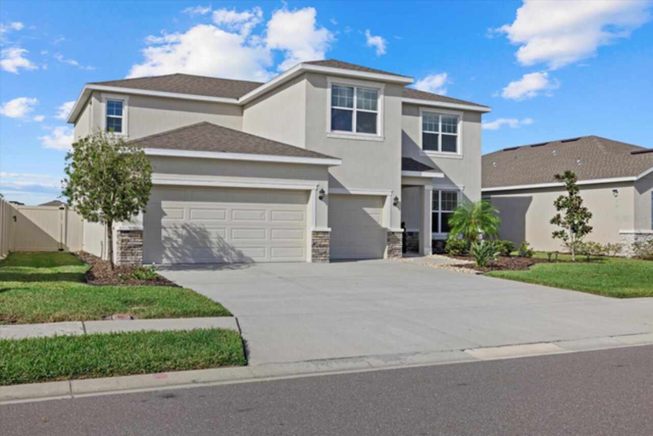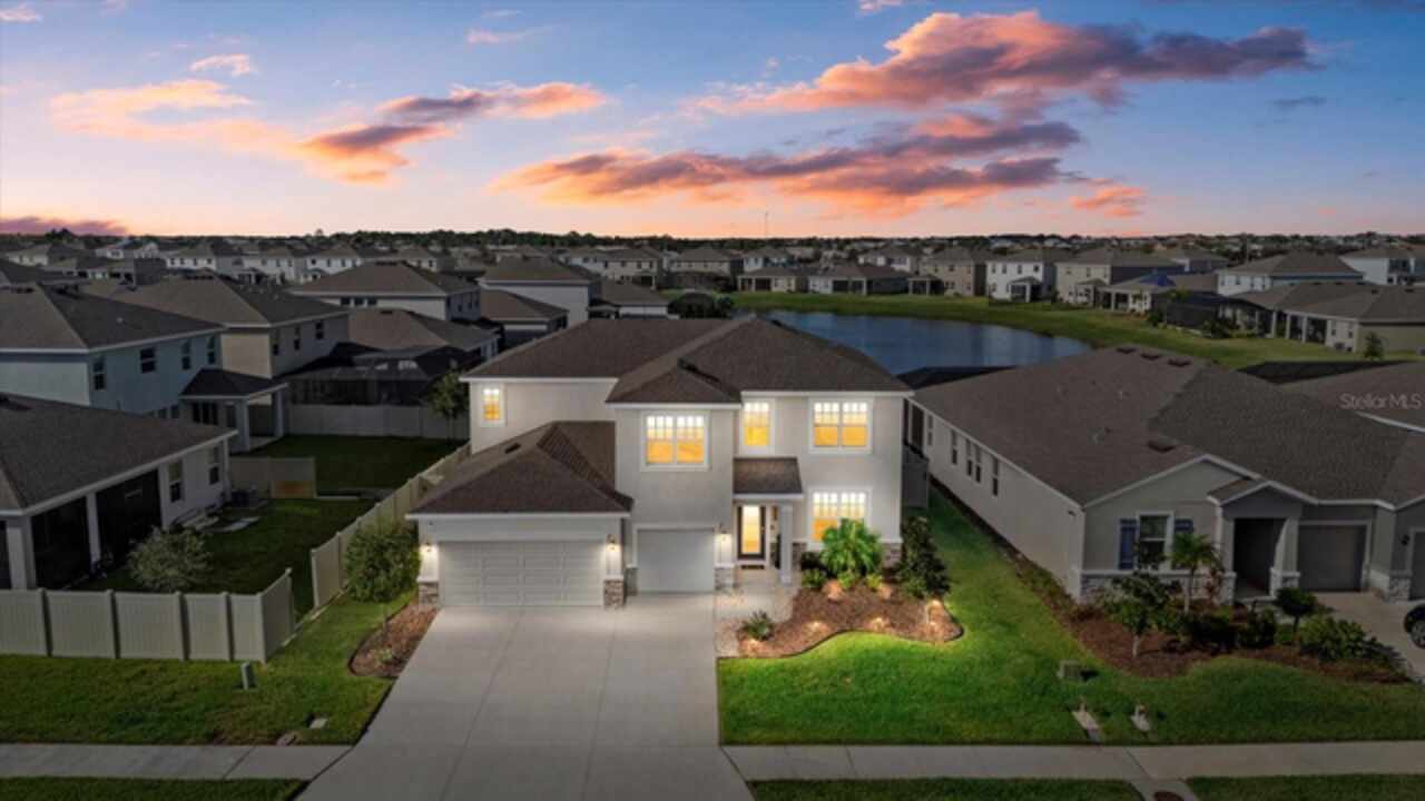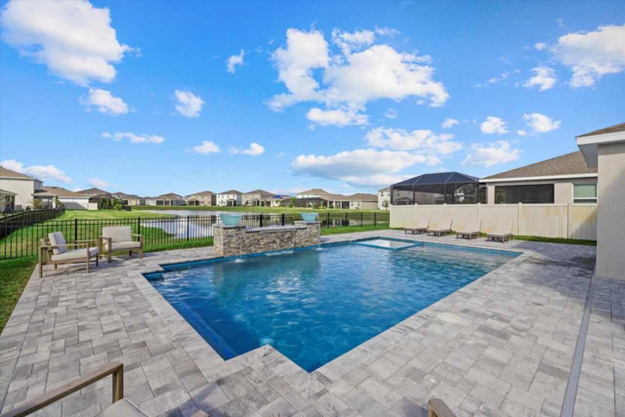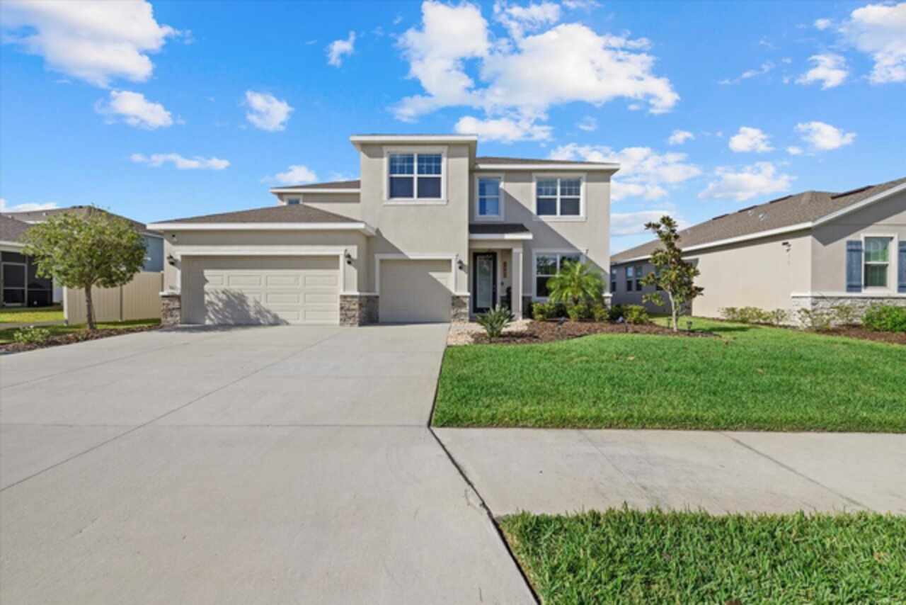 Discover the exquisite D.R. Horton's Jordyn Model home in the sought-after Solera community of Lakewood Ranch—the nation's best-selling multi-generational community known for its family-centric charm and modern living. Offering over 3, 000 square feet of living space, this meticulously maintained home is ideal for growing families and entertaining. The striking curb appeal and tasteful interior paint reflect the owners' pride of ownership. Upon entry, a showroom-quality epoxy floor in the expansive three-car garage sets the stage for the impressive details inside. The living room features a striking split face stone wall, while the owner's suite is enhanced by a custom board and batten accent wall. The open floor plan offers flexibility, with a bonus room near the foyer for work or leisure. A spacious guest bedroom on the first floor includes a full bathroom, providing privacy and comfort for visitors. The gourmet kitchen blends style and function with granite countertops, a large island, elegant cabinetry, modern light fixtures, and stainless steel appliances—all included. It flows seamlessly into the great room, dining area, and covered lanai, creating an ideal space for entertaining. Upstairs, plush carpeting leads to a versatile loft perfect for a game room or home theater. Each generously sized bedroom offers beautiful views. The luxurious owner's retreat features two walk-in closets, dual sinks, granite countertops, and a garden tub for ultimate relaxation. The highlight of this home is the stunning pool with spa—a private backyard oasis perfect for swimming, relaxing, and outdoor entertaining. The fenced backyard combines PVC and iron fencing, offering privacy while framing breathtaking pond views and picturesque sunrises and sunsets. Situated in a prime location, this home is minutes from upscale shopping, fine dining, scenic parks, top-rated golf courses, and Florida's renowned beaches. With easy access to Sarasota, St. Petersburg, and Tampa, the best of the Sunshine State is within reach. Solera residents enjoy resort-style amenities, including a luxurious pool, elegant clubhouse, top-tier schools, and a charming tot-lot. This community seamlessly blends luxury and comfort, creating an idyllic environment for families to thrive. Don't miss the opportunity to own this extraordinary home. Schedule your private showing today and experience the beauty and sophistication for yourself.