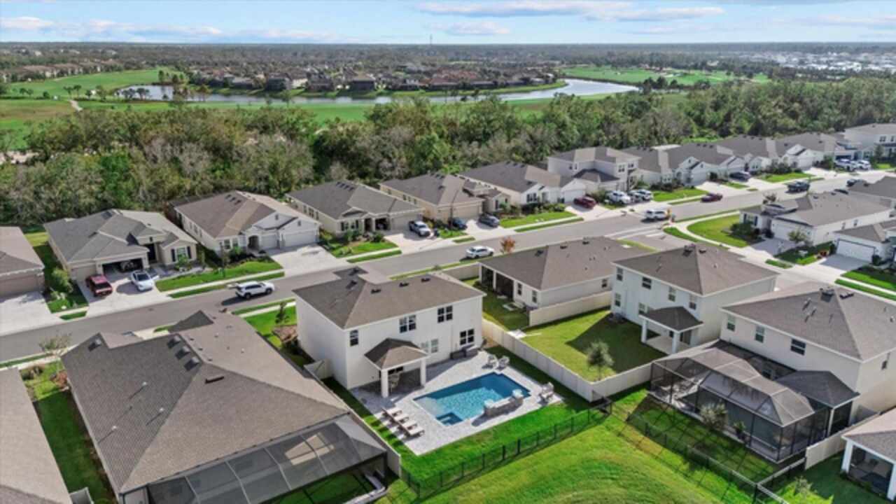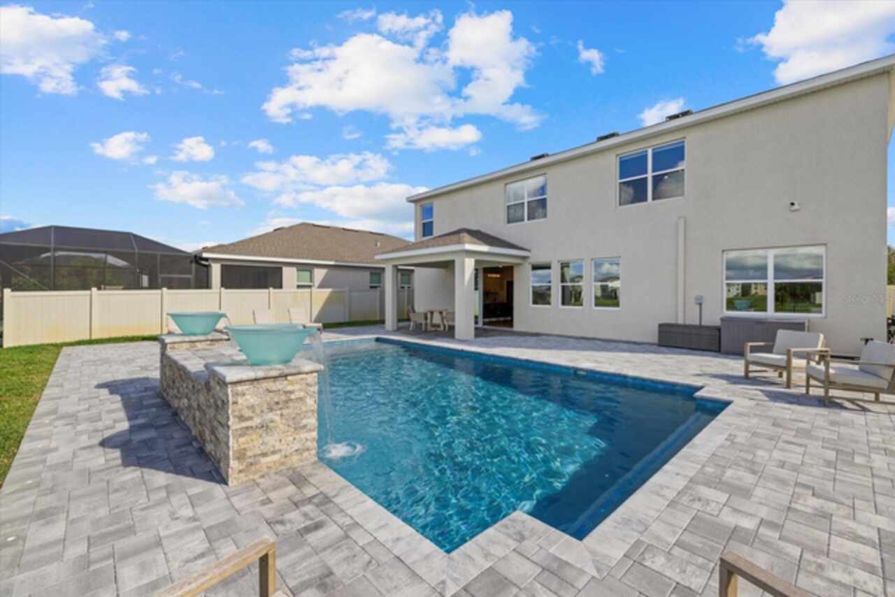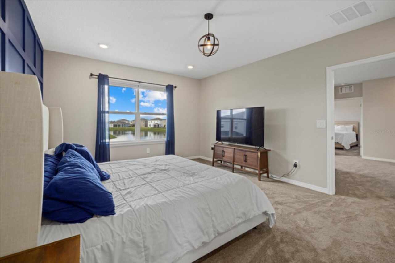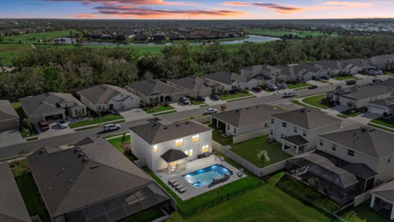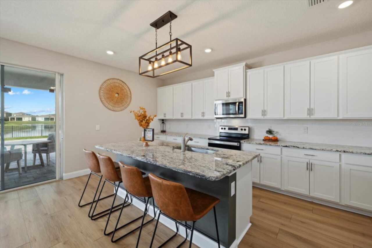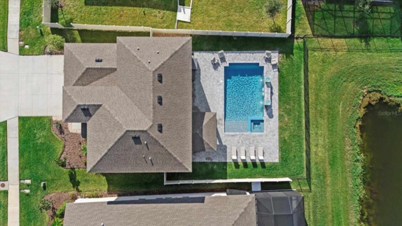 Discover the exquisite D.R. Horton's Jordyn Model home in the sought-after Solera community of Lakewood Ranch—the nation's best-selling multi-generational community known for its family-centric charm and modern living. Offering over 3, 000 square feet of living space, this meticulously maintained home is ideal for growing families and entertaining. The striking curb appeal and tasteful interior paint reflect the owners' pride of ownership. Upon entry, a showroom-quality epoxy floor in the expansive three-car garage sets the stage for the impressive details inside. The living room features a striking split face stone wall, while the owner's suite is enhanced by a custom board and batten accent wall. The open floor plan offers flexibility, with a bonus room near the foyer for work or leisure. A spacious guest bedroom on the first floor includes a full bathroom, providing privacy and comfort for visitors. The gourmet kitchen blends style and function with granite countertops, a large island, elegant cabinetry, modern light fixtures, and stainless steel appliances—all included. It flows seamlessly into the great room, dining area, and covered lanai, creating an ideal space for entertaining. Upstairs, plush carpeting leads to a versatile loft perfect for a game room or home theater. Each generously sized bedroom offers beautiful views. The luxurious owner's retreat features two walk-in closets, dual sinks, granite countertops, and a garden tub for ultimate relaxation. The highlight of this home is the stunning pool with spa—a private backyard oasis perfect for swimming, relaxing, and outdoor entertaining. The fenced backyard combines PVC and iron fencing, offering privacy while framing breathtaking pond views and picturesque sunrises and sunsets. Situated in a prime location, this home is minutes from upscale shopping, fine dining, scenic parks, top-rated golf courses, and Florida's renowned beaches. With easy access to Sarasota, St. Petersburg, and Tampa, the best of the Sunshine State is within reach. Solera residents enjoy resort-style amenities, including a luxurious pool, elegant clubhouse, top-tier schools, and a charming tot-lot. This community seamlessly blends luxury and comfort, creating an idyllic environment for families to thrive. Don't miss the opportunity to own this extraordinary home. Schedule your private showing today and experience the beauty and sophistication for yourself.