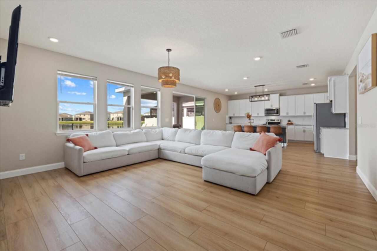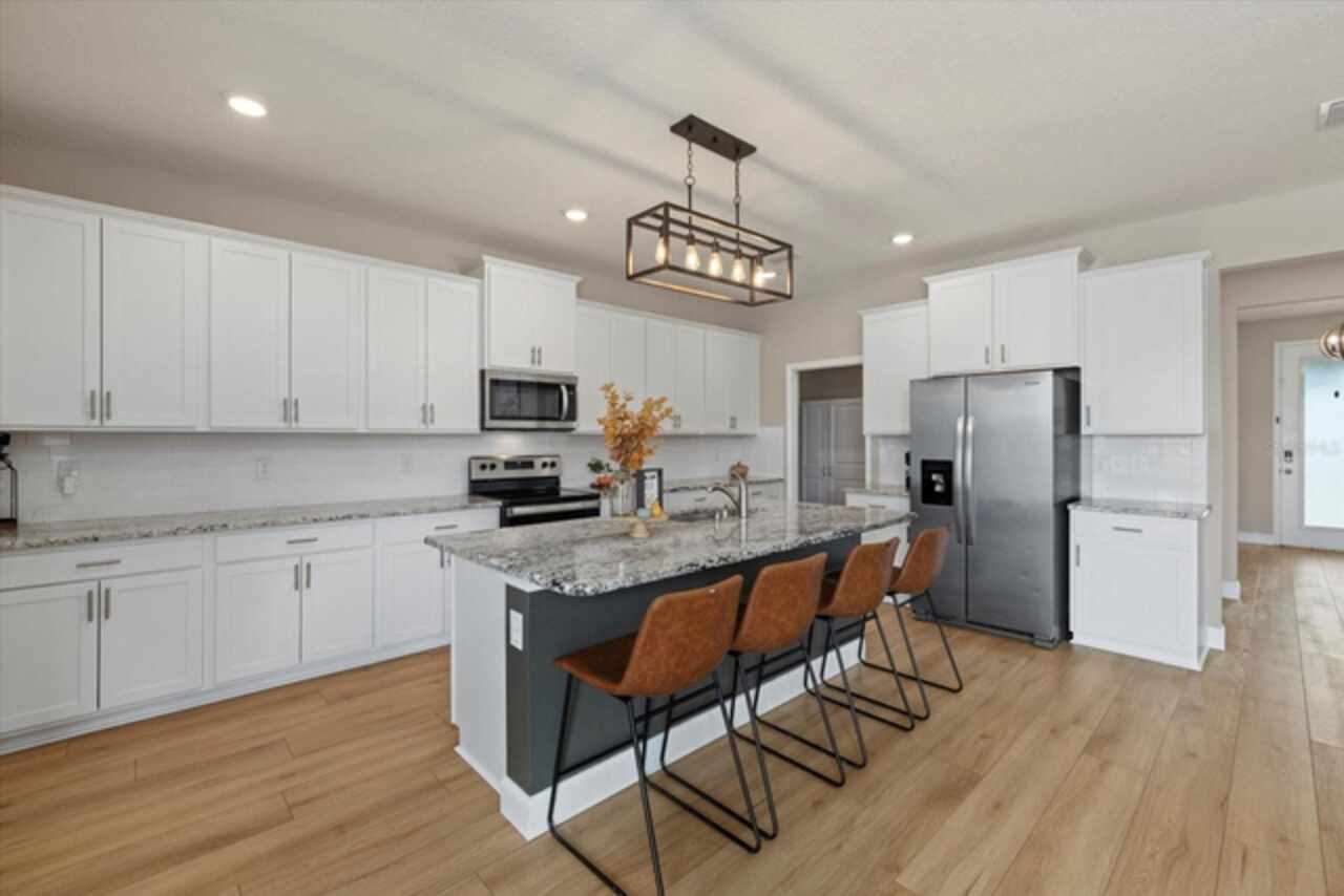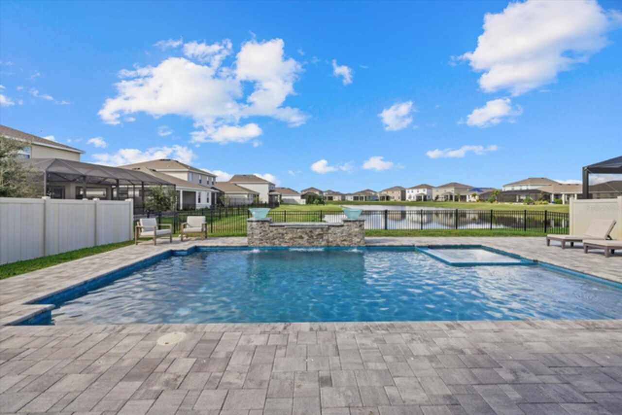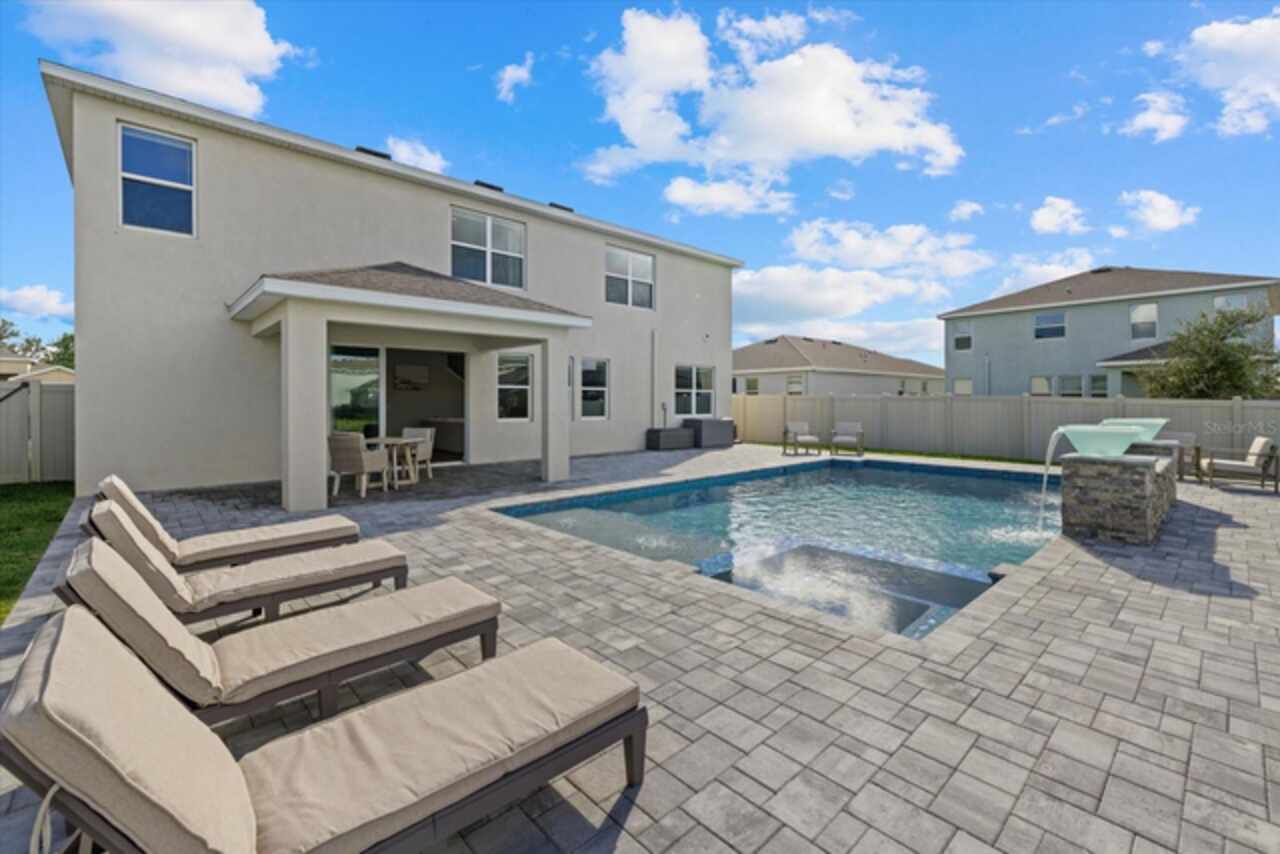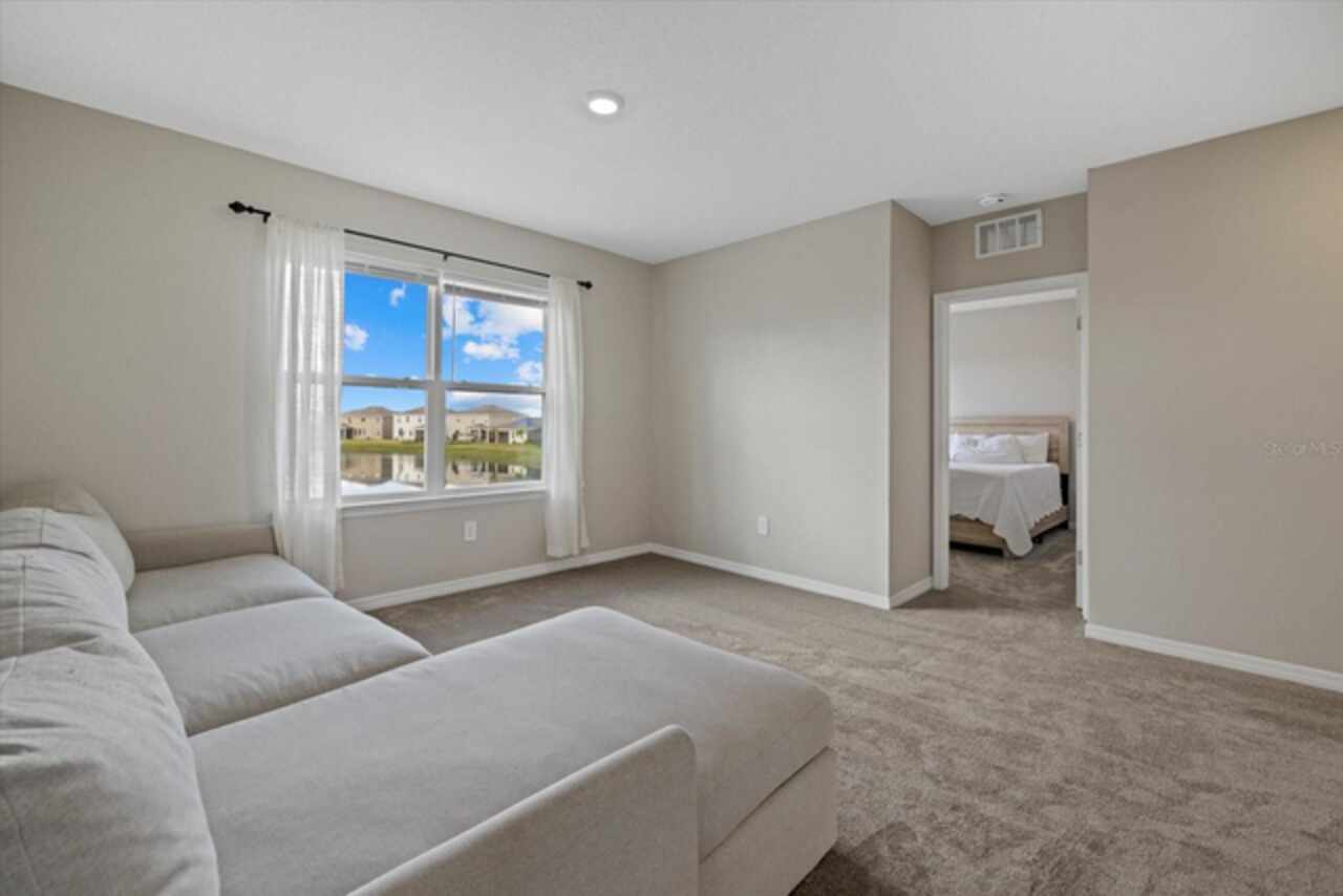 Discover the exquisite D.R. Horton's Jordyn Model home in the sought-after Solera community of Lakewood Ranch—the nation's best-selling multi-generational community known for its family-centric charm and modern living. Offering over 3, 000 square feet of living space, this meticulously maintained home is ideal for growing families and entertaining. The striking curb appeal and tasteful interior paint reflect the owners' pride of ownership. Upon entry, a showroom-quality epoxy floor in the expansive three-car garage sets the stage for the impressive details inside. The living room features a striking split face stone wall, while the owner's suite is enhanced by a custom board and batten accent wall. The open floor plan offers flexibility, with a bonus room near the foyer for work or leisure. A spacious guest bedroom on the first floor includes a full bathroom, providing privacy and comfort for visitors. The gourmet kitchen blends style and function with granite countertops, a large island, elegant cabinetry, modern light fixtures, and stainless steel appliances—all included. It flows seamlessly into the great room, dining area, and covered lanai, creating an ideal space for entertaining. Upstairs, plush carpeting leads to a versatile loft perfect for a game room or home theater. Each generously sized bedroom offers beautiful views. The luxurious owner's retreat features two walk-in closets, dual sinks, granite countertops, and a garden tub for ultimate relaxation. The highlight of this home is the stunning pool with spa—a private backyard oasis perfect for swimming, relaxing, and outdoor entertaining. The fenced backyard combines PVC and iron fencing, offering privacy while framing breathtaking pond views and picturesque sunrises and sunsets. Situated in a prime location, this home is minutes from upscale shopping, fine dining, scenic parks, top-rated golf courses, and Florida's renowned beaches. With easy access to Sarasota, St. Petersburg, and Tampa, the best of the Sunshine State is within reach. Solera residents enjoy resort-style amenities, including a luxurious pool, elegant clubhouse, top-tier schools, and a charming tot-lot. This community seamlessly blends luxury and comfort, creating an idyllic environment for families to thrive. Don't miss the opportunity to own this extraordinary home. Schedule your private showing today and experience the beauty and sophistication for yourself.
