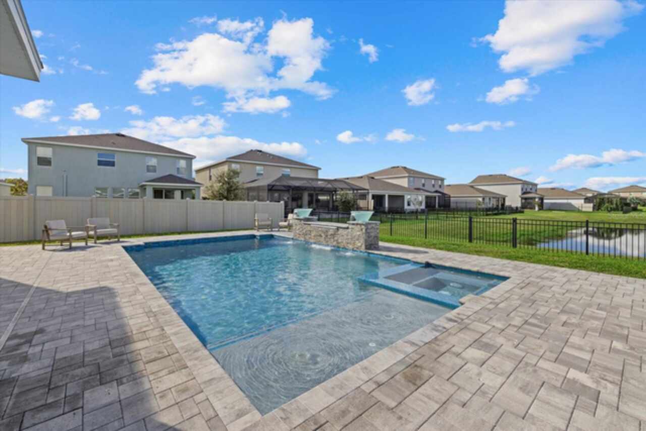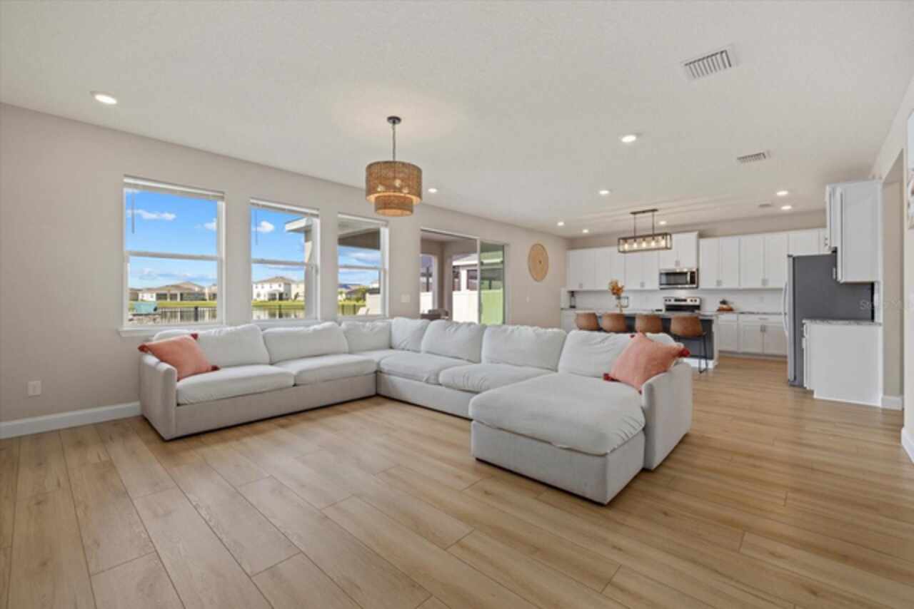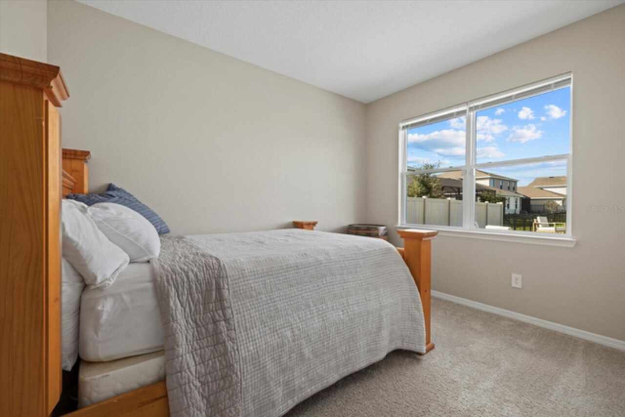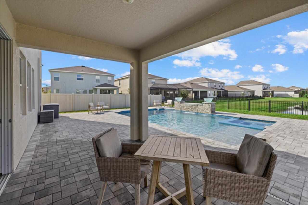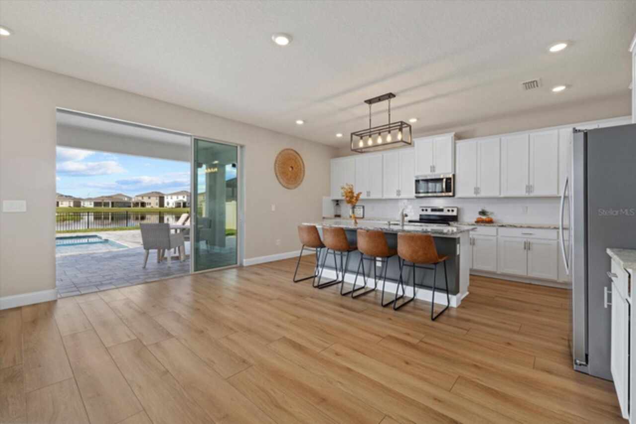 Discover the exquisite D.R. Horton's Jordyn Model home in the sought-after Solera community of Lakewood Ranch—the nation's best-selling multi-generational community known for its family-centric charm and modern living. Offering over 3, 000 square feet of living space, this meticulously maintained home is ideal for growing families and entertaining. The striking curb appeal and tasteful interior paint reflect the owners' pride of ownership. Upon entry, a showroom-quality epoxy floor in the expansive three-car garage sets the stage for the impressive details inside. The living room features a striking split face stone wall, while the owner's suite is enhanced by a custom board and batten accent wall. The open floor plan offers flexibility, with a bonus room near the foyer for work or leisure. A spacious guest bedroom on the first floor includes a full bathroom, providing privacy and comfort for visitors. The gourmet kitchen blends style and function with granite countertops, a large island, elegant cabinetry, modern light fixtures, and stainless steel appliances—all included. It flows seamlessly into the great room, dining area, and covered lanai, creating an ideal space for entertaining. Upstairs, plush carpeting leads to a versatile loft perfect for a game room or home theater. Each generously sized bedroom offers beautiful views. The luxurious owner's retreat features two walk-in closets, dual sinks, granite countertops, and a garden tub for ultimate relaxation. The highlight of this home is the stunning pool with spa—a private backyard oasis perfect for swimming, relaxing, and outdoor entertaining. The fenced backyard combines PVC and iron fencing, offering privacy while framing breathtaking pond views and picturesque sunrises and sunsets. Situated in a prime location, this home is minutes from upscale shopping, fine dining, scenic parks, top-rated golf courses, and Florida's renowned beaches. With easy access to Sarasota, St. Petersburg, and Tampa, the best of the Sunshine State is within reach. Solera residents enjoy resort-style amenities, including a luxurious pool, elegant clubhouse, top-tier schools, and a charming tot-lot. This community seamlessly blends luxury and comfort, creating an idyllic environment for families to thrive. Don't miss the opportunity to own this extraordinary home. Schedule your private showing today and experience the beauty and sophistication for yourself.