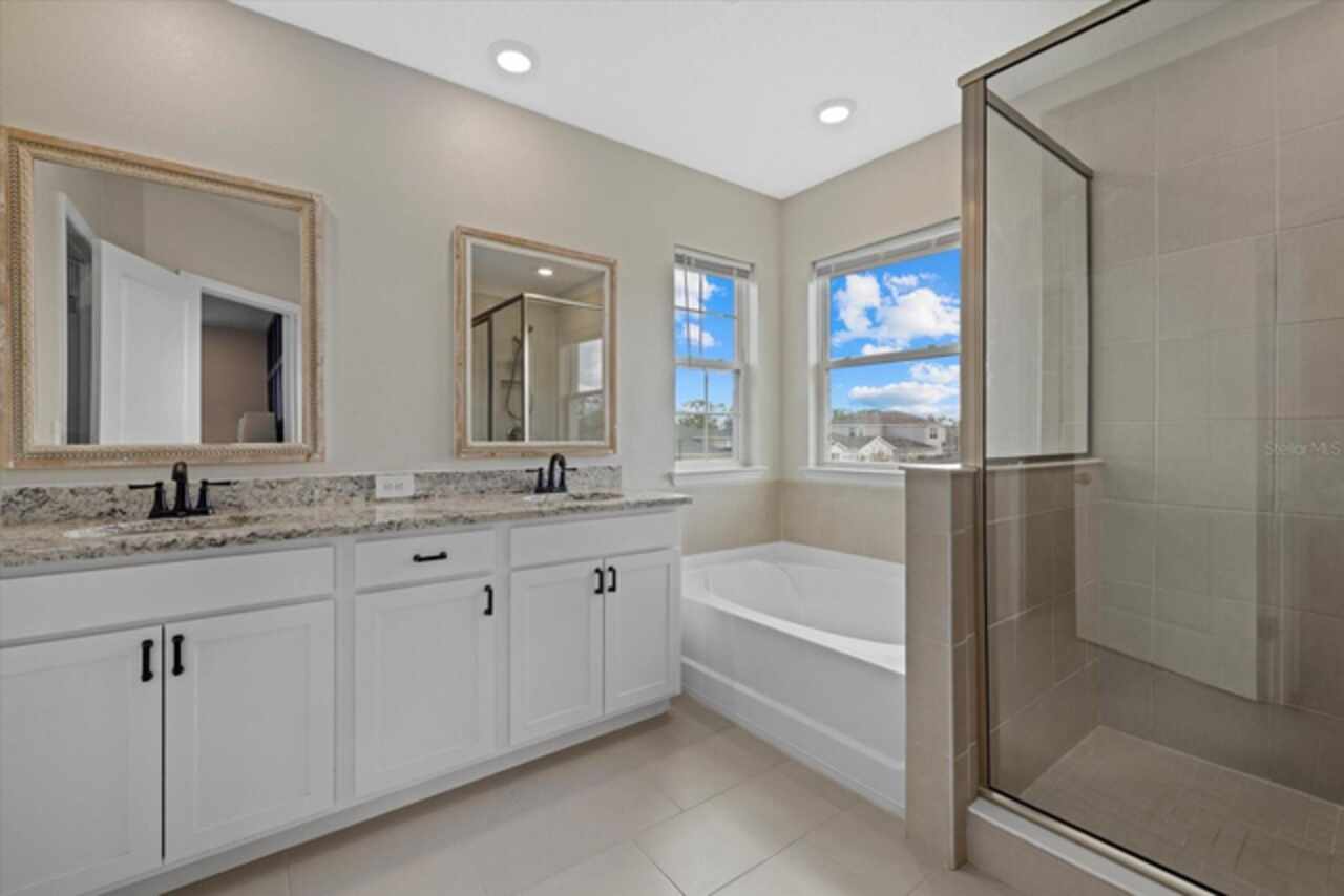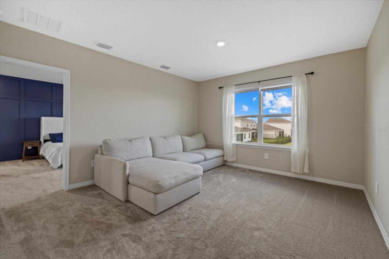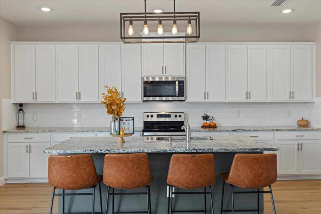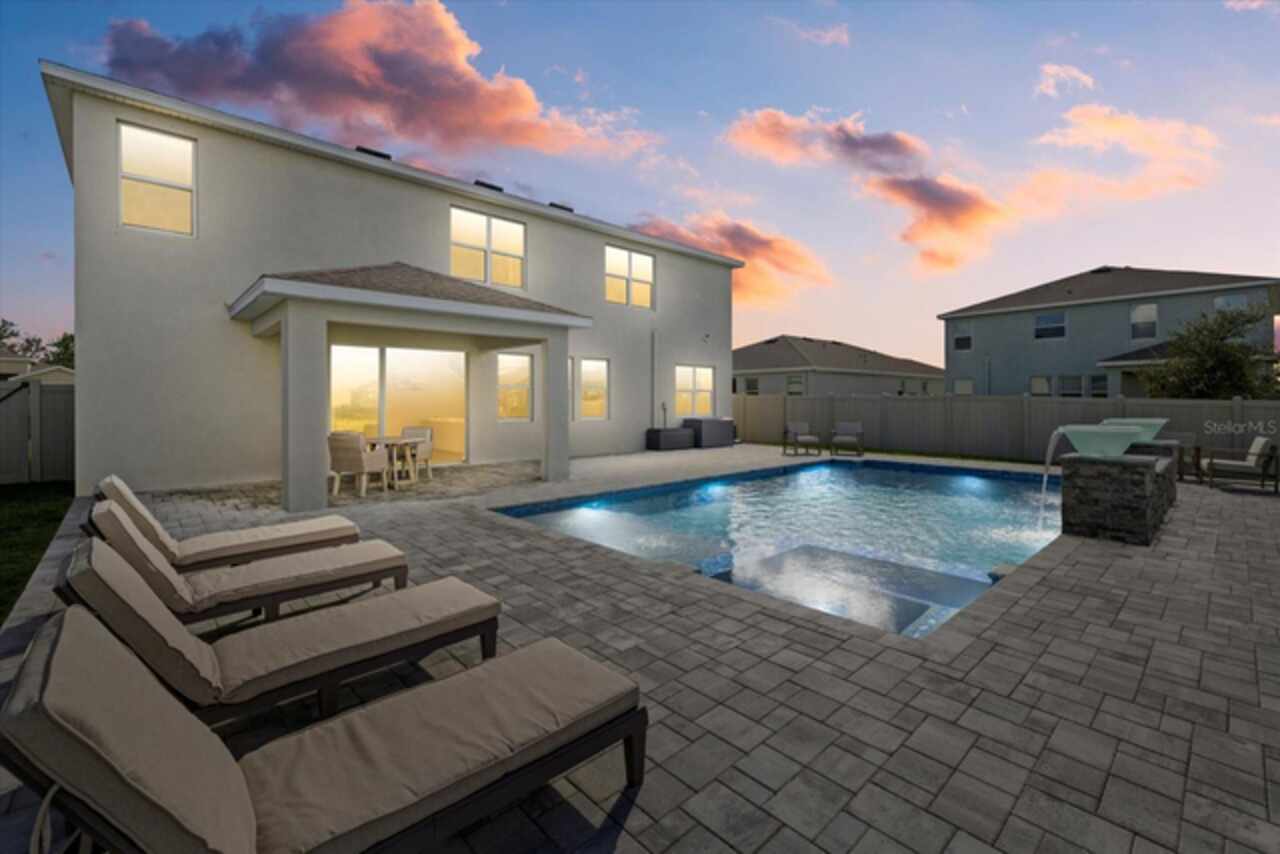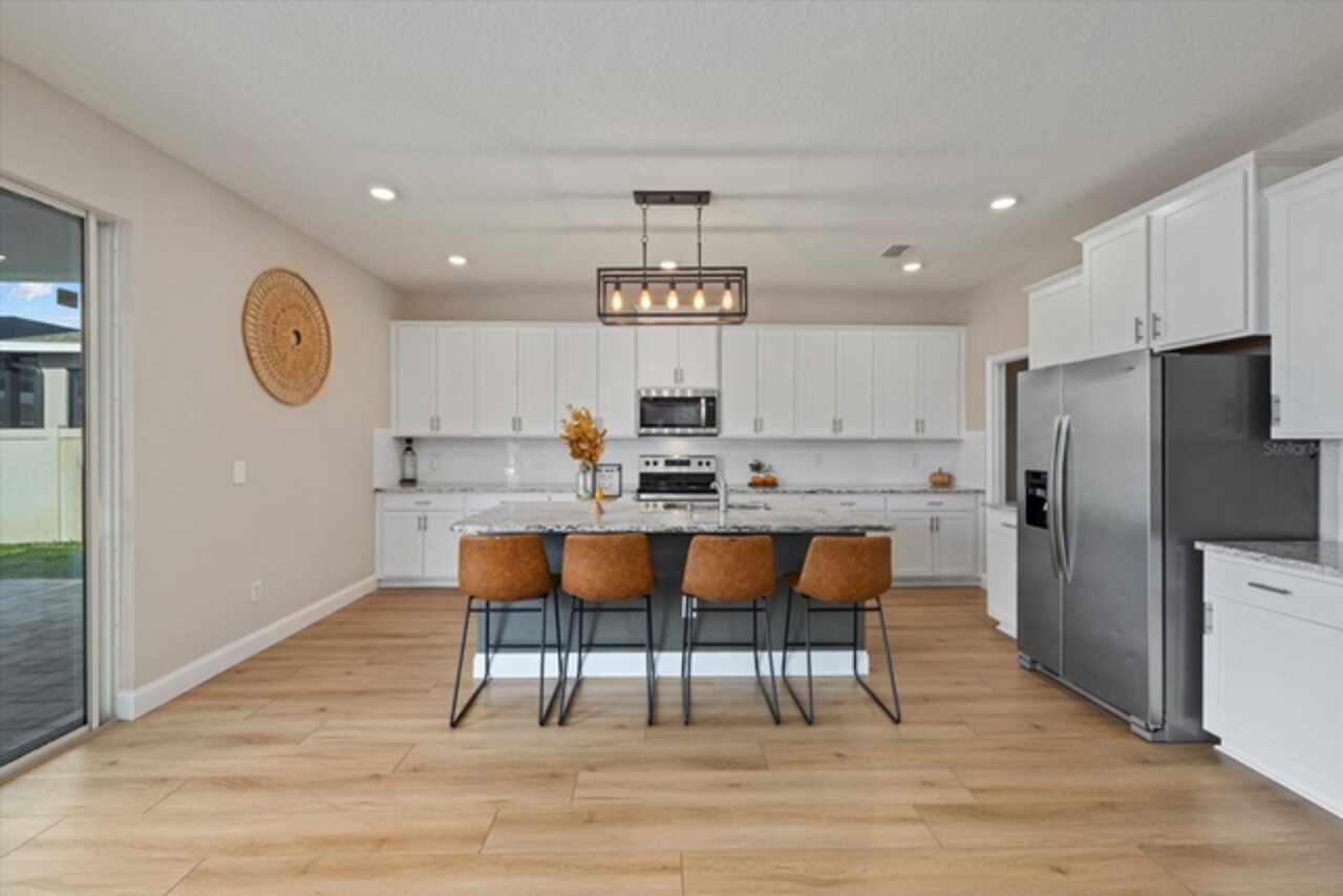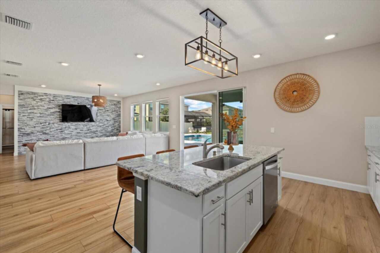 Discover the exquisite D.R. Horton's Jordyn Model home in the sought-after Solera community of Lakewood Ranch—the nation's best-selling multi-generational community known for its family-centric charm and modern living. Offering over 3, 000 square feet of living space, this meticulously maintained home is ideal for growing families and entertaining. The striking curb appeal and tasteful interior paint reflect the owners' pride of ownership. Upon entry, a showroom-quality epoxy floor in the expansive three-car garage sets the stage for the impressive details inside. The living room features a striking split face stone wall, while the owner's suite is enhanced by a custom board and batten accent wall. The open floor plan offers flexibility, with a bonus room near the foyer for work or leisure. A spacious guest bedroom on the first floor includes a full bathroom, providing privacy and comfort for visitors. The gourmet kitchen blends style and function with granite countertops, a large island, elegant cabinetry, modern light fixtures, and stainless steel appliances—all included. It flows seamlessly into the great room, dining area, and covered lanai, creating an ideal space for entertaining. Upstairs, plush carpeting leads to a versatile loft perfect for a game room or home theater. Each generously sized bedroom offers beautiful views. The luxurious owner's retreat features two walk-in closets, dual sinks, granite countertops, and a garden tub for ultimate relaxation. The highlight of this home is the stunning pool with spa—a private backyard oasis perfect for swimming, relaxing, and outdoor entertaining. The fenced backyard combines PVC and iron fencing, offering privacy while framing breathtaking pond views and picturesque sunrises and sunsets. Situated in a prime location, this home is minutes from upscale shopping, fine dining, scenic parks, top-rated golf courses, and Florida's renowned beaches. With easy access to Sarasota, St. Petersburg, and Tampa, the best of the Sunshine State is within reach. Solera residents enjoy resort-style amenities, including a luxurious pool, elegant clubhouse, top-tier schools, and a charming tot-lot. This community seamlessly blends luxury and comfort, creating an idyllic environment for families to thrive. Don't miss the opportunity to own this extraordinary home. Schedule your private showing today and experience the beauty and sophistication for yourself.