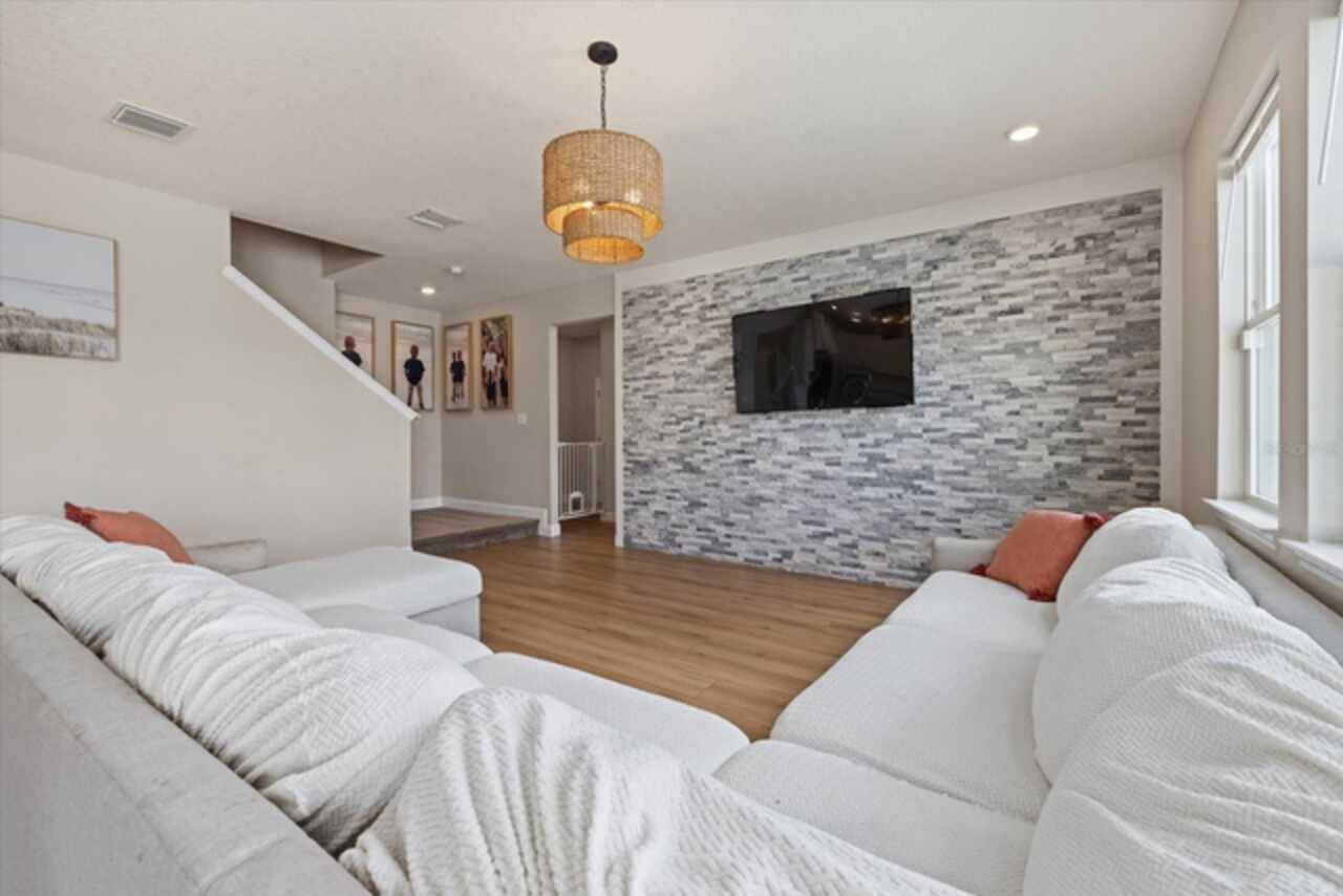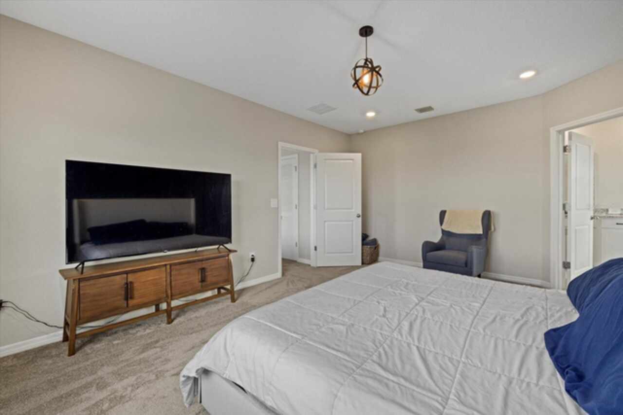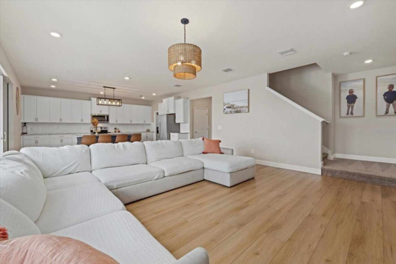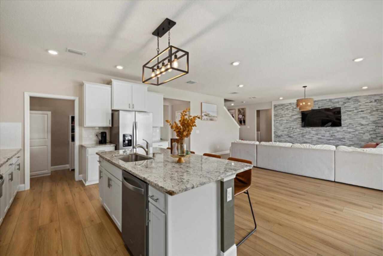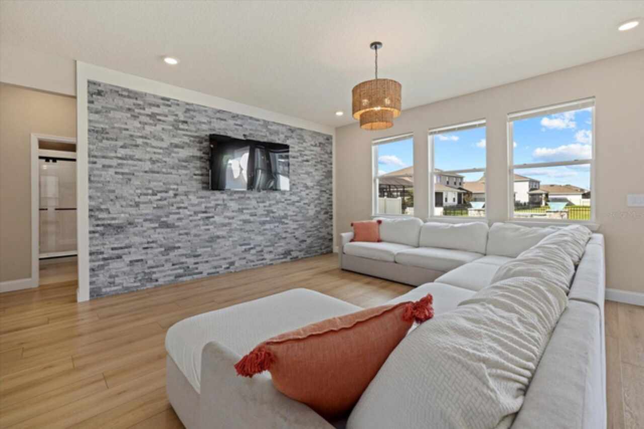 Discover the exquisite D.R. Horton's Jordyn Model home in the sought-after Solera community of Lakewood Ranch—the nation's best-selling multi-generational community known for its family-centric charm and modern living. Offering over 3, 000 square feet of living space, this meticulously maintained home is ideal for growing families and entertaining. The striking curb appeal and tasteful interior paint reflect the owners' pride of ownership. Upon entry, a showroom-quality epoxy floor in the expansive three-car garage sets the stage for the impressive details inside. The living room features a striking split face stone wall, while the owner's suite is enhanced by a custom board and batten accent wall. The open floor plan offers flexibility, with a bonus room near the foyer for work or leisure. A spacious guest bedroom on the first floor includes a full bathroom, providing privacy and comfort for visitors. The gourmet kitchen blends style and function with granite countertops, a large island, elegant cabinetry, modern light fixtures, and stainless steel appliances—all included. It flows seamlessly into the great room, dining area, and covered lanai, creating an ideal space for entertaining. Upstairs, plush carpeting leads to a versatile loft perfect for a game room or home theater. Each generously sized bedroom offers beautiful views. The luxurious owner's retreat features two walk-in closets, dual sinks, granite countertops, and a garden tub for ultimate relaxation. The highlight of this home is the stunning pool with spa—a private backyard oasis perfect for swimming, relaxing, and outdoor entertaining. The fenced backyard combines PVC and iron fencing, offering privacy while framing breathtaking pond views and picturesque sunrises and sunsets. Situated in a prime location, this home is minutes from upscale shopping, fine dining, scenic parks, top-rated golf courses, and Florida's renowned beaches. With easy access to Sarasota, St. Petersburg, and Tampa, the best of the Sunshine State is within reach. Solera residents enjoy resort-style amenities, including a luxurious pool, elegant clubhouse, top-tier schools, and a charming tot-lot. This community seamlessly blends luxury and comfort, creating an idyllic environment for families to thrive. Don't miss the opportunity to own this extraordinary home. Schedule your private showing today and experience the beauty and sophistication for yourself.