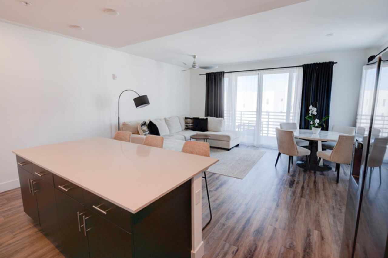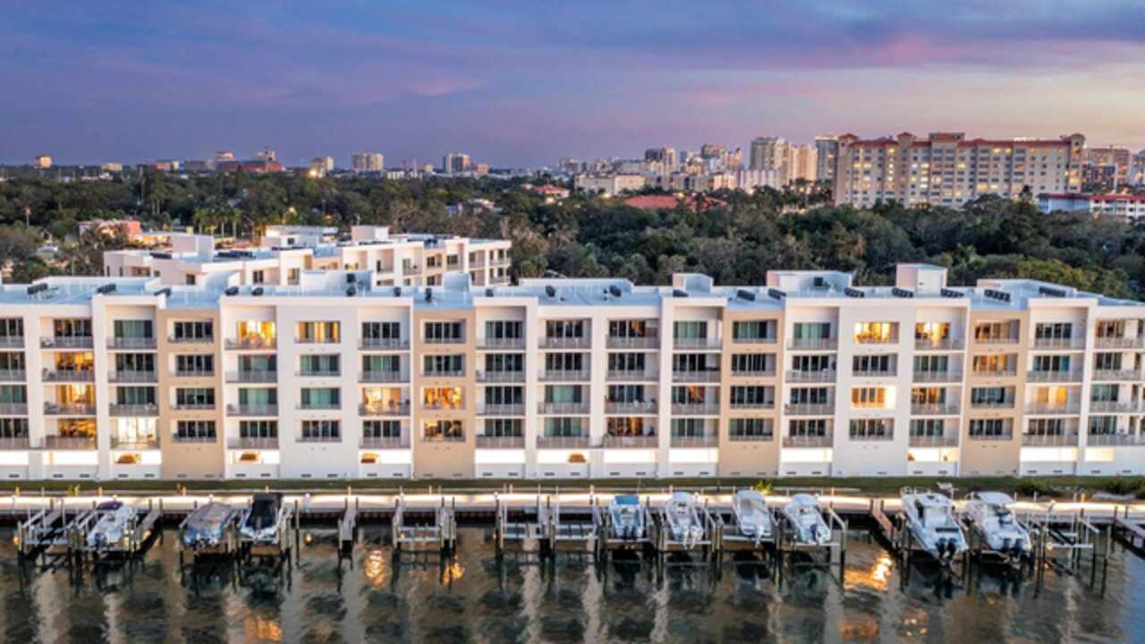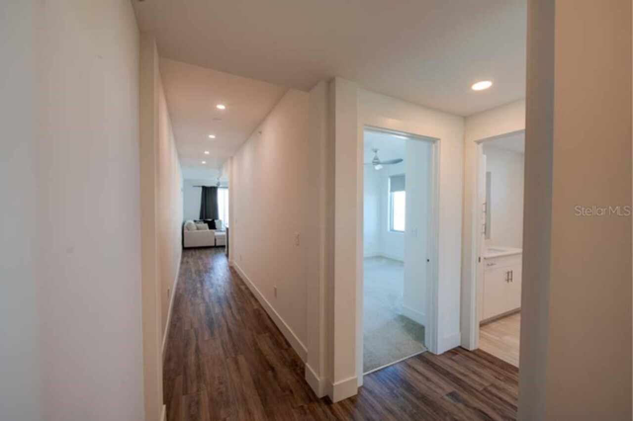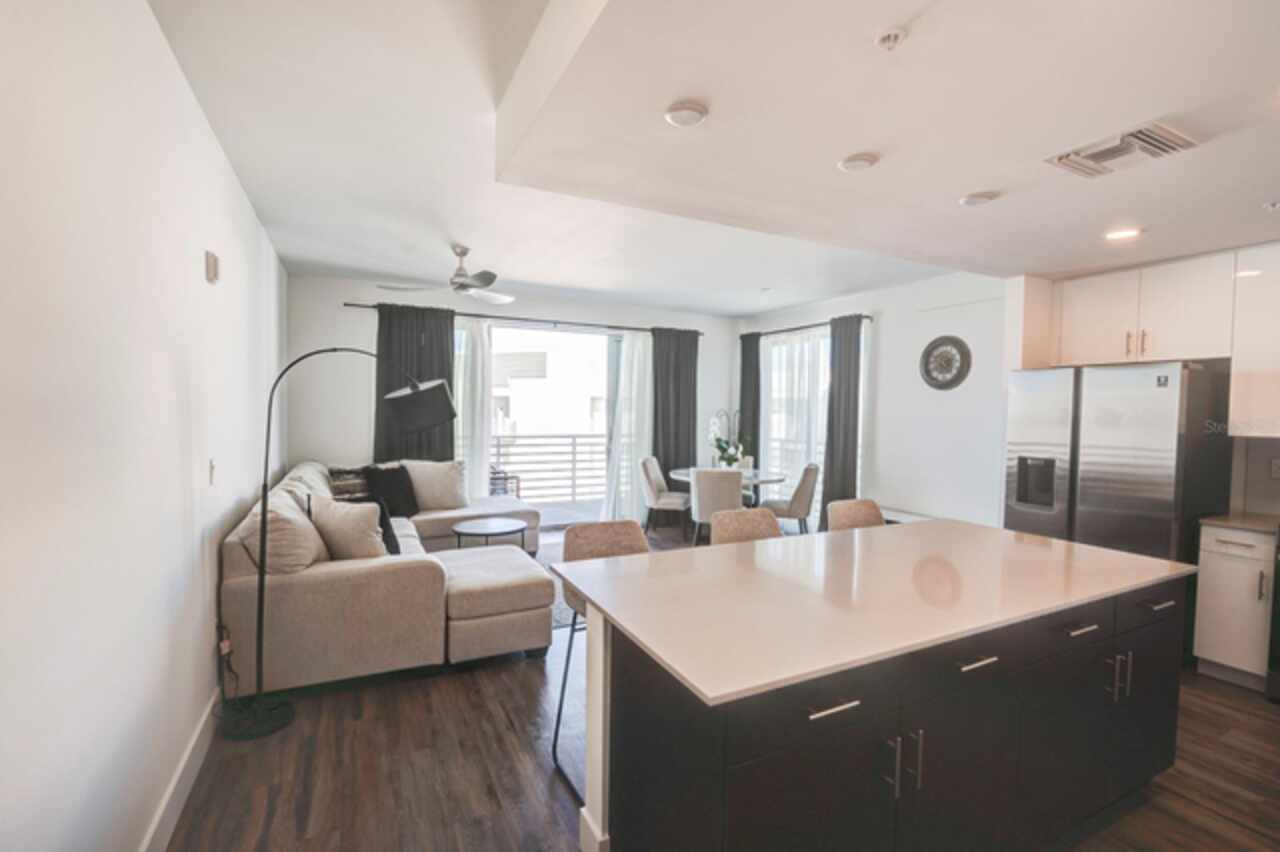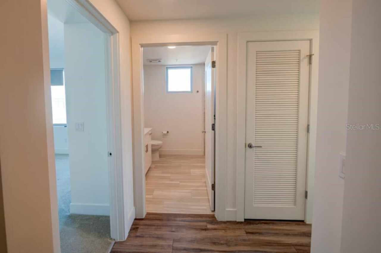 One or more photo(s) has been virtually staged. Penthouse , 5th floor, end unit, 2 bedroom , 2 full bath residence , 126 sf oversized terrace, Perfect as a primary or secondary home, or investment property where weekly rentals are permitted. The Strand! This Modern New Construction Waterfront and Bay access Condo, near Downtown Sarasota, Florida was completed in November 2022, beautifully decorated and designed PENTHOUSE, END UNIT with unmatched custom upgrades in this oversized open floor plan layout. The Kitchen/Dining/Living room gives a large, bright, open feeling. Upgraded, Two toned Modern high gloss cabinetry with pull outs and soft close drawers, terrazzo quartz island is amazing for eating, working, or to gather around at a cocktail party that will spill out onto the balcony thru the full wall of 9’ tall hurricane rated sliding glass doors. This beautiful unit offers two full bathrooms, with high gloss finished vanities and stone quartz countertops, one master bedroom with walking closet plus a large second bedroom.Convenient in-unit laundry room with Samsung washer and dryer, 1 under building assigned parking space, and private secure storage. Resort style amenities are fantastic including heated swimming pool/spa, fitness center, gas fire pit and grills, electric car charging stations, dog park, boardwalk, and kayak launch & storage. In addition to the fabulous surroundings and culture , walking distance of Downtown Sarasota, you can enjoy the restaurants, cafes and bars that are just a stone’s throw away from The Strand. Enjoy and explore the top-rated beaches and bays, waterfront parks just one step away. Sarasota was named one of the best places to live in the Country by U.S. News & World Report in the 2022 annual rankings which ranked Sarasota #9, making it the only Florida city to land in the Top 10. Make this exceptional residence, community and city your home today.