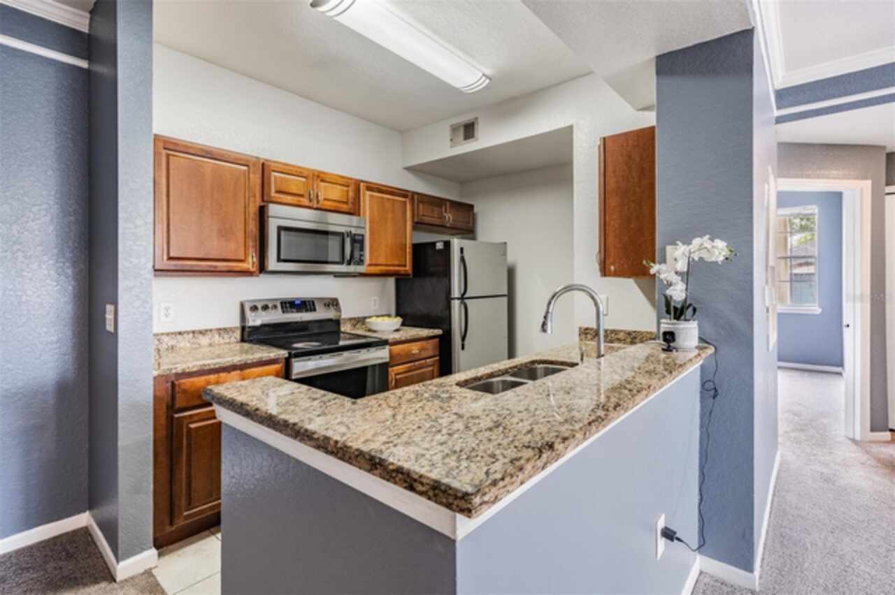One or more photo(s) has been virtually staged. MOTIVATED SELLER, NEW PRICE IMPROVEMENT!!!!! Welcome To Jade At Tampa Palms! This rare ground-floor, corner 3BR/2BA New Tampa condo offers 1, 336 sq. ft. of modern, low-maintenance living in one of Tampa’s most desirable locations. The popular split floor plan showcases an open-concept living and dining area with soaring ceilings, flowing seamlessly into a well-appointed kitchen featuring stone countertops, wood cabinetry, and all appliances included. An interior laundry room adds everyday convenience. The private primary suite features a spacious walk-in closet and en-suite bathroom, while two additional bedrooms share a second full bath—ideal for guests, a home office, or multi-use flex space. Residents enjoy resort-style amenities, including a community clubhouse, swimming pool, fitness center, tennis courts, and playground. The monthly HOA fee covers water, sewer, trash, exterior maintenance, pest control, and pool care—plus added security—with no CDD fees and a Flood Zone X location for extra peace of mind. This condo is ideally situated just minutes from USF (University of South Florida), Moffitt Cancer Center, and the James A. Haley Veterans’ Hospital, making it an excellent option for medical professionals, and investors. Quick access to I-75, Bruce B. Downs Blvd, top-rated shopping, dining, and local parks ensures an easy commute and a vibrant lifestyle. Whether you're looking for a primary residence or a high-demand rental property, this condo delivers the perfect combination of convenience, comfort, and incredible New Tampa location. Experience the best of Tampa Palms living today!