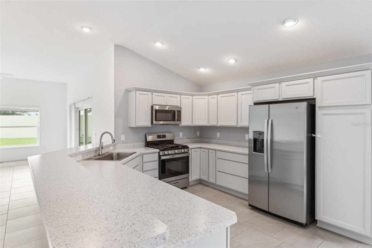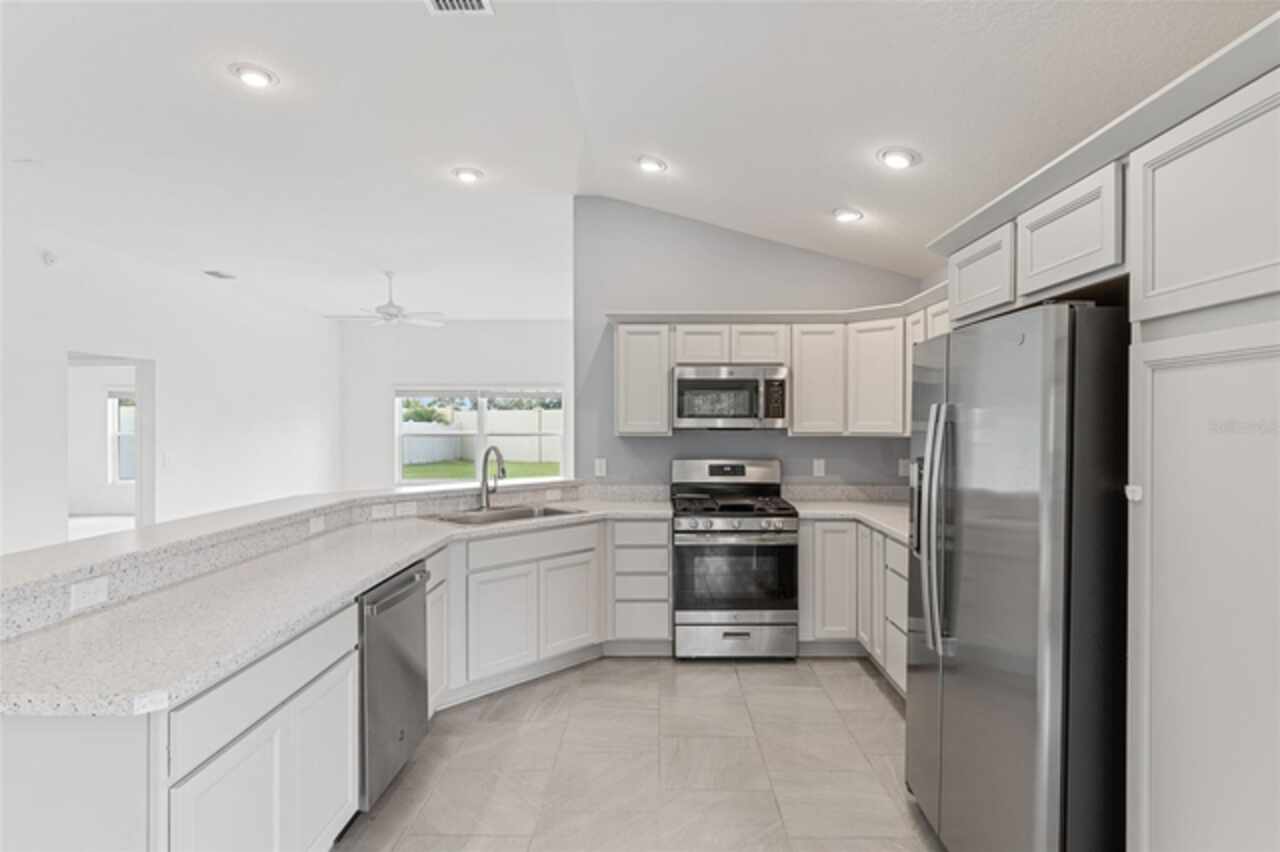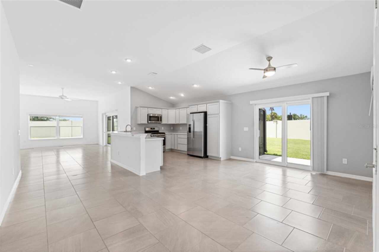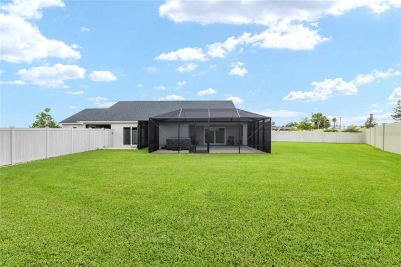 Welcome to THE VILLAGE OF ST. JOHN! This elegant, low maintenance COURTYARD VILLA "AVONDALE MODEL" is perfect for those seeking privacy, enclosed space for a pet or those who wish to spend a little less time caring for a yard and more time enjoying the lifestyle.The property features three-bedroom, two bath, two-car, golf-cart garage, water filtration system, all situated on a 0.30-ACRE CORNER LOT that offers COMPLETE PRIVACY and ROOM FOR A POOL. With a NEW BIRDCAGE and POND VIEW it's quite SPECTACULAR! As you step inside, you'll be greeted by a spacious living area filled with natural light, ideal for relaxation or entertaining guests. The well-appointed kitchen features modern STAINLESS STEEL appliances, ample CABINET and COUNTER SPACE. A large DINING ROOM area, with views of the backyard. A Large LIVING ROOM with views of the back yard. The owner's suite features LARGE WALK-IN CLOSET and an ENSUITE BATHROOM, ROMAN WALK-IN SHOWER, DUAL SINKS and tile flooring. Guests will enjoy their own private space with separate hallway, full bathroom, and both rooms with built-in closets. Additional highlights include an INDOOR LAUNDRY room with utility sink, washer, gas dryer, a NEW BIRDCAGE with ROOM FOR A POOL and a SCREEN-IN FRONT PORCH, for enjoying VIEWS OF THE POND. Conveniently located just a few miles to Sawgrass Grove and Brownwood Paddock Square and all the excitement of the newest Town Center, Eastport. There are many Golf Courses nearby as well as the Magnolia Shopping Plaza and the Water Lily and Everglades Recreation Centers are just a short Golf Cart ride away. Face Time tour available upon request.