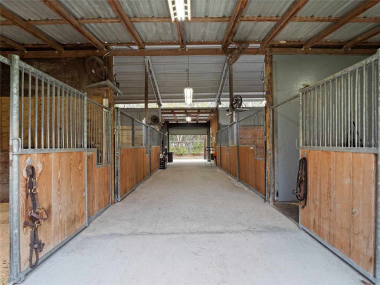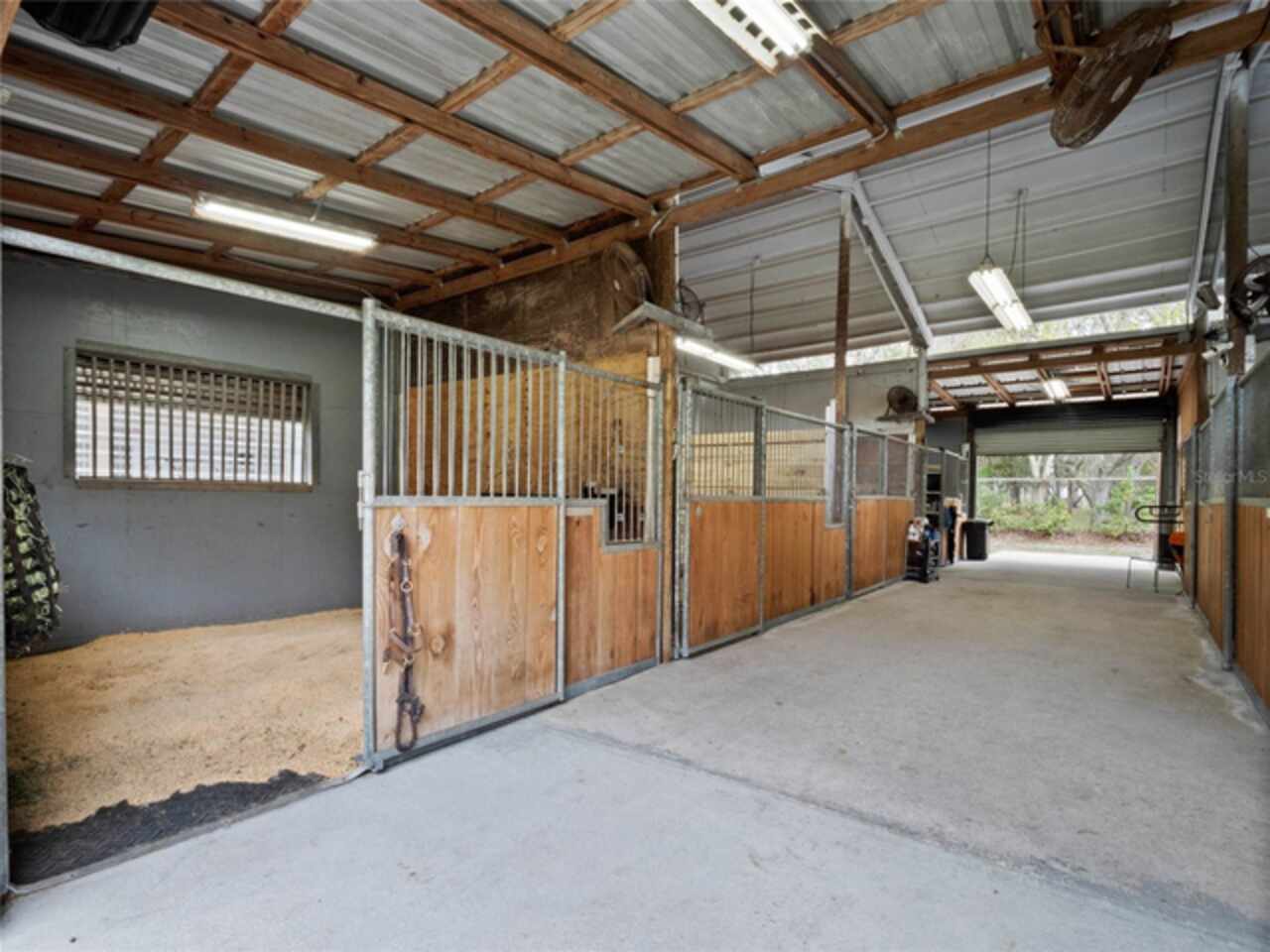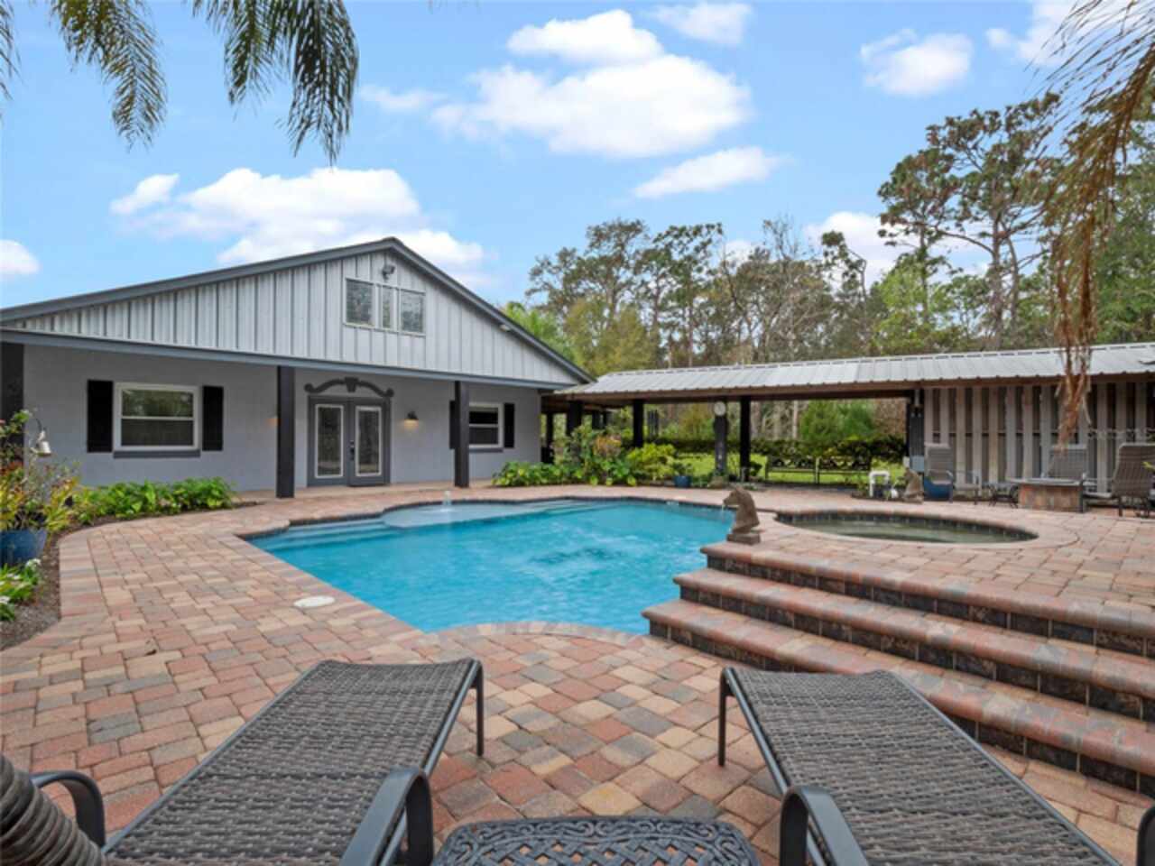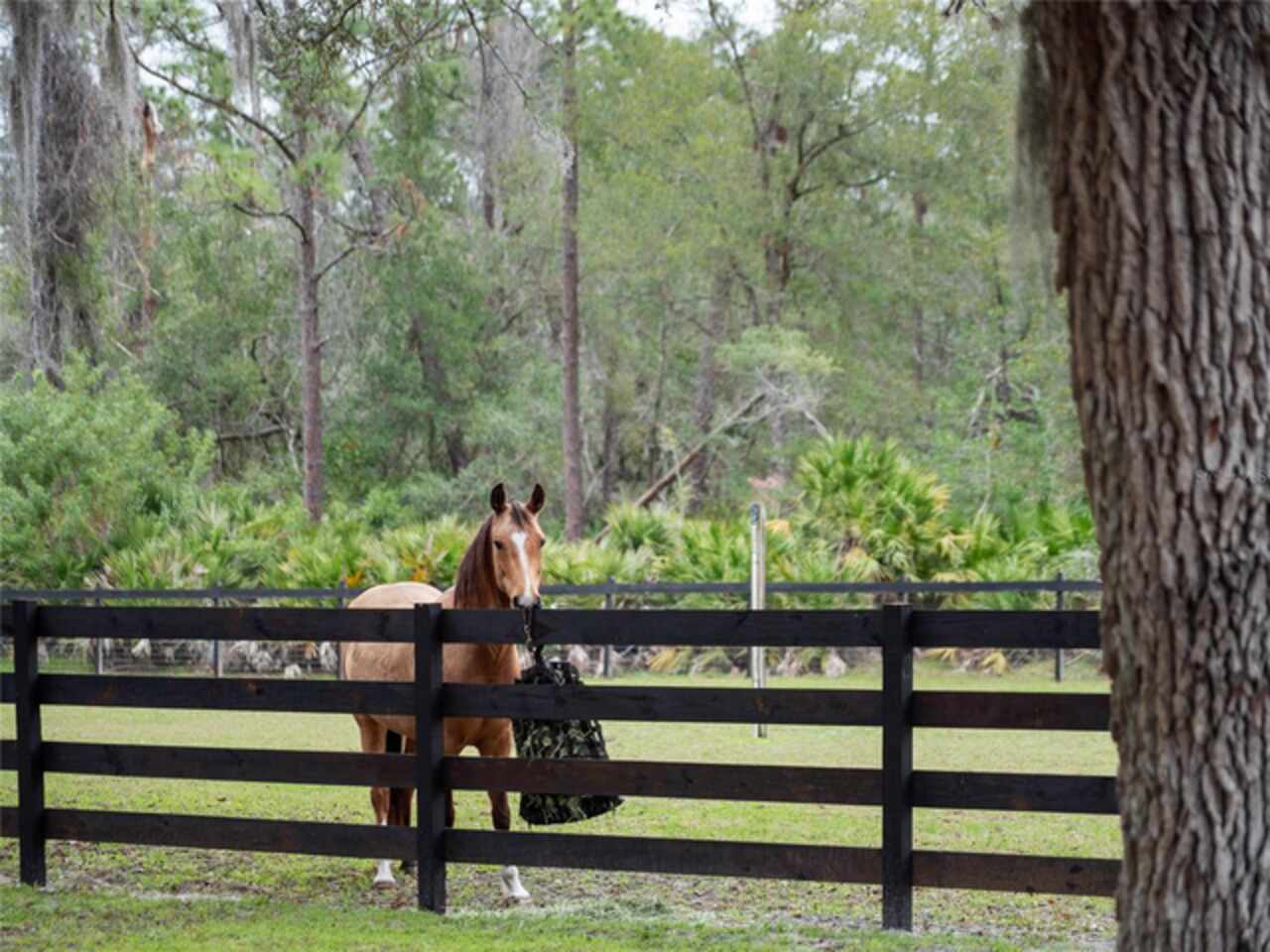 Wake up to quiet mornings under centuries-old live oaks, spend your afternoons by a private resort-style pool, and finish the day watching your horses graze as the sun sets. This exceptional 5-acre horse property offers that rare blend of peaceful country living with the convenience of town and beach life just minutes away. Privately tucked beside a 100-acres of unspoiled Florida flora and fauna owned by the Nature Conservancy, this beautifully maintained 3-bedroom, 2-bath pool home is surrounded by nature yet located just a mile from shopping, dining, and medical care. And when you’re craving the ocean breeze, the sandy shores of Daytona's Beaches are only a few short miles away. Inside, the home feels warm, open, and inviting with vaulted ceilings, wood-beam details, and an easy-flowing layout perfect for everyday comfort or hosting friends and family. The living and dining space centers around a cozy electric fireplace, while the custom kitchen is both stunning and functional, featuring rich cherry cabinets, granite countertops, double ovens, and a large island where everyone naturally gathers. The primary suite is a true retreat with a double-sided glass fireplace, soaking air tub, oversized walk-in shower, and spacious closet—your own personal escape at the end of the day. Two guest bedrooms share a Jack-and-Jill bath, offering privacy and space for family or visitors. Step outside and enjoy your own private oasis with a heated saltwater pool and spa, dual-jet Badu swim system, fire pit, and expansive paver deck—ideal for entertaining or relaxing under the Florida sun. For horse lovers, this property is simply unmatched. Enter through the gated drive to find a fully equipped 7-stall center-aisle barn with 12x12 stalls, removable foaling walls, individual fans, hurricane panels, and a climate-controlled tack and feed room. The property is fully fenced and cross-fenced, offering a riding arena, multiple run-in sheds with electric, and excellent pasture space. A deep well and commercial-grade irrigation system make maintaining the grounds effortless. Need space for your toys, hobbies, or guests? The massive RV barn offers three bays with 14’ clearance, 220V service, a workshop with A/C, and multiple RV hookups—perfect for hosting friends and family during Daytona’s many events. This is more than a home—it’s a lifestyle. A place where horses roam, friends gather, and every day feels like a getaway. Lovingly owned by one family for nearly four decades, homes like this simply don’t come available often. Schedule your private showing and come experience it for yourself.