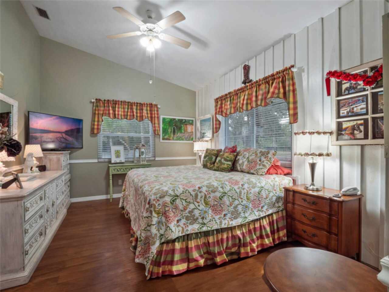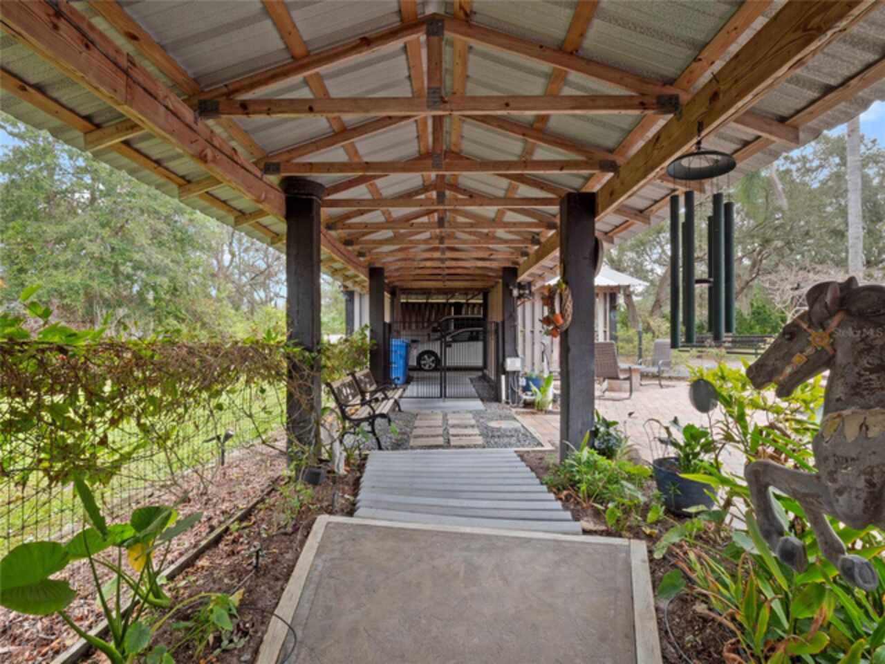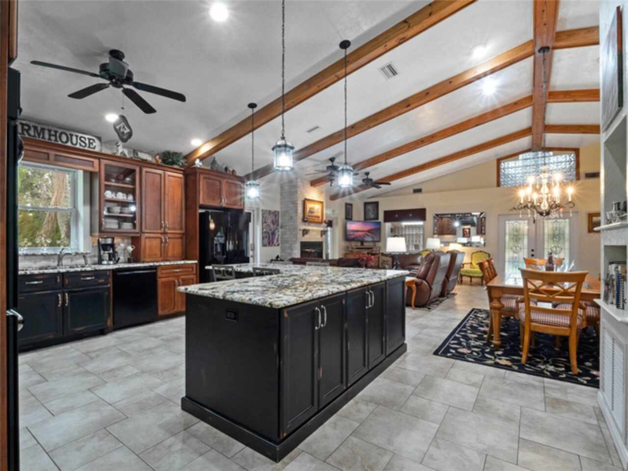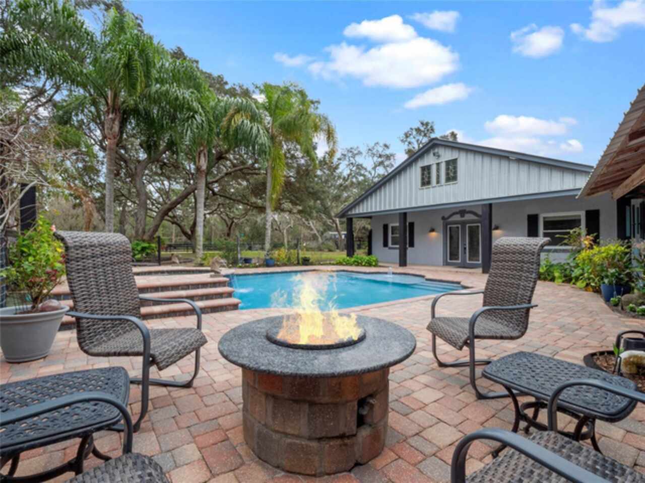 Wake up to quiet mornings under centuries-old live oaks, spend your afternoons by a private resort-style pool, and finish the day watching your horses graze as the sun sets. This exceptional 5-acre horse property offers that rare blend of peaceful country living with the convenience of town and beach life just minutes away. Privately tucked beside a 100-acres of unspoiled Florida flora and fauna owned by the Nature Conservancy, this beautifully maintained 3-bedroom, 2-bath pool home is surrounded by nature yet located just a mile from shopping, dining, and medical care. And when you’re craving the ocean breeze, the sandy shores of Daytona's Beaches are only a few short miles away. Inside, the home feels warm, open, and inviting with vaulted ceilings, wood-beam details, and an easy-flowing layout perfect for everyday comfort or hosting friends and family. The living and dining space centers around a cozy electric fireplace, while the custom kitchen is both stunning and functional, featuring rich cherry cabinets, granite countertops, double ovens, and a large island where everyone naturally gathers. The primary suite is a true retreat with a double-sided glass fireplace, soaking air tub, oversized walk-in shower, and spacious closet—your own personal escape at the end of the day. Two guest bedrooms share a Jack-and-Jill bath, offering privacy and space for family or visitors. Step outside and enjoy your own private oasis with a heated saltwater pool and spa, dual-jet Badu swim system, fire pit, and expansive paver deck—ideal for entertaining or relaxing under the Florida sun. For horse lovers, this property is simply unmatched. Enter through the gated drive to find a fully equipped 7-stall center-aisle barn with 12x12 stalls, removable foaling walls, individual fans, hurricane panels, and a climate-controlled tack and feed room. The property is fully fenced and cross-fenced, offering a riding arena, multiple run-in sheds with electric, and excellent pasture space. A deep well and commercial-grade irrigation system make maintaining the grounds effortless. Need space for your toys, hobbies, or guests? The massive RV barn offers three bays with 14’ clearance, 220V service, a workshop with A/C, and multiple RV hookups—perfect for hosting friends and family during Daytona’s many events. This is more than a home—it’s a lifestyle. A place where horses roam, friends gather, and every day feels like a getaway. Lovingly owned by one family for nearly four decades, homes like this simply don’t come available often. Schedule your private showing and come experience it for yourself.