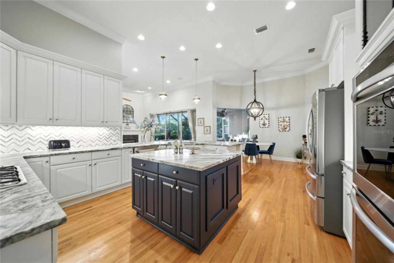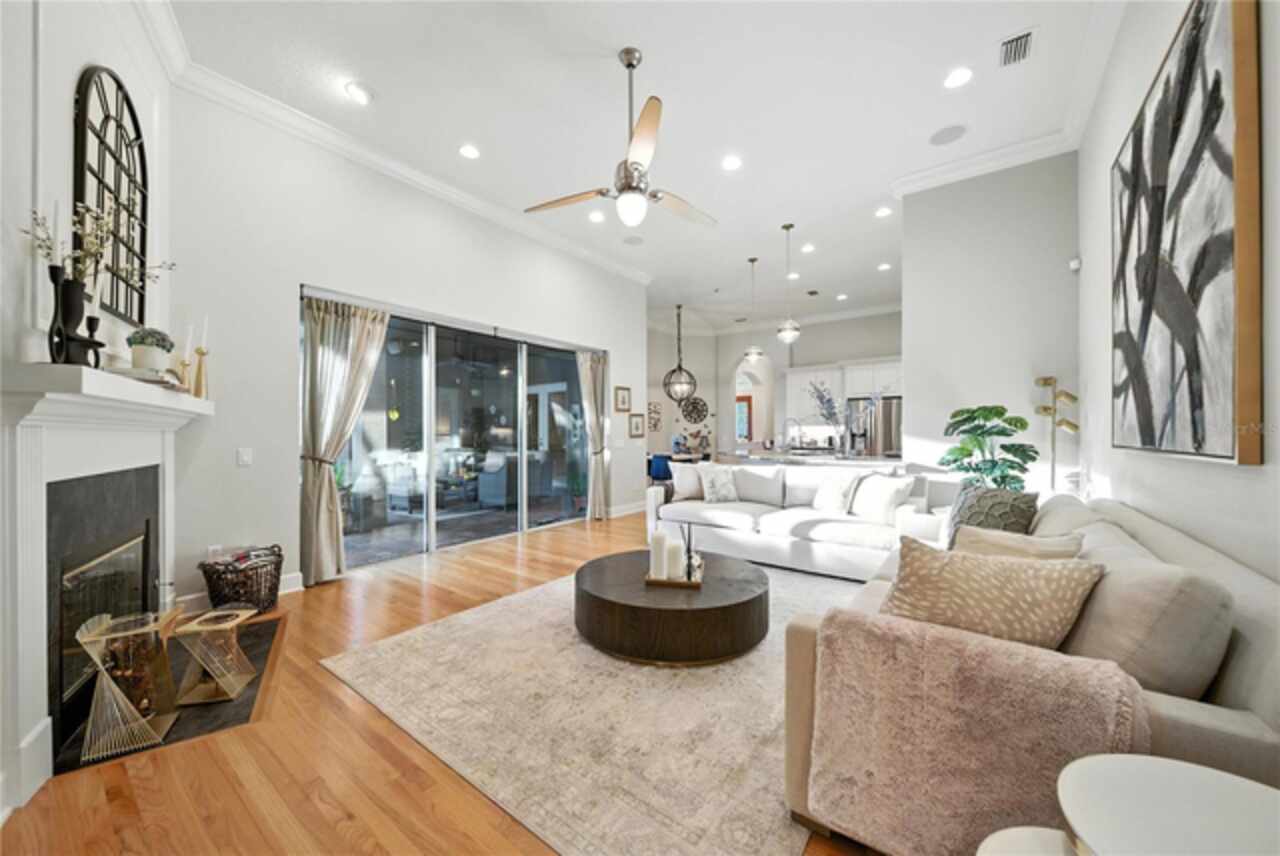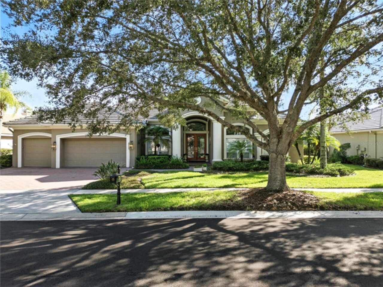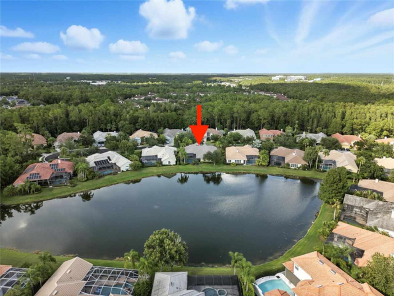 Exquisite Tampa Palms Estate in Gated Lancaster A residence of rare sophistication, this 4BR + Office, 3.5BA, 3CG executive pool home is perfectly sited on a tranquil pond in a quiet cul-de-sac. Every inch has been artfully renovated, showcasing soaring ceilings, rich hardwood floors, custom millwork, and captivating water views from nearly every room.The showpiece kitchen features an expansive leathered granite island, bespoke cabinetry with crown detail, gas cooktop, double ovens, twin wine chillers, and designer lighting. Spa-inspired baths are adorned with granite, elegant fixtures, and refined finishes. The split plan offers two guest rooms with shared bath, a private ensuite, and an indulgent master retreat with sitting area, custom closet, and a luxe bath with garden tub and walk-in shower. Outdoors, a pavered lanai frames a sparkling pool, perfect for alfresco entertaining. Recent upgrades include landscape lighting, AC (2021), water heater (2022), pool motor (2022), water softener, and a reimagined laundry.Residents enjoy Club Tampa Palms with pools, fitness center, spa, sauna, and more. Close to shopping, Moffitt, VA Medical Center, USF, gourmet restaurants, and easy commute to downtown via I-75 or I-275. Don’t miss viewing this exceptional, well maintained home!