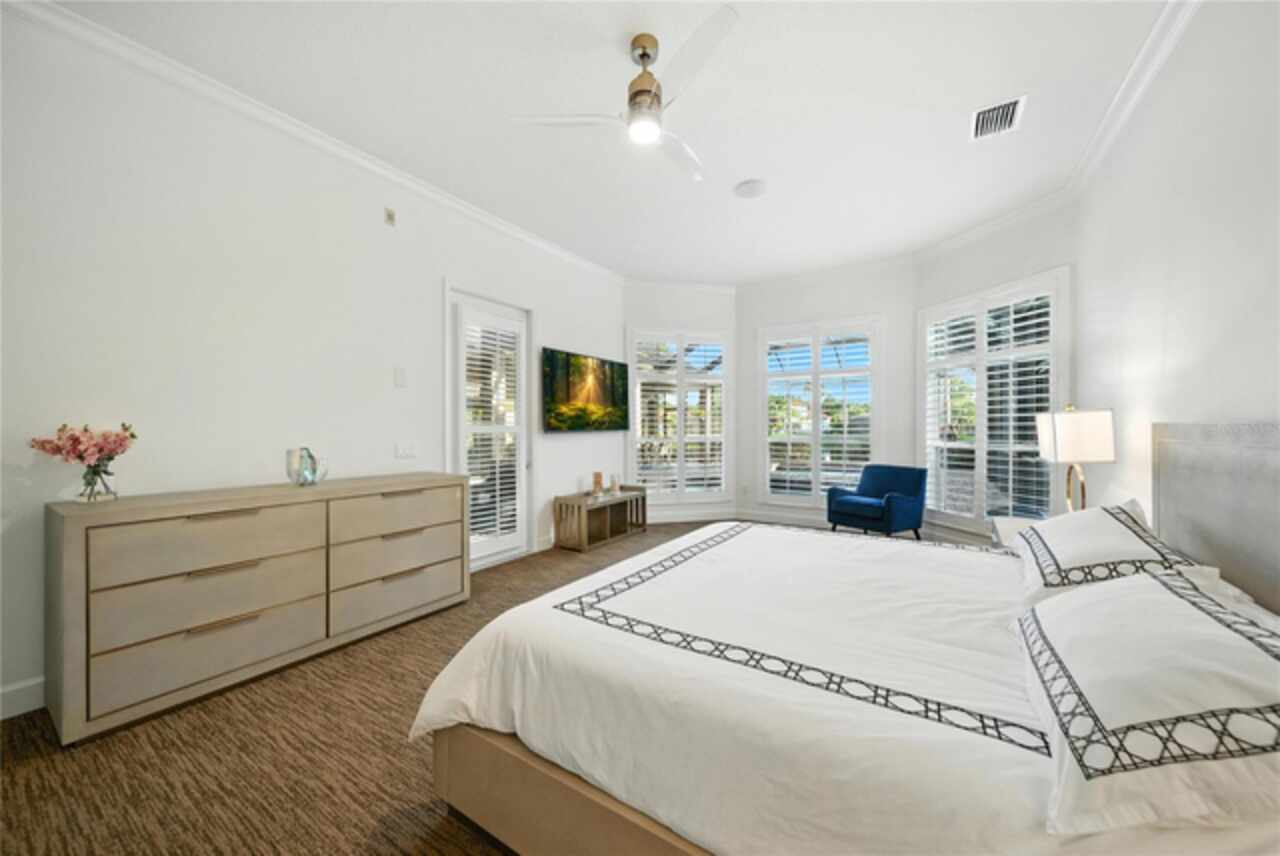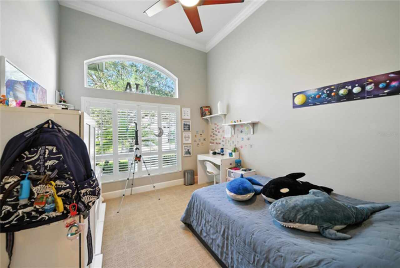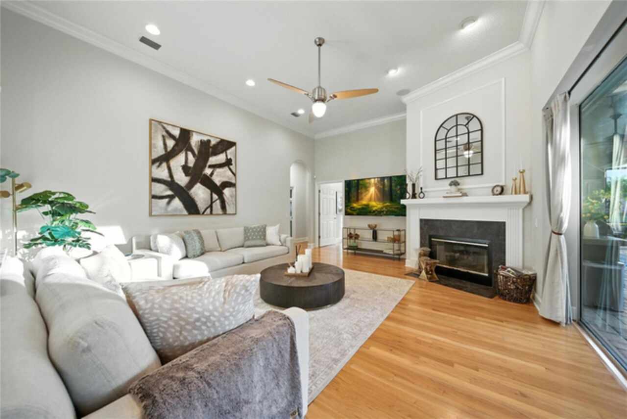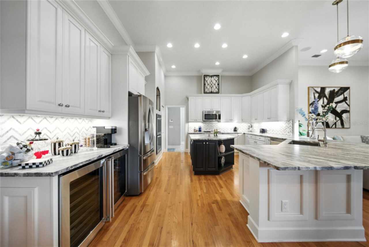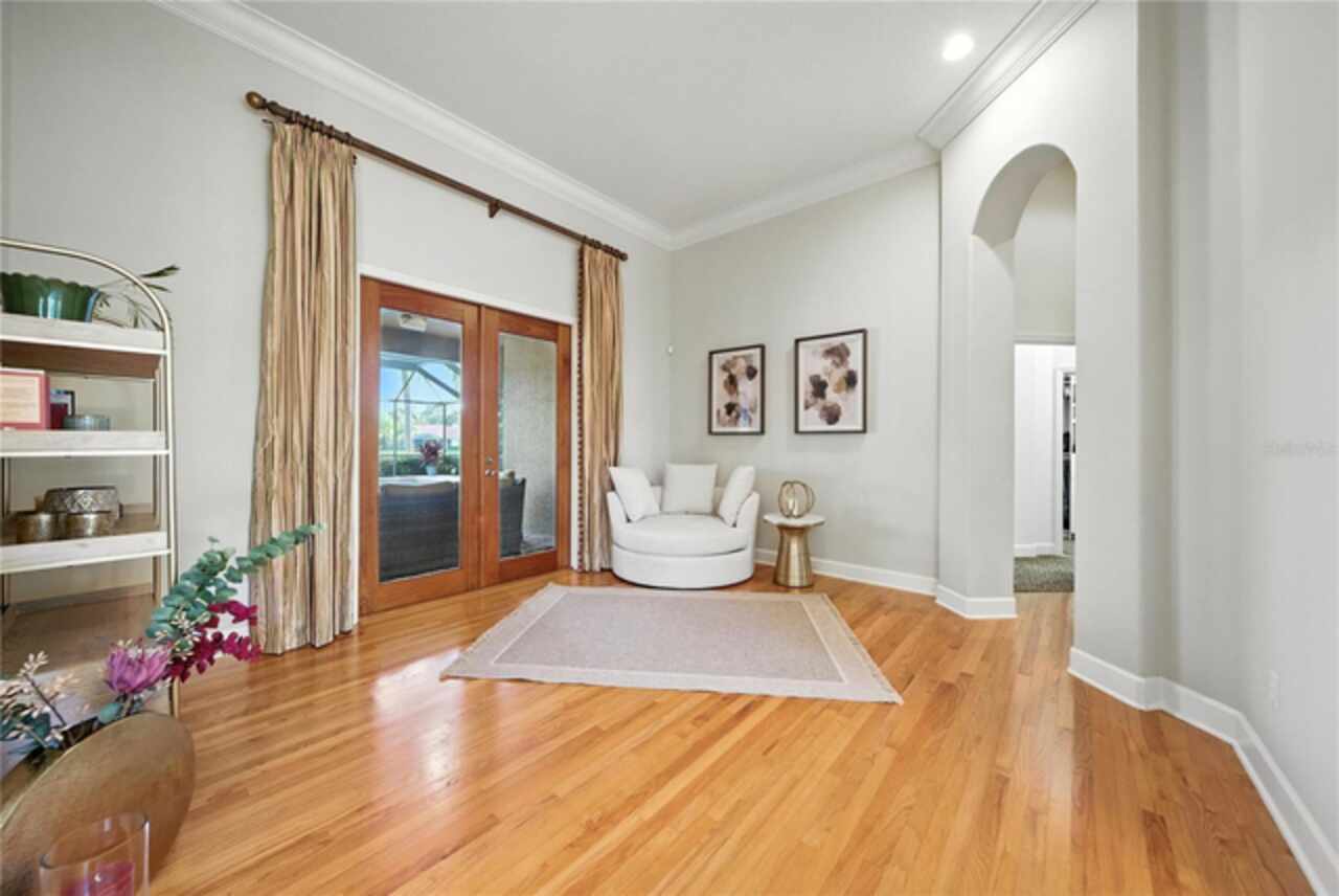 Exquisite Tampa Palms Estate in Gated Lancaster A residence of rare sophistication, this 4BR + Office, 3.5BA, 3CG executive pool home is perfectly sited on a tranquil pond in a quiet cul-de-sac. Every inch has been artfully renovated, showcasing soaring ceilings, rich hardwood floors, custom millwork, and captivating water views from nearly every room.The showpiece kitchen features an expansive leathered granite island, bespoke cabinetry with crown detail, gas cooktop, double ovens, twin wine chillers, and designer lighting. Spa-inspired baths are adorned with granite, elegant fixtures, and refined finishes. The split plan offers two guest rooms with shared bath, a private ensuite, and an indulgent master retreat with sitting area, custom closet, and a luxe bath with garden tub and walk-in shower. Outdoors, a pavered lanai frames a sparkling pool, perfect for alfresco entertaining. Recent upgrades include landscape lighting, AC (2021), water heater (2022), pool motor (2022), water softener, and a reimagined laundry.Residents enjoy Club Tampa Palms with pools, fitness center, spa, sauna, and more. Close to shopping, Moffitt, VA Medical Center, USF, gourmet restaurants, and easy commute to downtown via I-75 or I-275. Don’t miss viewing this exceptional, well maintained home!