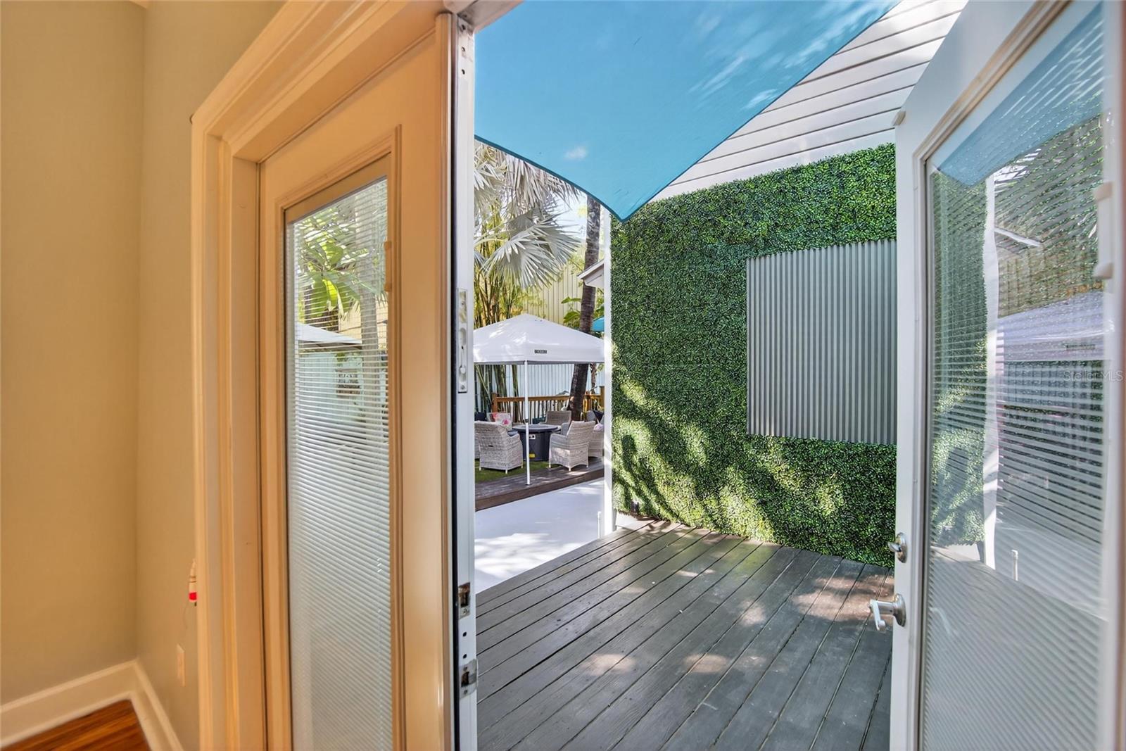 Awning(s), Balcony, French Doors, Lighting, Outdoor Shower, Storage