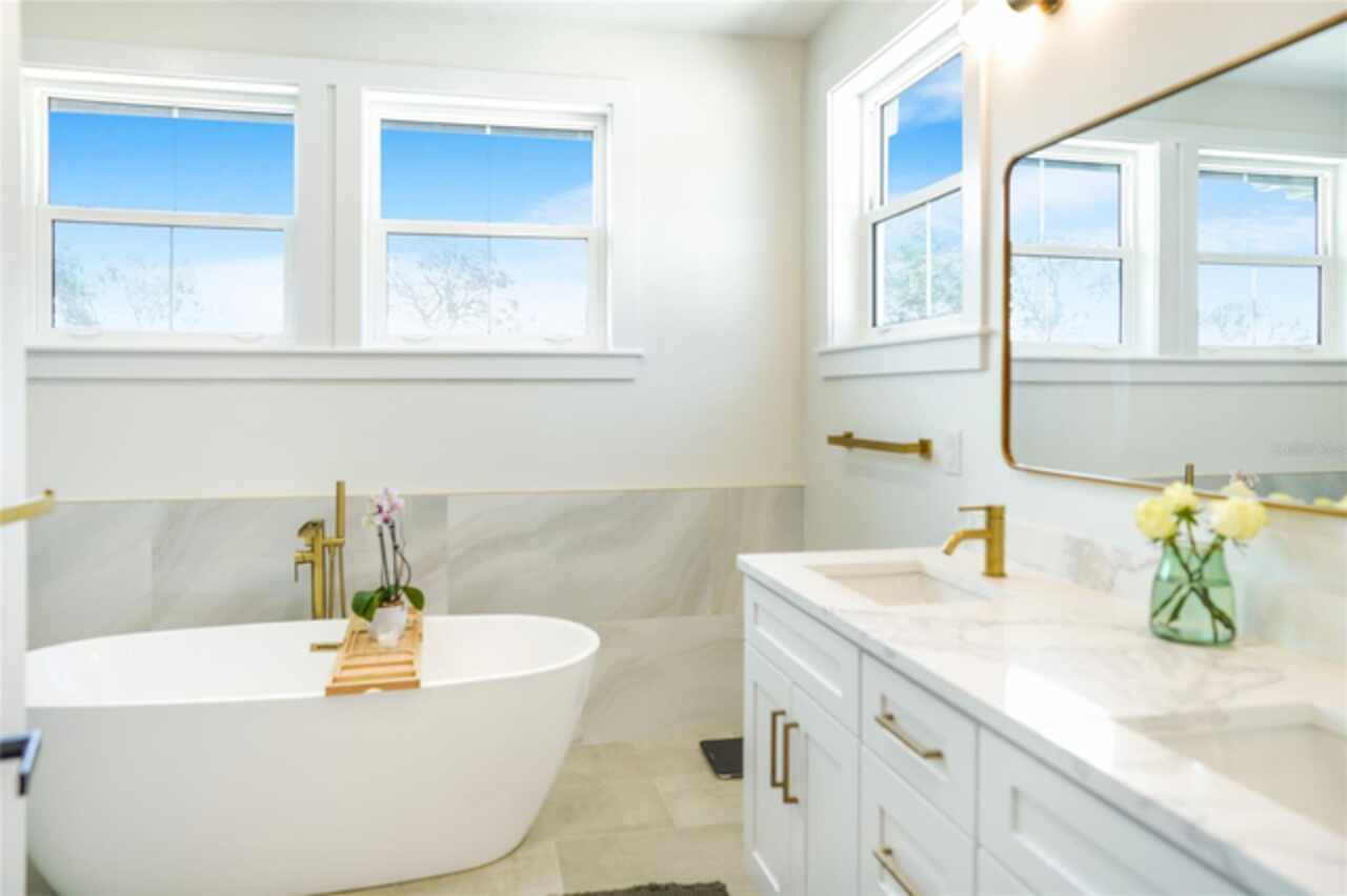 Stunning Nearly New Luxury Home – Your Dream Oasis Awaits! Welcome to this exquisite 5-bedroom, 3-bathroom home, meticulously designed and built in 2023. With 2, 980 sq ft of impeccable living space, this residence perfectly blends modern sophistication with timeless appeal. The open-concept layout effortlessly integrates the spacious living areas, creating a seamless flow for both everyday living and entertaining. Step into the heart of the home, where the sleek, high-end LG Cafe appliances elevate the gourmet kitchen, complemented by luxurious quartz countertops and custom cabinetry. Sunlight pours through expansive windows, illuminating the home’s elegant finishes and creating an inviting ambiance throughout. The 9-foot ceilings throughout add to the sense of openness, enhancing the home's airy, expansive feel. The master suite is a true sanctuary, featuring a spa-like en-suite bathroom with a soaking tub, a massive walk-in shower, and dual vanities, providing the perfect space to unwind. The walk-in closet offers ample storage, making it both a practical and luxurious retreat. Step outside to your private backyard oasis, designed for relaxation and low-maintenance luxury. The brand new pool features a 6-foot sun ledge, ideal for lounging and soaking up the Florida sunshine. The beautifully designed landscaping is a breeze to maintain, with fully turfed grounds in the backyard and shell accents in the front, creating a perfect, resort-style atmosphere. This home also includes an oversized three-car garage with additional space for a gym or extra storage. Enjoy the convenience of being just a short bike ride from downtown St. Petersburg, where you can explore charming shops, cafes, cultural attractions, and more. Located in a prime neighborhood with top schools, parks, and shopping nearby, this exceptional property offers both comfort and style in one of the most desirable areas of St. Petersburg. Experience modern living at its finest—schedule your private tour today and make this luxurious home yours!