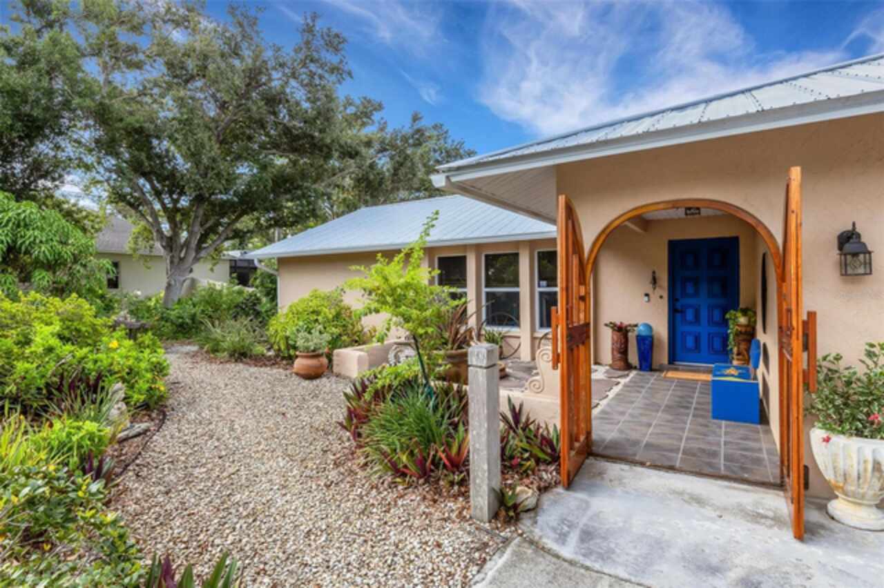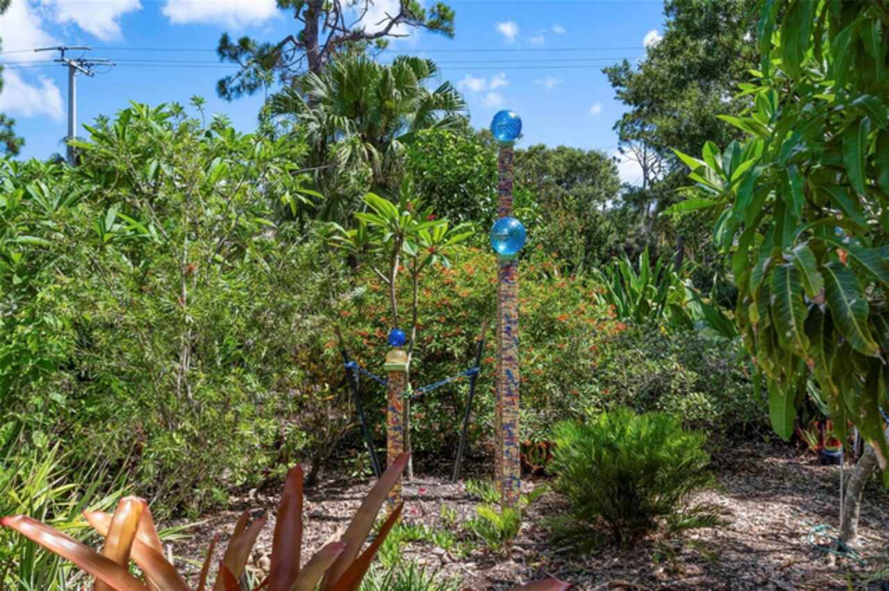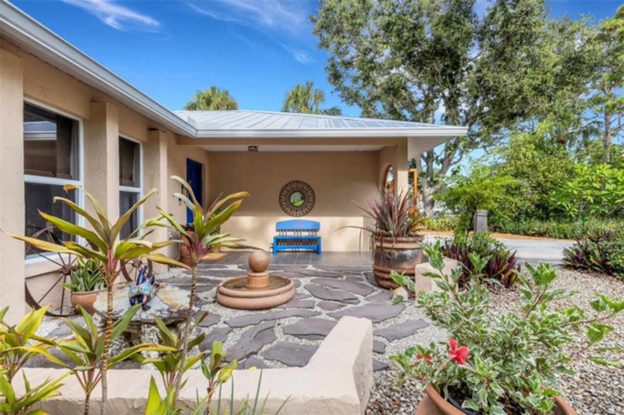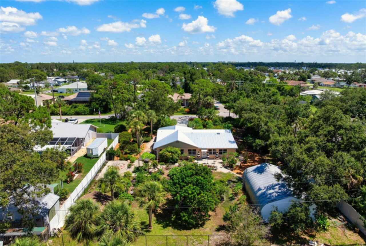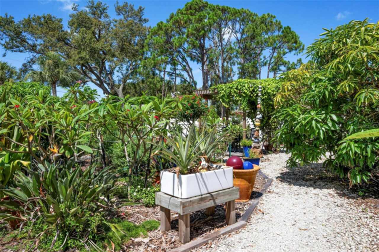 Under contract-accepting backup offers. Under Contract-Taking Back Up Offers. Nestled on the edge of Venice and Englewood, this property offers the perfect blend of both worlds. Enjoy the vibrant lifestyle of Venice, known for its beautiful beaches and charming downtown, while also relishing the serene, laid-back atmosphere of Englewood and Manasota Beach. With easy access to the best of both towns, this location truly provides the ideal setting for those seeking a coastal paradise. What more could you want? This award-winning, artist owned, charming 3 bedroom, 2 bath home is located just 1.5 miles from the stunning Manasota Key Beach and just a short jog of .4 miles to the South Venice Lemon Bay Preserve, perfect for hiking, biking and exploring Florida's natural beauty. Nestled in the highly desirable Manasota Gardens and in an X flood zone, this home offers peace of mind along with major upgrades already completed. New Metal Roof (2022), Connected to public sewer (2015), Updated electrical panel (2015), Water Heater in 2022, Washer and Dryer (2025) and new AC in 2022. The entire home has also been re-piped so no worries there! This is truly a tropical wonderland meticulously crafted by the homeowner with a true passion, offering a vastly fenced, yet low-maintenance backyard paradise. Towering mango trees-six in total offer sweet rewards alongside an impressive variety of edible delights including lychee, Key lime, sweet mandarin, black sapote, egg fruit, jaboticaba, and even pineapple plants. Bursting with vibrant flowering varieties and thoughtfully arranged greenery and flora, the grounds feel like your own private botanical garden, designed for beauty, serenity, and ease. This is more than landscaping, it is a living legacy. Do you need a woodworking shop, hobby space, or serious storage? For the hobbyist or handyman, you are going to love the massive 26' x 30' shop, previously designed for a professional woodworking artist! Perfect for projects, storage, or even your dream creative space. There is also an additional separate shed for all your gardening tools and equipment. Before entering this home, you are greeted by the soothing sounds of a quaint fountain in the courtyard, preparing you for the relaxing interior space. Inside the home, you will love the split bedroom floor plan, easy-care tile flooring, and ceiling fans throughout. The kitchen includes all stainless steel appliances, a large single basin sink and the layout is both functional and comfortable, ideal for everyday living or a seasonal escape. The expansive additional living space at the back of the home offers stunning views of your beautiful gardens and is designed to impress with its soaring ceilings, tile flooring, and an abundance of natural light.