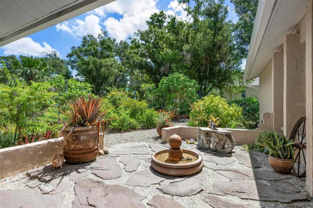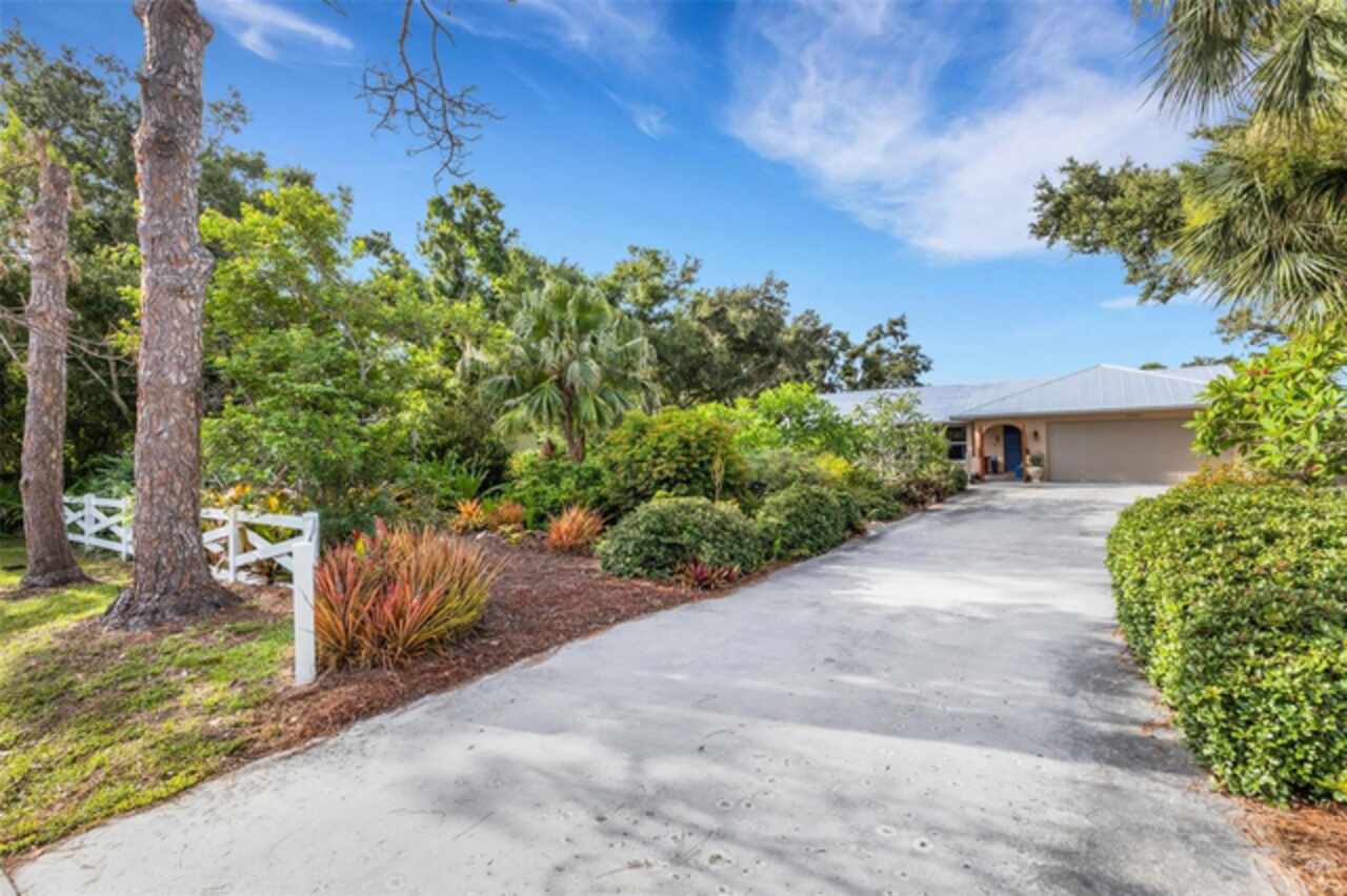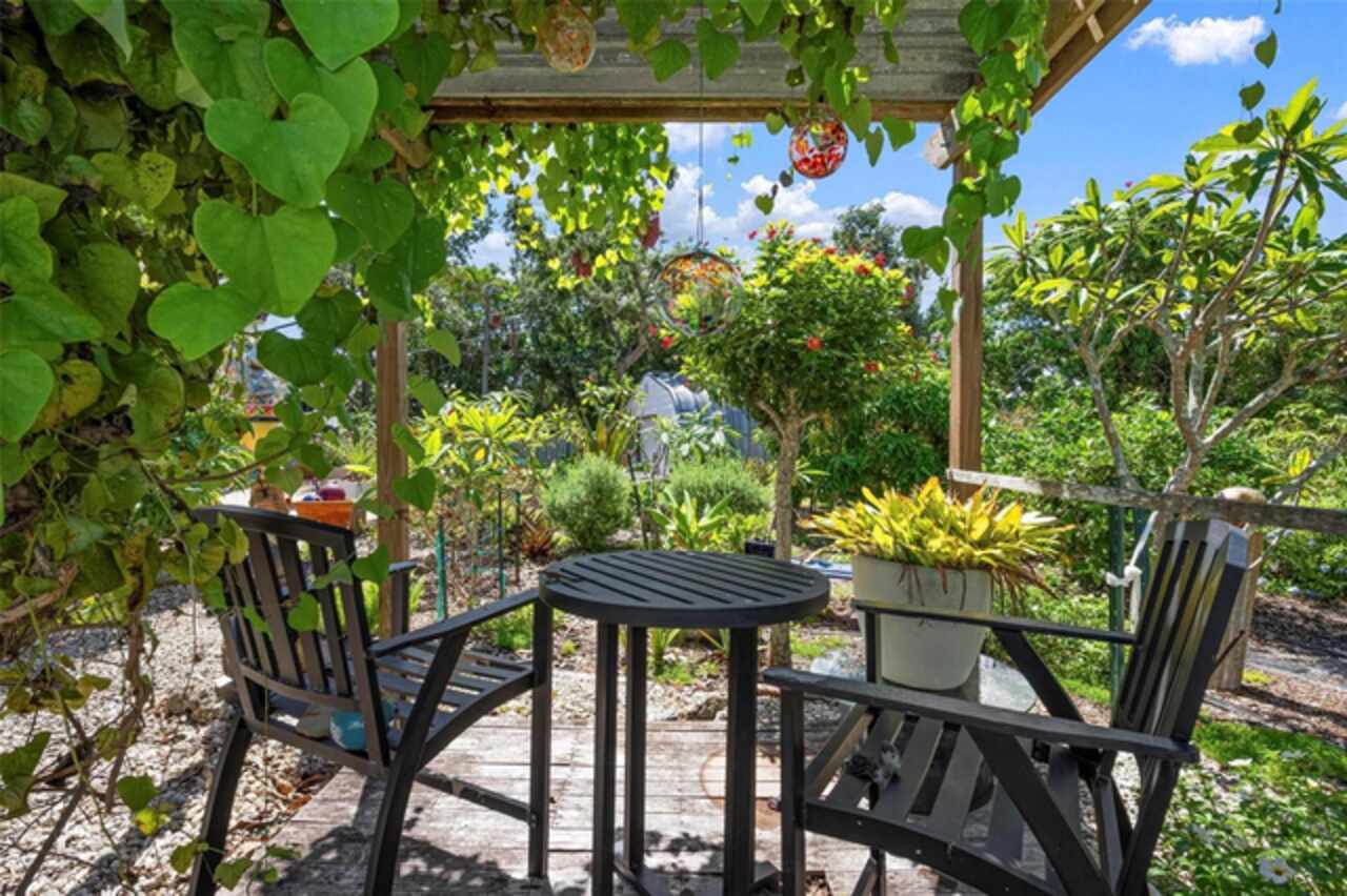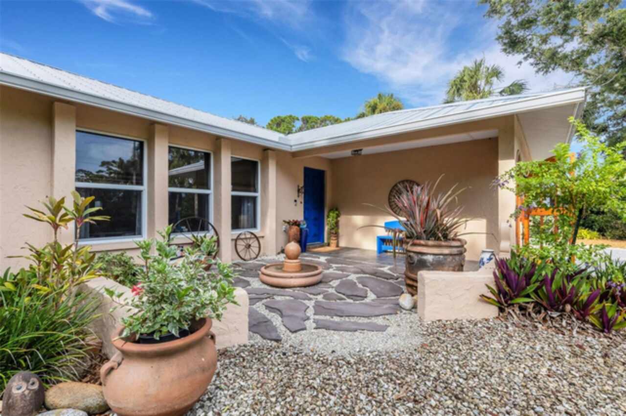 Under contract-accepting backup offers. Under Contract-Taking Back Up Offers. Nestled on the edge of Venice and Englewood, this property offers the perfect blend of both worlds. Enjoy the vibrant lifestyle of Venice, known for its beautiful beaches and charming downtown, while also relishing the serene, laid-back atmosphere of Englewood and Manasota Beach. With easy access to the best of both towns, this location truly provides the ideal setting for those seeking a coastal paradise. What more could you want? This award-winning, artist owned, charming 3 bedroom, 2 bath home is located just 1.5 miles from the stunning Manasota Key Beach and just a short jog of .4 miles to the South Venice Lemon Bay Preserve, perfect for hiking, biking and exploring Florida's natural beauty. Nestled in the highly desirable Manasota Gardens and in an X flood zone, this home offers peace of mind along with major upgrades already completed. New Metal Roof (2022), Connected to public sewer (2015), Updated electrical panel (2015), Water Heater in 2022, Washer and Dryer (2025) and new AC in 2022. The entire home has also been re-piped so no worries there! This is truly a tropical wonderland meticulously crafted by the homeowner with a true passion, offering a vastly fenced, yet low-maintenance backyard paradise. Towering mango trees-six in total offer sweet rewards alongside an impressive variety of edible delights including lychee, Key lime, sweet mandarin, black sapote, egg fruit, jaboticaba, and even pineapple plants. Bursting with vibrant flowering varieties and thoughtfully arranged greenery and flora, the grounds feel like your own private botanical garden, designed for beauty, serenity, and ease. This is more than landscaping, it is a living legacy. Do you need a woodworking shop, hobby space, or serious storage? For the hobbyist or handyman, you are going to love the massive 26' x 30' shop, previously designed for a professional woodworking artist! Perfect for projects, storage, or even your dream creative space. There is also an additional separate shed for all your gardening tools and equipment. Before entering this home, you are greeted by the soothing sounds of a quaint fountain in the courtyard, preparing you for the relaxing interior space. Inside the home, you will love the split bedroom floor plan, easy-care tile flooring, and ceiling fans throughout. The kitchen includes all stainless steel appliances, a large single basin sink and the layout is both functional and comfortable, ideal for everyday living or a seasonal escape. The expansive additional living space at the back of the home offers stunning views of your beautiful gardens and is designed to impress with its soaring ceilings, tile flooring, and an abundance of natural light.