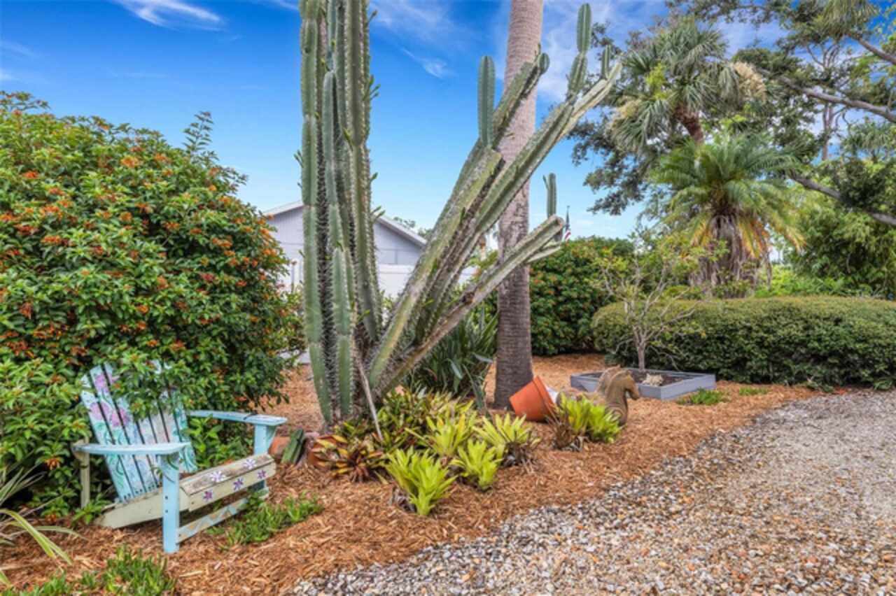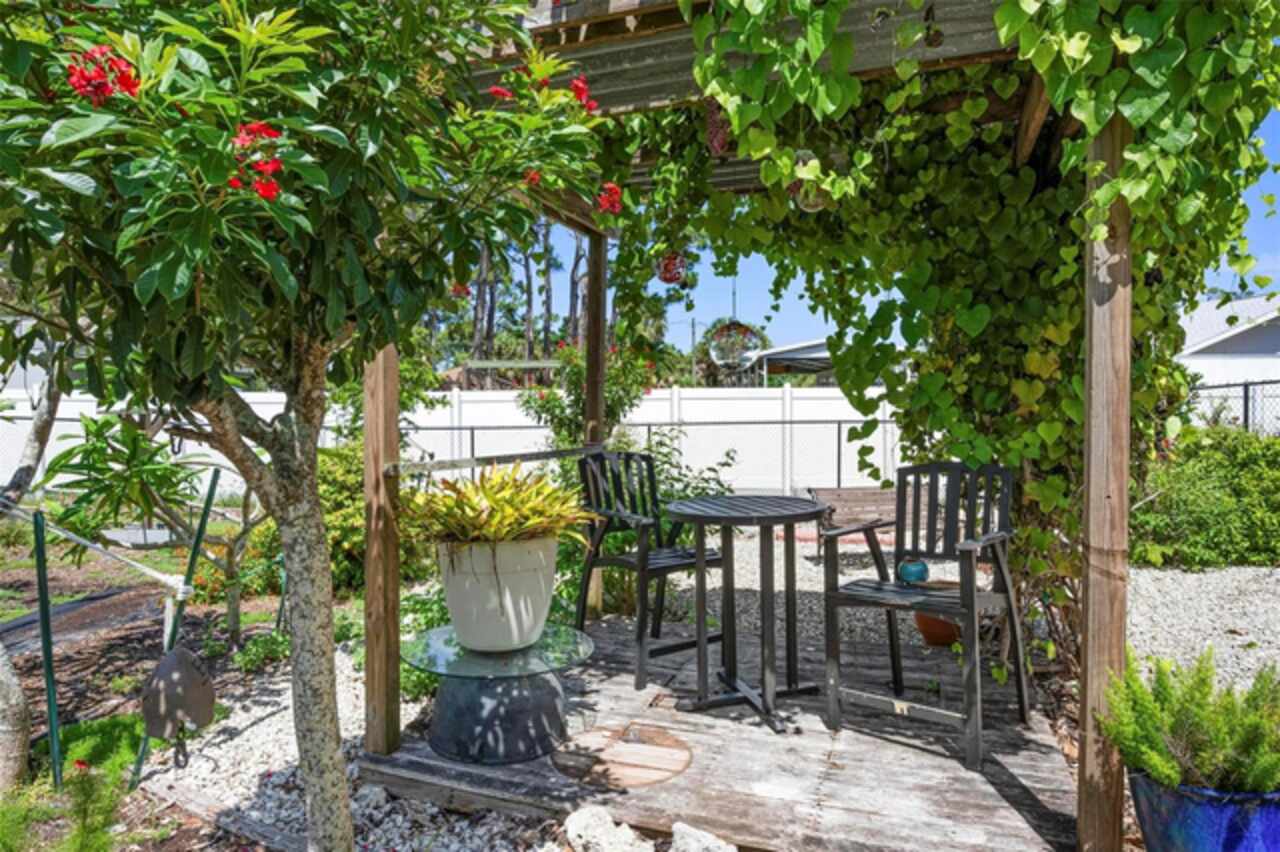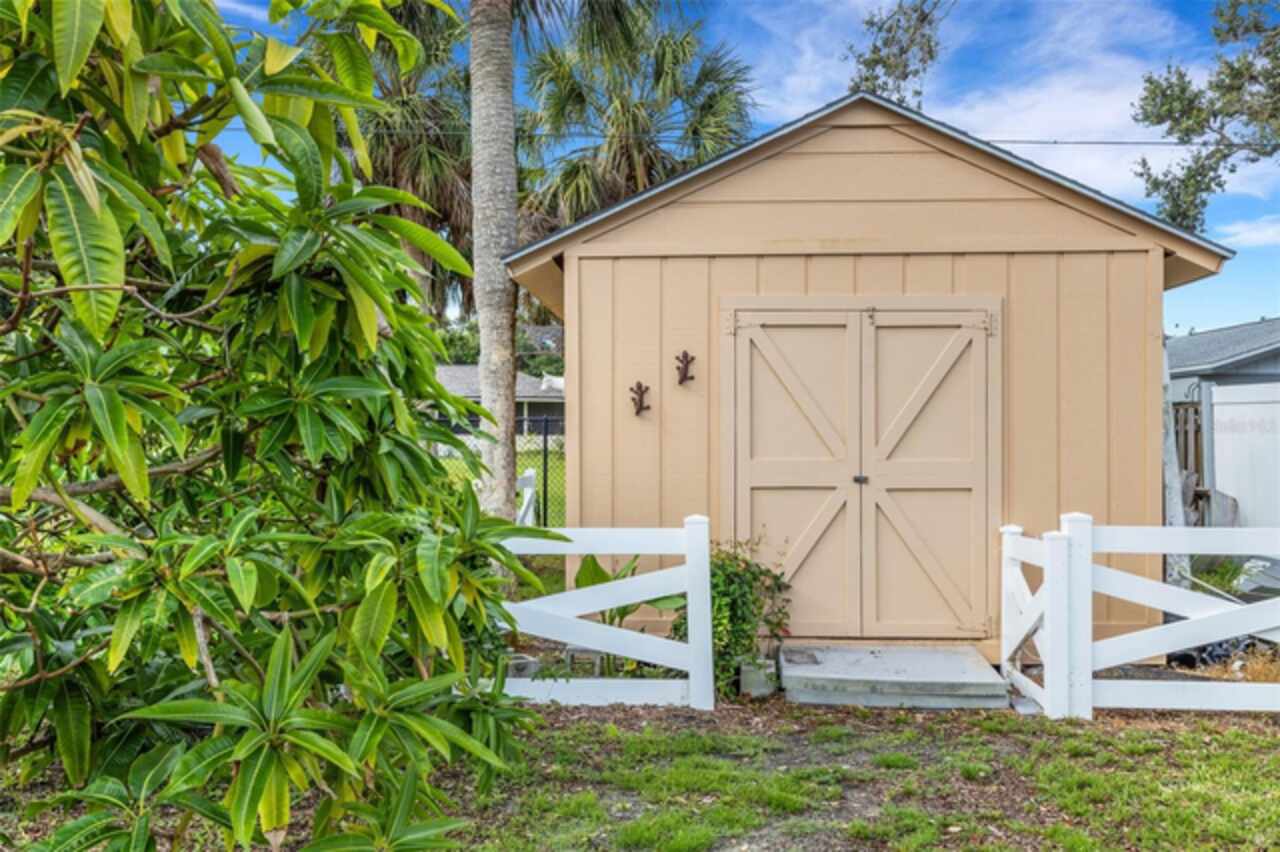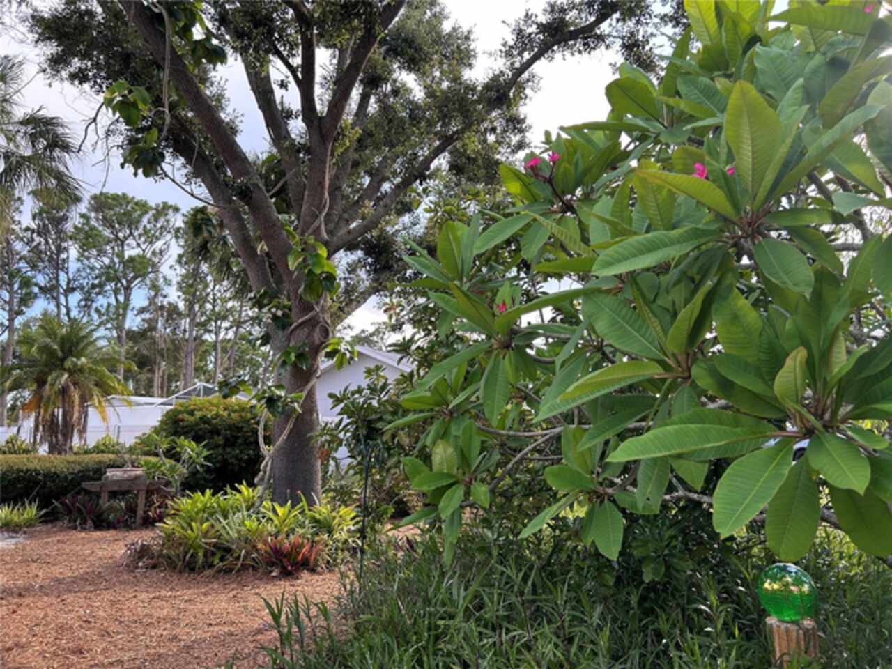 Under contract-accepting backup offers. Under Contract-Taking Back Up Offers. Nestled on the edge of Venice and Englewood, this property offers the perfect blend of both worlds. Enjoy the vibrant lifestyle of Venice, known for its beautiful beaches and charming downtown, while also relishing the serene, laid-back atmosphere of Englewood and Manasota Beach. With easy access to the best of both towns, this location truly provides the ideal setting for those seeking a coastal paradise. What more could you want? This award-winning, artist owned, charming 3 bedroom, 2 bath home is located just 1.5 miles from the stunning Manasota Key Beach and just a short jog of .4 miles to the South Venice Lemon Bay Preserve, perfect for hiking, biking and exploring Florida's natural beauty. Nestled in the highly desirable Manasota Gardens and in an X flood zone, this home offers peace of mind along with major upgrades already completed. New Metal Roof (2022), Connected to public sewer (2015), Updated electrical panel (2015), Water Heater in 2022, Washer and Dryer (2025) and new AC in 2022. The entire home has also been re-piped so no worries there! This is truly a tropical wonderland meticulously crafted by the homeowner with a true passion, offering a vastly fenced, yet low-maintenance backyard paradise. Towering mango trees-six in total offer sweet rewards alongside an impressive variety of edible delights including lychee, Key lime, sweet mandarin, black sapote, egg fruit, jaboticaba, and even pineapple plants. Bursting with vibrant flowering varieties and thoughtfully arranged greenery and flora, the grounds feel like your own private botanical garden, designed for beauty, serenity, and ease. This is more than landscaping, it is a living legacy. Do you need a woodworking shop, hobby space, or serious storage? For the hobbyist or handyman, you are going to love the massive 26' x 30' shop, previously designed for a professional woodworking artist! Perfect for projects, storage, or even your dream creative space. There is also an additional separate shed for all your gardening tools and equipment. Before entering this home, you are greeted by the soothing sounds of a quaint fountain in the courtyard, preparing you for the relaxing interior space. Inside the home, you will love the split bedroom floor plan, easy-care tile flooring, and ceiling fans throughout. The kitchen includes all stainless steel appliances, a large single basin sink and the layout is both functional and comfortable, ideal for everyday living or a seasonal escape. The expansive additional living space at the back of the home offers stunning views of your beautiful gardens and is designed to impress with its soaring ceilings, tile flooring, and an abundance of natural light.