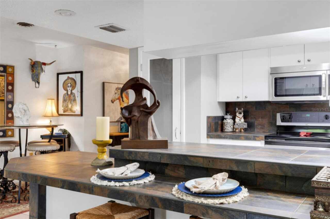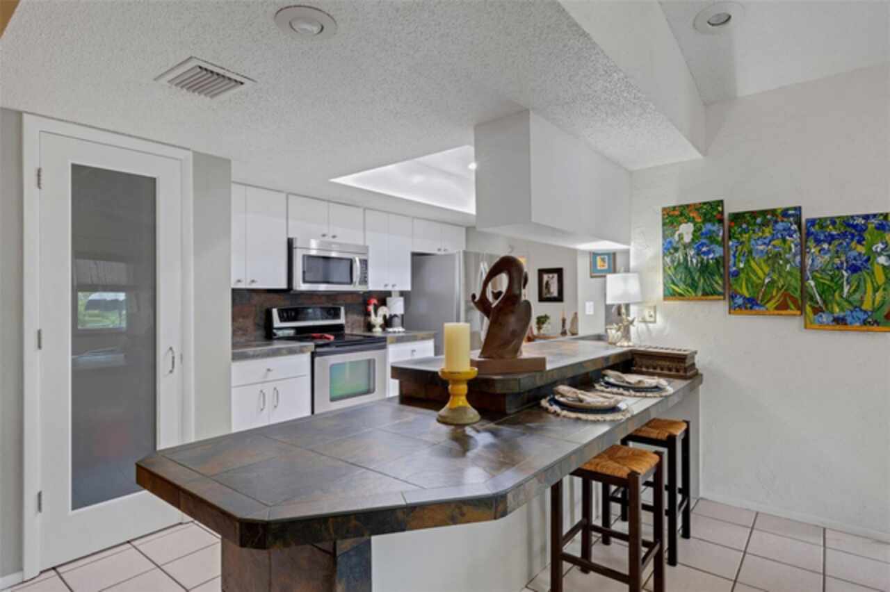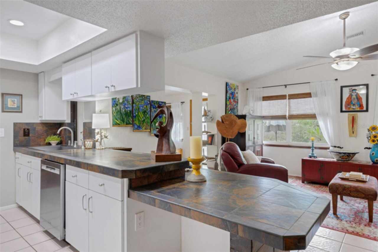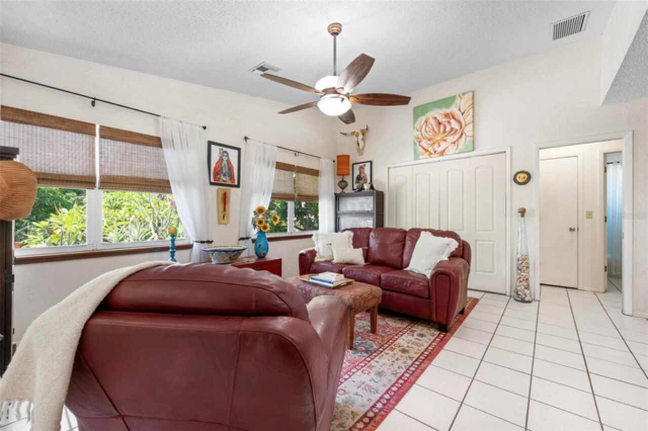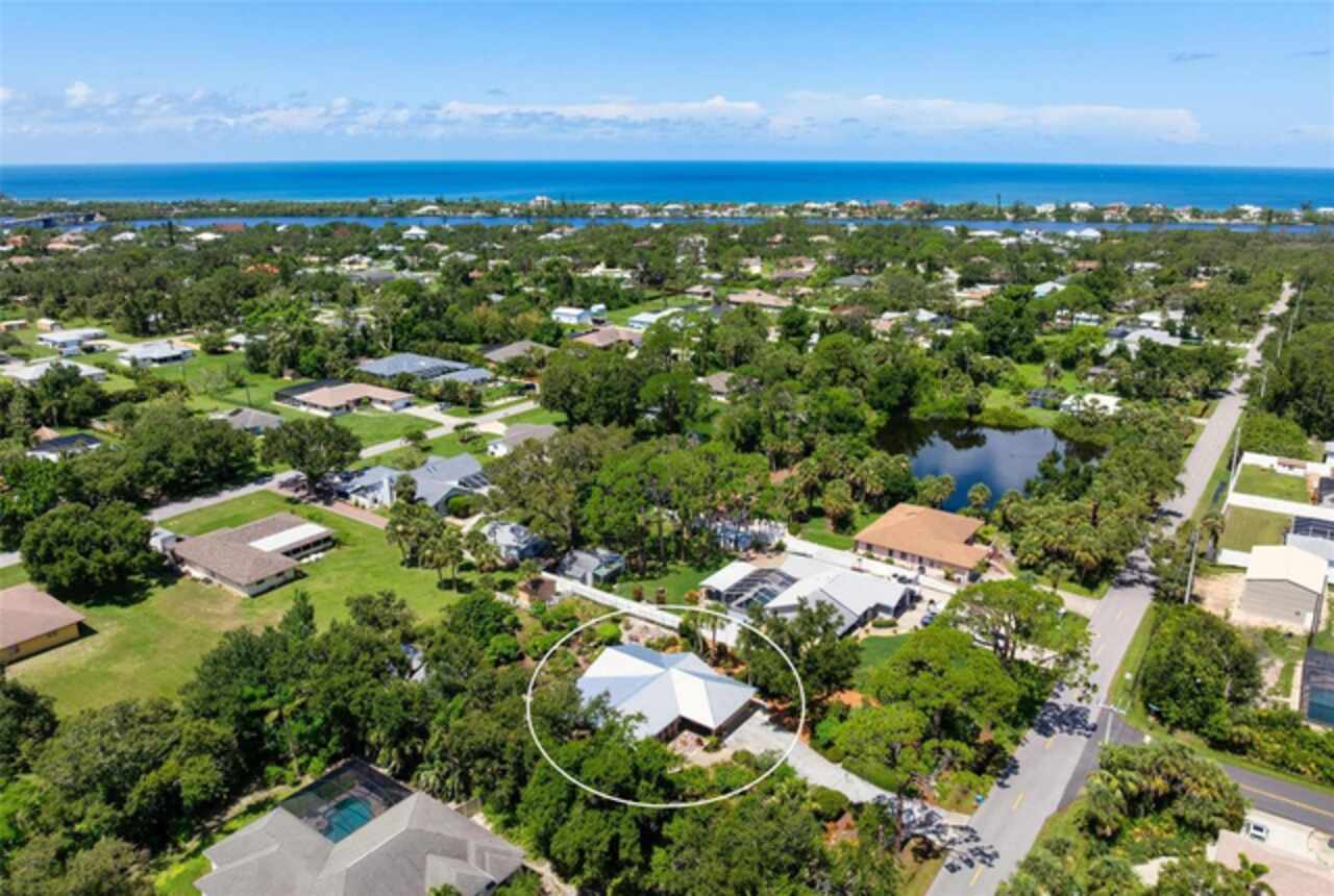 Under contract-accepting backup offers. Under Contract-Taking Back Up Offers. Nestled on the edge of Venice and Englewood, this property offers the perfect blend of both worlds. Enjoy the vibrant lifestyle of Venice, known for its beautiful beaches and charming downtown, while also relishing the serene, laid-back atmosphere of Englewood and Manasota Beach. With easy access to the best of both towns, this location truly provides the ideal setting for those seeking a coastal paradise. What more could you want? This award-winning, artist owned, charming 3 bedroom, 2 bath home is located just 1.5 miles from the stunning Manasota Key Beach and just a short jog of .4 miles to the South Venice Lemon Bay Preserve, perfect for hiking, biking and exploring Florida's natural beauty. Nestled in the highly desirable Manasota Gardens and in an X flood zone, this home offers peace of mind along with major upgrades already completed. New Metal Roof (2022), Connected to public sewer (2015), Updated electrical panel (2015), Water Heater in 2022, Washer and Dryer (2025) and new AC in 2022. The entire home has also been re-piped so no worries there! This is truly a tropical wonderland meticulously crafted by the homeowner with a true passion, offering a vastly fenced, yet low-maintenance backyard paradise. Towering mango trees-six in total offer sweet rewards alongside an impressive variety of edible delights including lychee, Key lime, sweet mandarin, black sapote, egg fruit, jaboticaba, and even pineapple plants. Bursting with vibrant flowering varieties and thoughtfully arranged greenery and flora, the grounds feel like your own private botanical garden, designed for beauty, serenity, and ease. This is more than landscaping, it is a living legacy. Do you need a woodworking shop, hobby space, or serious storage? For the hobbyist or handyman, you are going to love the massive 26' x 30' shop, previously designed for a professional woodworking artist! Perfect for projects, storage, or even your dream creative space. There is also an additional separate shed for all your gardening tools and equipment. Before entering this home, you are greeted by the soothing sounds of a quaint fountain in the courtyard, preparing you for the relaxing interior space. Inside the home, you will love the split bedroom floor plan, easy-care tile flooring, and ceiling fans throughout. The kitchen includes all stainless steel appliances, a large single basin sink and the layout is both functional and comfortable, ideal for everyday living or a seasonal escape. The expansive additional living space at the back of the home offers stunning views of your beautiful gardens and is designed to impress with its soaring ceilings, tile flooring, and an abundance of natural light.