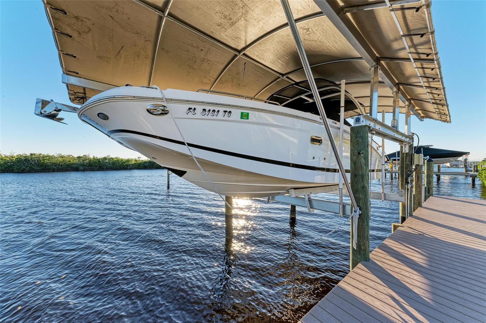 LUXURY FOUND in this GORGEOUS 2020 Built 3 Bedroom, 3 Bathroom + Den, 3 Car Garage WATERFRONT CUSTOM POOL HOME with PRIVATE LONG WATER VIEWS and DEEP CANAL ACCESS to Charlotte Harbor and the Gulf of Mexico. Enjoy beautiful curb appeal as you take in the NEW ROOF, upgraded landscaping, oversized driveway, and the on-trend exterior of this modern coastal home. Inside the custom glass front doors, you will be captivated by the long water views and open/airy interior of this open concept floor plan. Find 12' ceilings with boxed coffers or tray ceilings and custom trim/crown molding throughout and enjoy the 10' sliding glass doors that open to the lanai to bring those stunning sunset views inside. The gourmet kitchen is open and connected to the massive living room, with a large island, a separate bar area with extra cabinetry including lighted glass front upper cabinets, under cabinet lighting, and extra storage. Off the back side of the kitchen is a spacious pantry and mud room that connects to the oversized 3 car garage with epoxy floor, generator plug connection, sink, extra storage, and upgraded lighting. On the other side of the kitchen, find a large dining room with sliding glass doors to the summer kitchen/oudoor bar area with additional seating. On the left side of the home, two guest bedrooms with large walk-in closets await, with one guest bathroom in the hallway area for convenience and a second guest bathroom en-suite to the 3rd bedroom, with direct pool access, as well. Off the other side of the great room, find a large office/den/flex space, and a large primary suite with sliding door access to the lanai/pool/spa, with a stunning en-suite bathroom with large shower, spacious walk-in closet with custom cabinetry, and connection to the centrally located laundry room with extra cabinetry and storage. Outside on the lanai, find yourself captivated by the oversized heated saltwater pool with sun shelf and HUGE circular spa with waterfall tile. With separate seating areas under cover, that also have additional protection from storms with Kevlar roll down hurricane shutters, this extended space is ideal! Farther outside the lanai, the paver walkway connects to the new large 30' dock with Trex surface, covered boat lift with lighting, and great guest dockage. This home has it all, with extra sidewalks around the side of the home to the driveway, a well for irrigation/landscape, upgraded plantings, 90' of waterfrontage with a beautiful SOUTHWESTERN EXPOSURE, and has transferrable flood insurance currently only $1187/year! Nearby to great shopping, restaurants, beaches, parks, golf, and more, this home is ideal for enjoying your imagined SWFL lifestyle, so schedule your showing today! Furniture and boat can be made available separately! BE SURE TO CLICK THE FULL VIRTUAL TOUR LINKS FOR DETAILS
