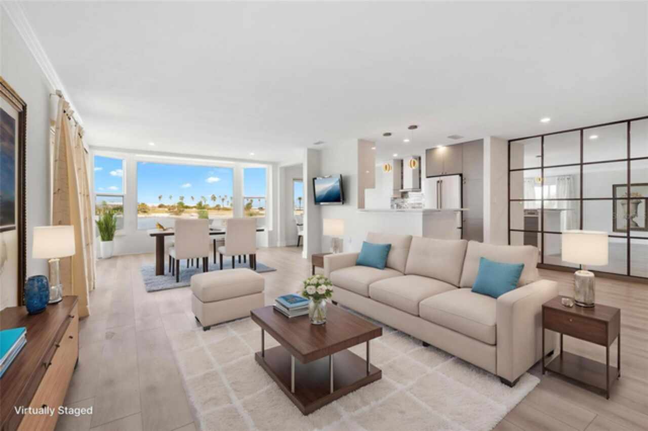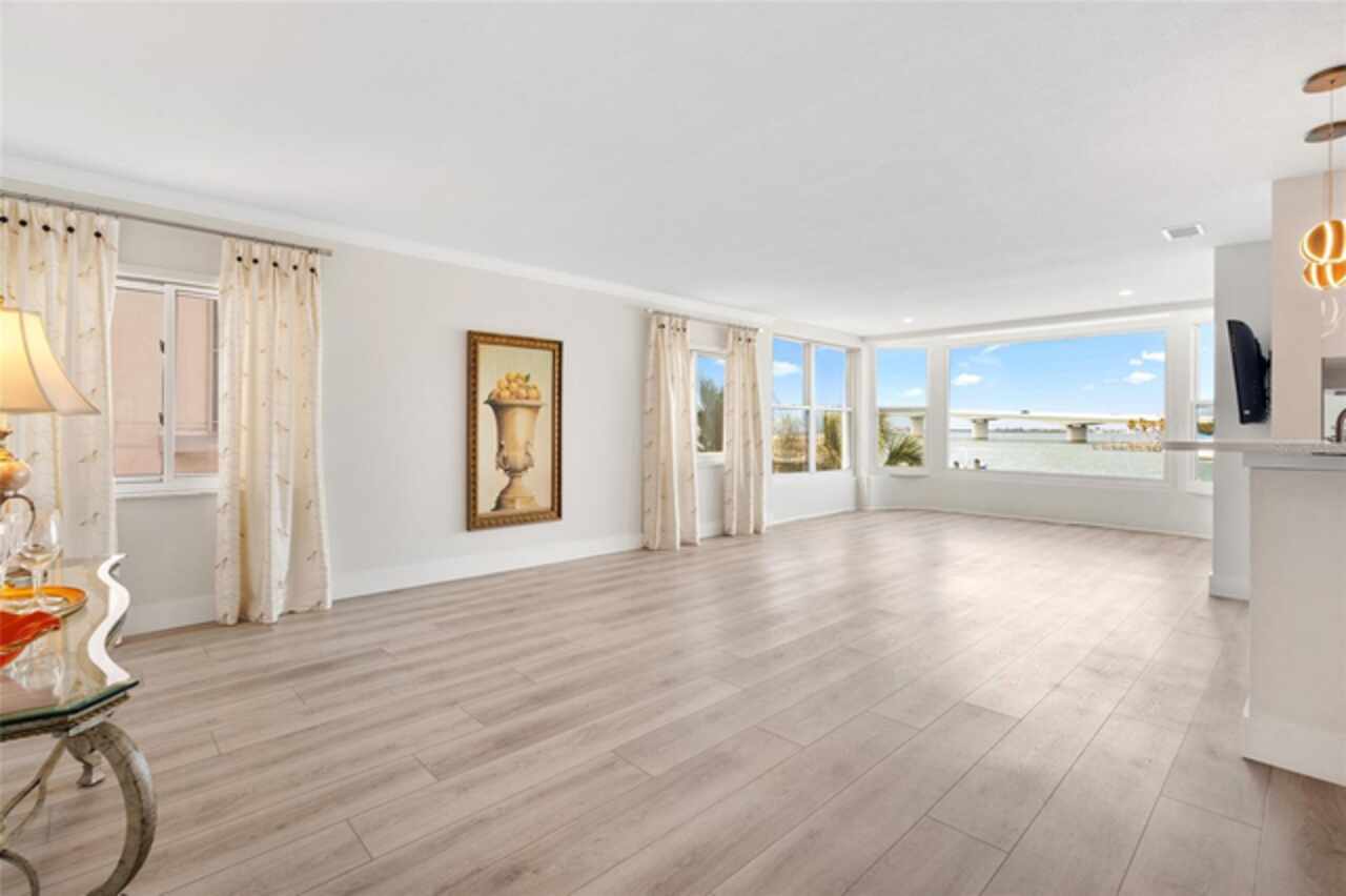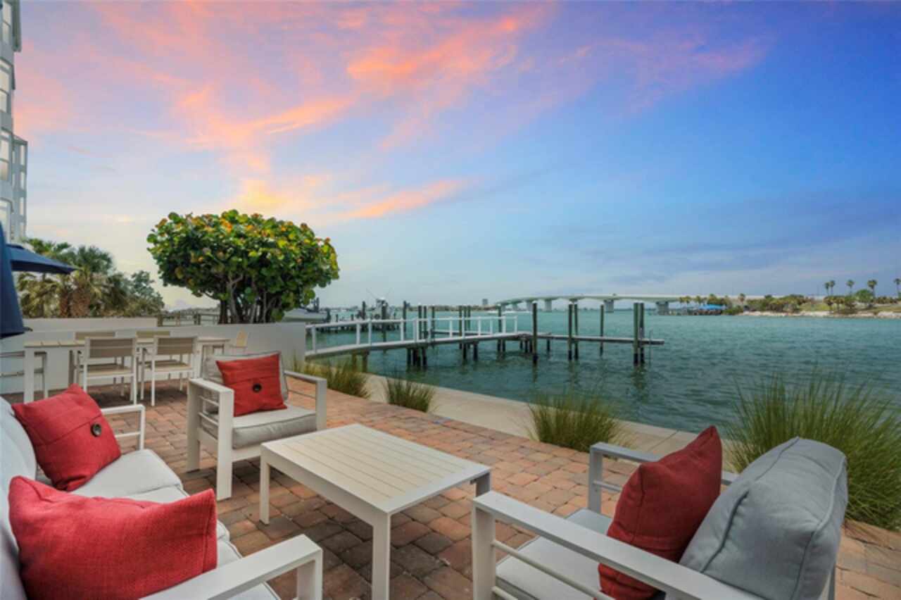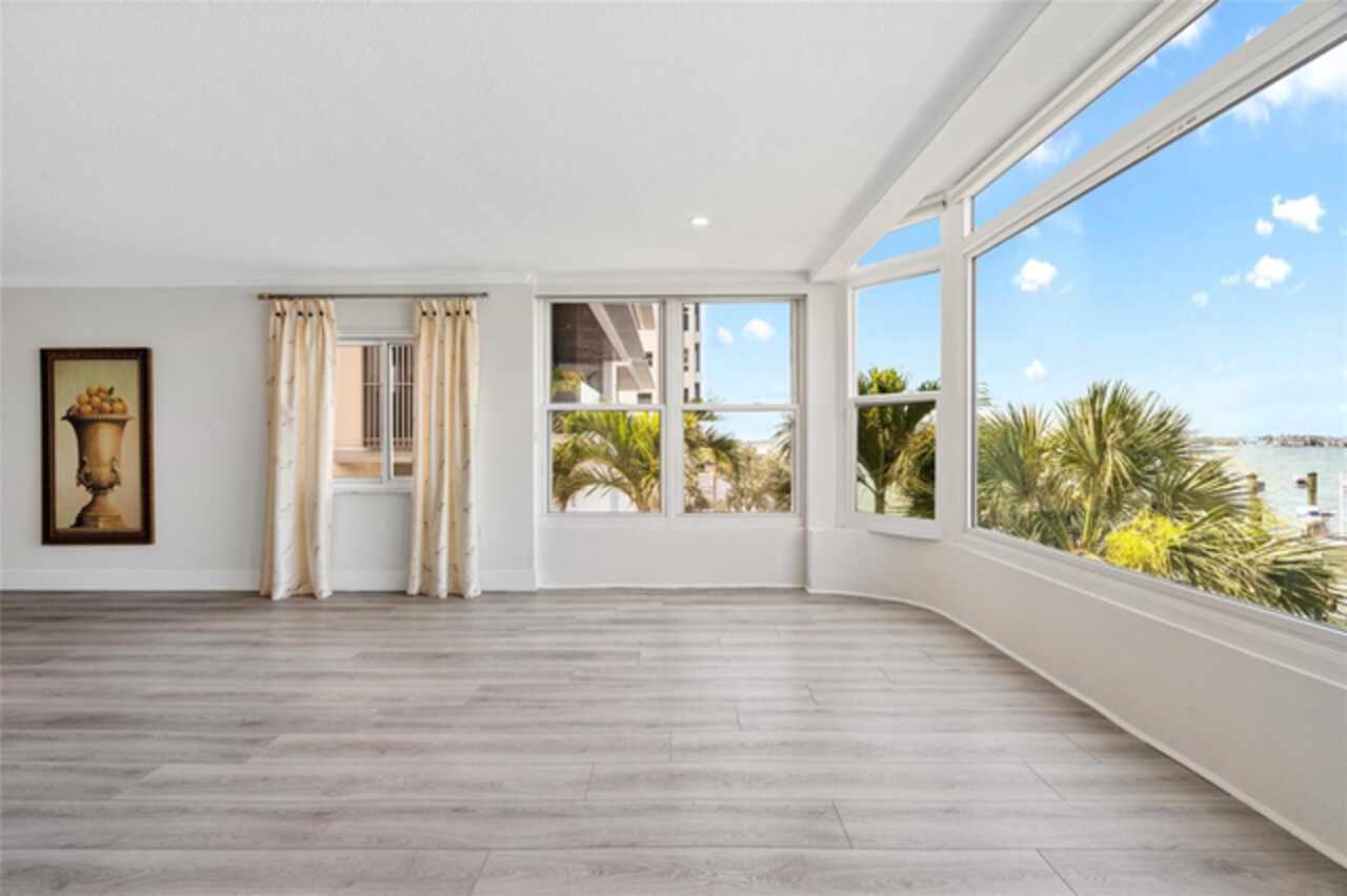 One or more photo(s) has been virtually staged. A rare jewel on Sarasota Bay—where panoramic views, timeless design, and downtown convenience converge, 174 Golden Gate Point #21 offers an exceptional opportunity for waterfront living in Sarasota. Perfectly positioned across from the Ritz-Carlton and within walking distance to the Yacht Club, Bayfront Park, and Sarasota’s cultural district, this residence blends the serenity of the bay with the vibrancy of downtown. Golden Gate Point is a private peninsula reserved solely for residences—no retail, no noise—just a peaceful setting surrounded by water. It provides the sense of floating above Sarasota Bay while remaining steps from world-class dining, shopping, and entertainment. For boaters, a day dock at the property is currently being renovated to provide even more convenience and access to the water. An entrance that sets the tone—this home begins with a private open-air verandah entrance, a spacious landing large enough for outdoor furniture. Whether for morning coffee or evening relaxation, this unique “front porch” style entry adds a rare dimension of charm and outdoor living to condominium life. Interiors that inspire—situated on the second floor of an intimate waterfront building, the fully renovated two-bedroom, two-bath residence features direct west-facing views of Sarasota Bay, the John Ringling Bridge, and the skyline of St. Armands and Lido Key. Sunsets fill the living and dining areas with golden light, creating an ever-changing backdrop. Inside, wide-plank luxury vinyl floors, crown molding, impact-rated bay windows, and recessed LED lighting combine to create a space that is both modern and inviting. Bedrooms and baths designed for retreat—the primary suite serves as a quiet retreat with a spa-style soaking tub, updated vanity with designer details, and abundant natural light. The second bedroom and bathroom are equally well-appointed, offering flexibility for guests or a home office overlooking the water. Thoughtful updates and peace of mind—this residence is equipped with a 2021 HVAC system featuring UV air purification and a 2021 water heater with booster. The building recently underwent an $800, 000 modernization that included new exterior paint, refreshed landscaping, and repaved parking, with all improvements fully funded. The property also successfully completed its Milestone Inspection in 2023. A lifestyle without comparison—Golden Gate Point is currently undergoing a city-led beautification project, further enhancing one of Sarasota’s most distinctive neighborhoods. With walkability to the marina, Bayfront Park, theaters, restaurants, and the cultural heart of downtown, residents enjoy the perfect combination of waterfront tranquility and urban convenience. 174 Golden Gate Point #21 represents an opportunity to enjoy Sarasota living at its finest—an intimate bayfront residence with timeless updates, modern comforts, and an unmatched location.