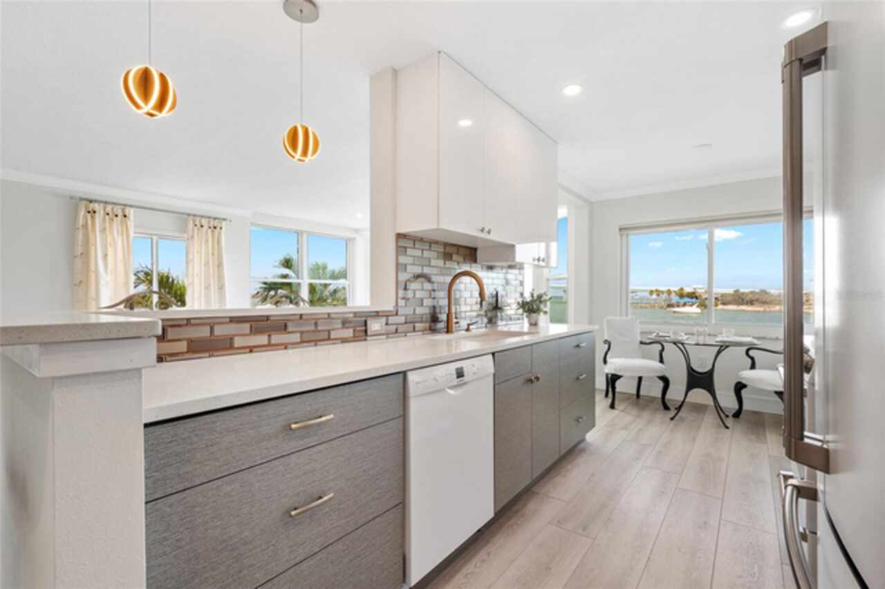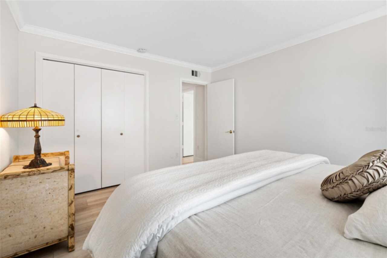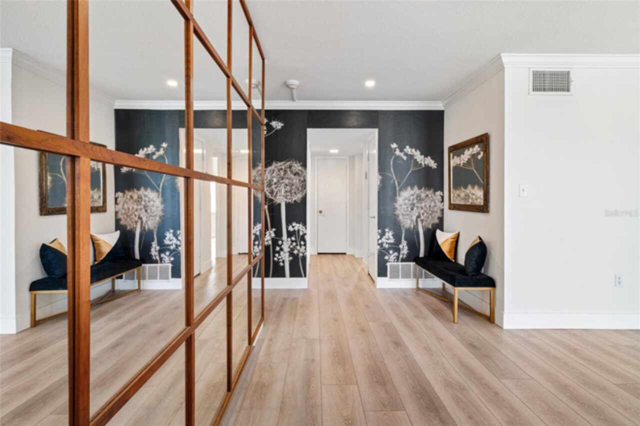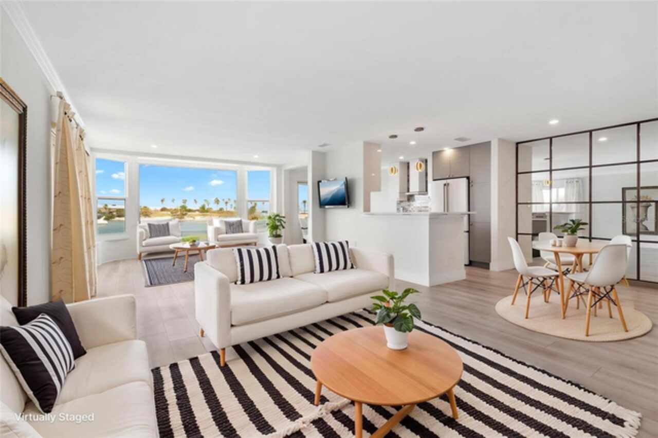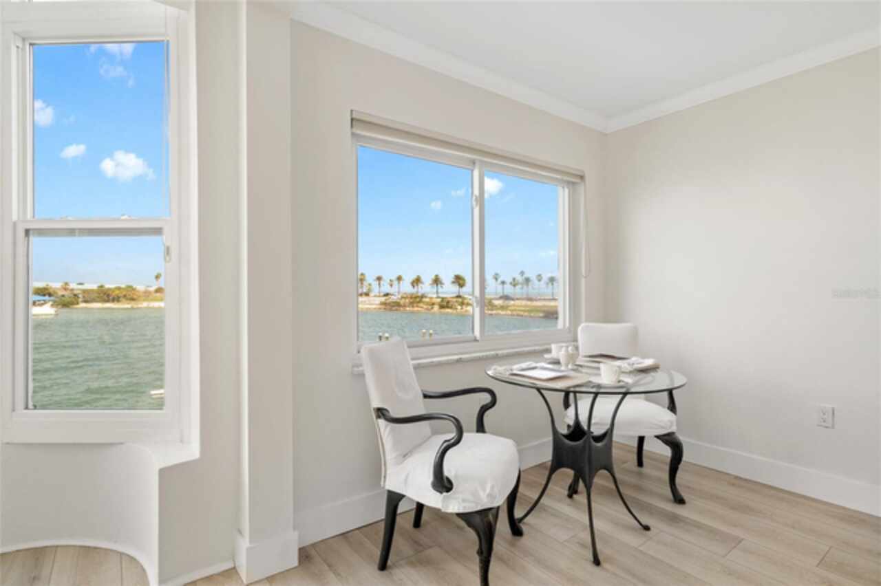 One or more photo(s) has been virtually staged. A rare jewel on Sarasota Bay—where panoramic views, timeless design, and downtown convenience converge, 174 Golden Gate Point #21 offers an exceptional opportunity for waterfront living in Sarasota. Perfectly positioned across from the Ritz-Carlton and within walking distance to the Yacht Club, Bayfront Park, and Sarasota’s cultural district, this residence blends the serenity of the bay with the vibrancy of downtown. Golden Gate Point is a private peninsula reserved solely for residences—no retail, no noise—just a peaceful setting surrounded by water. It provides the sense of floating above Sarasota Bay while remaining steps from world-class dining, shopping, and entertainment. For boaters, a day dock at the property is currently being renovated to provide even more convenience and access to the water. An entrance that sets the tone—this home begins with a private open-air verandah entrance, a spacious landing large enough for outdoor furniture. Whether for morning coffee or evening relaxation, this unique “front porch” style entry adds a rare dimension of charm and outdoor living to condominium life. Interiors that inspire—situated on the second floor of an intimate waterfront building, the fully renovated two-bedroom, two-bath residence features direct west-facing views of Sarasota Bay, the John Ringling Bridge, and the skyline of St. Armands and Lido Key. Sunsets fill the living and dining areas with golden light, creating an ever-changing backdrop. Inside, wide-plank luxury vinyl floors, crown molding, impact-rated bay windows, and recessed LED lighting combine to create a space that is both modern and inviting. Bedrooms and baths designed for retreat—the primary suite serves as a quiet retreat with a spa-style soaking tub, updated vanity with designer details, and abundant natural light. The second bedroom and bathroom are equally well-appointed, offering flexibility for guests or a home office overlooking the water. Thoughtful updates and peace of mind—this residence is equipped with a 2021 HVAC system featuring UV air purification and a 2021 water heater with booster. The building recently underwent an $800, 000 modernization that included new exterior paint, refreshed landscaping, and repaved parking, with all improvements fully funded. The property also successfully completed its Milestone Inspection in 2023. A lifestyle without comparison—Golden Gate Point is currently undergoing a city-led beautification project, further enhancing one of Sarasota’s most distinctive neighborhoods. With walkability to the marina, Bayfront Park, theaters, restaurants, and the cultural heart of downtown, residents enjoy the perfect combination of waterfront tranquility and urban convenience. 174 Golden Gate Point #21 represents an opportunity to enjoy Sarasota living at its finest—an intimate bayfront residence with timeless updates, modern comforts, and an unmatched location.