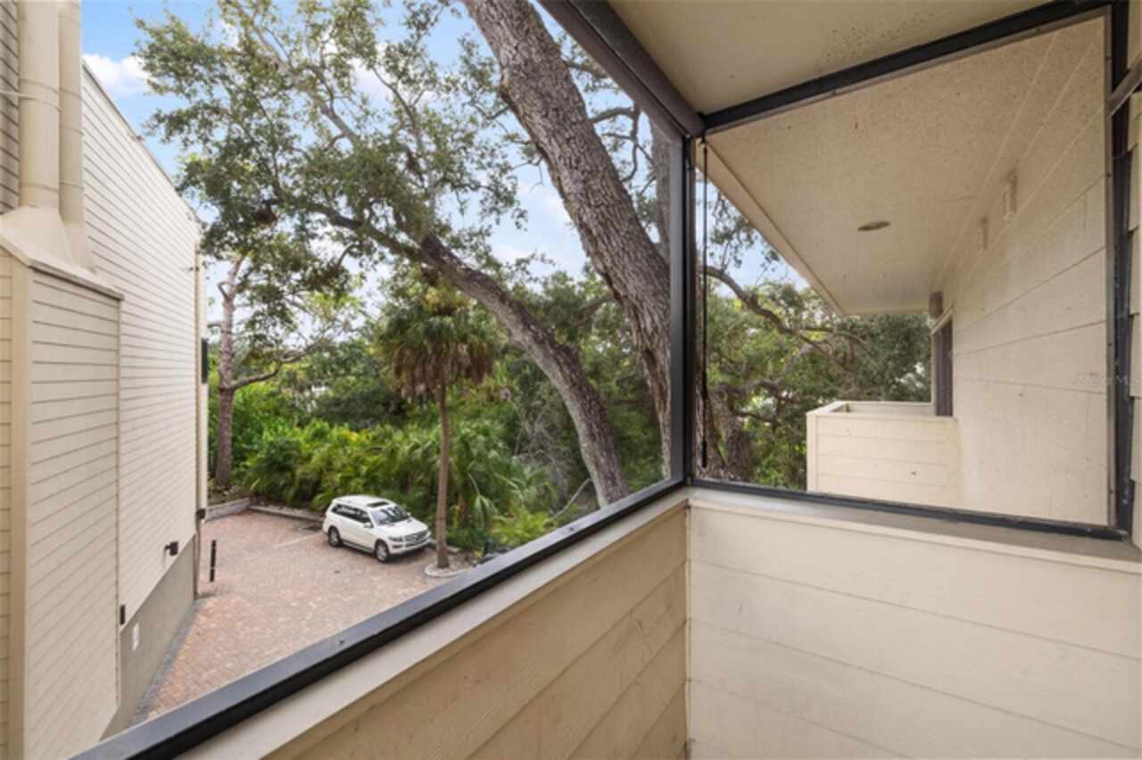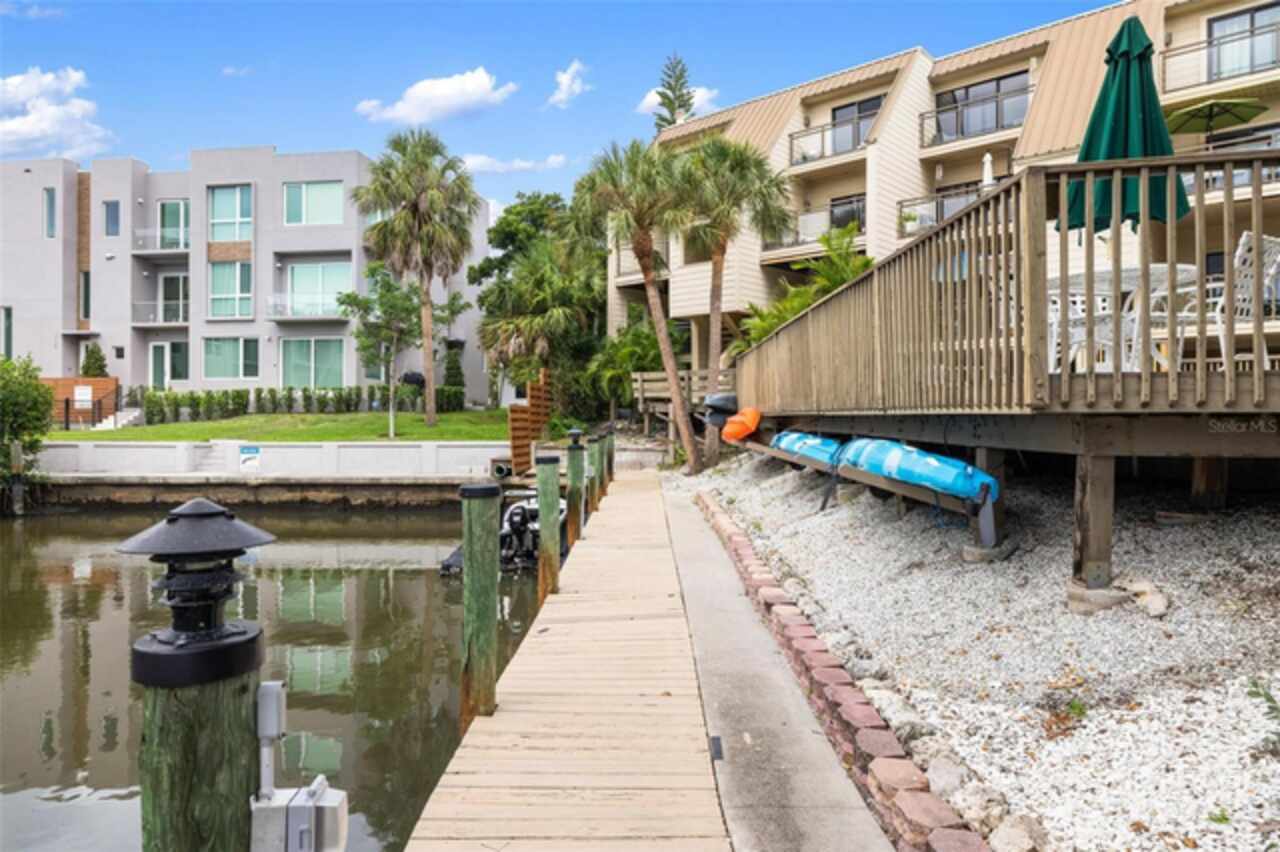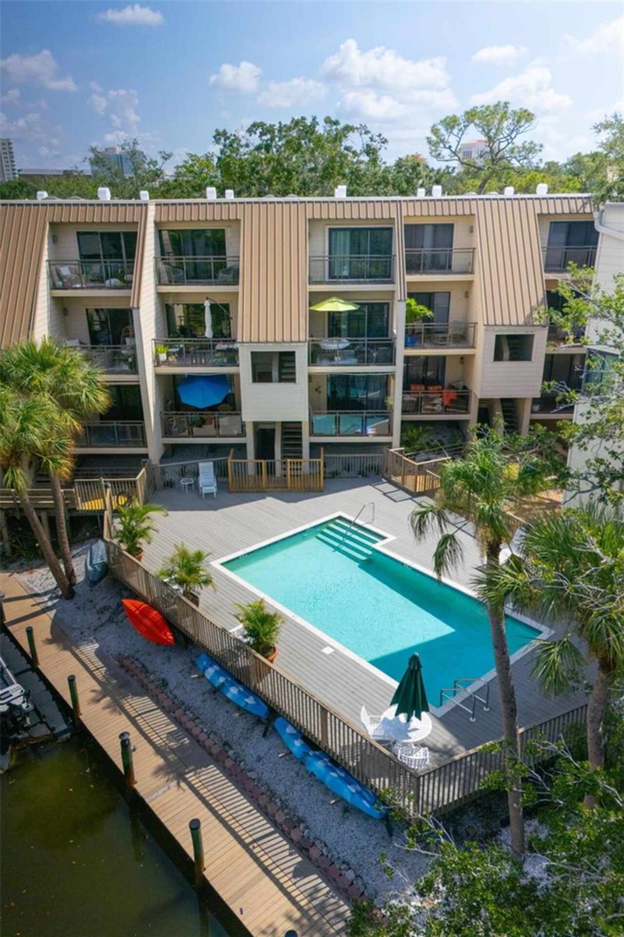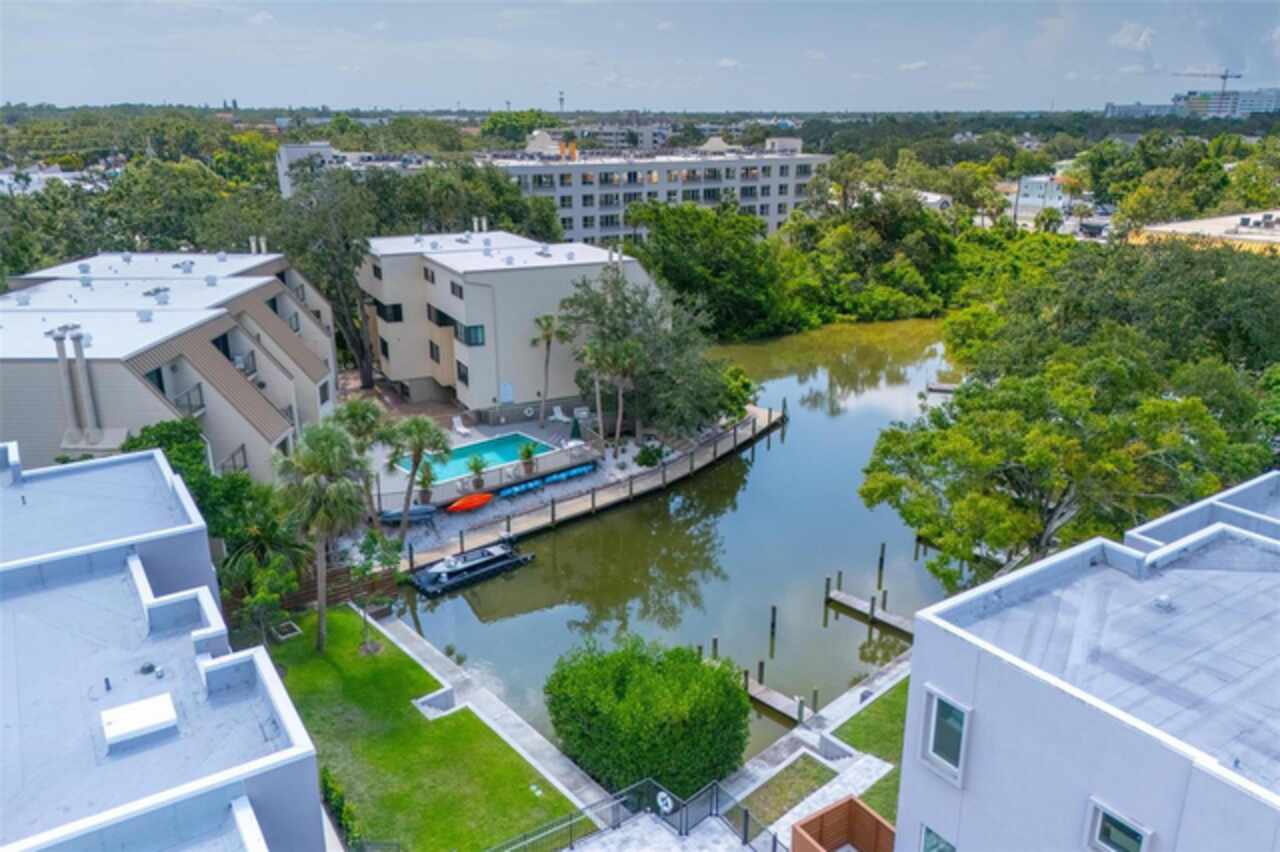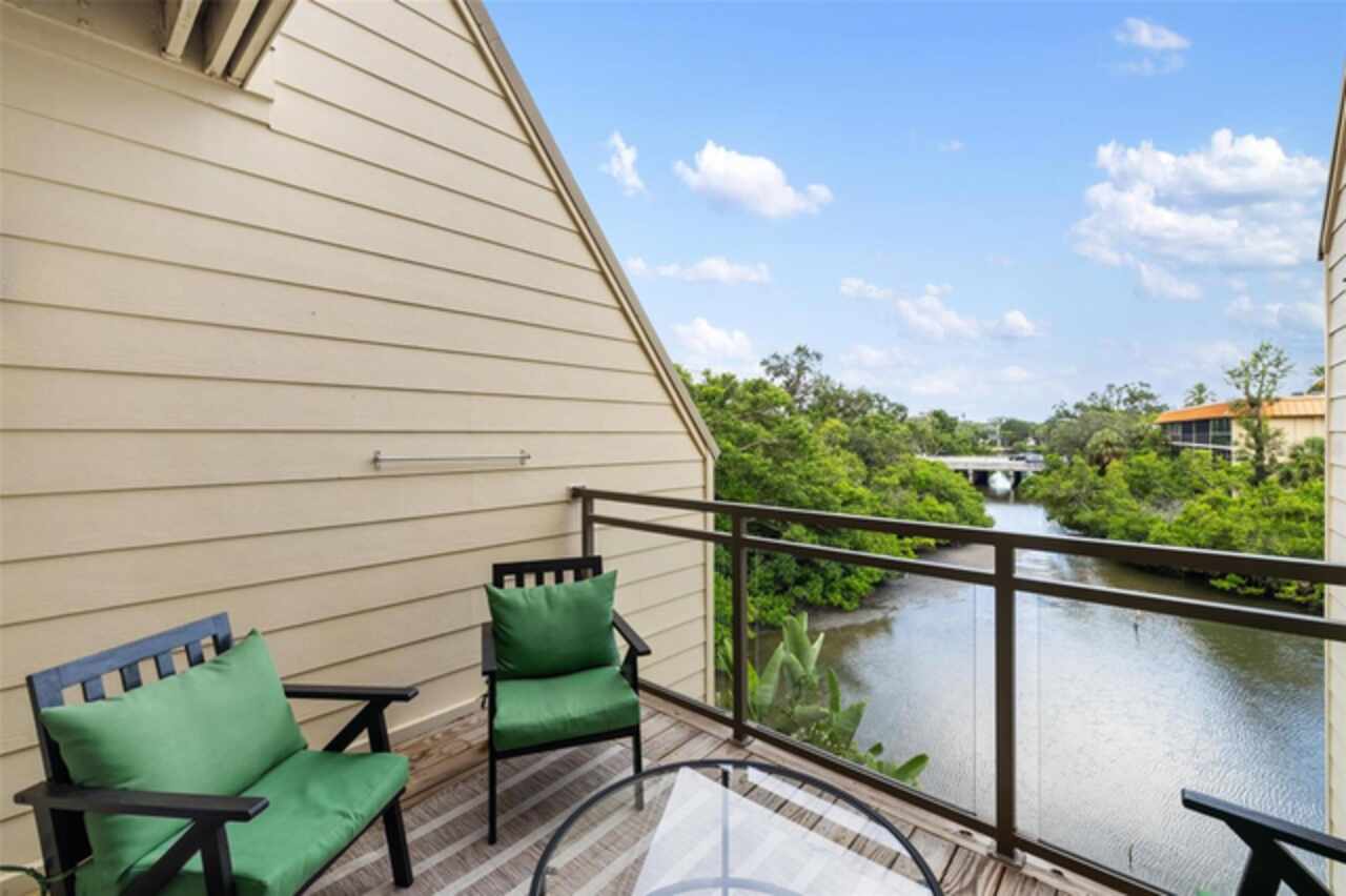 Hudson Oaks offers true waterfront living in the heart of downtown Sarasota, set in a lush and tranquil setting with water views and boating access. This beautifully updated 2-bedroom, 2-bath, two-story condo is part of a hidden-gem community tucked between historic Laurel Park and vibrant Burns Court. You’re just minutes from Sarasota’s top restaurants, boutique shops, Selby Gardens, the Bayfront, and a short ride to Lido Beach and St. Armands Circle. Hudson Oaks provides a blend of waterfront serenity and downtown convenience. Residents enjoy access to private boat docks, a kayak launch, a swimming pool, a grilling area, and a pedestrian bridge that connects directly to Laurel Park. The Hudson Bayou is a protected waterway with small-boat access to Sarasota Bay—ideal for kayaking, paddleboarding, or simply taking in the views. Inside, the home features a split-bedroom layout with both bedrooms located upstairs for privacy. The primary suite includes a walk-in closet and a private covered balcony with beautiful water views. The en-suite bathroom has been tastefully renovated with an upgraded vanity and a walk-in tiled shower with a glass door. The second bedroom is also spacious and filled with natural light. A fully updated guest bathroom with a modern vanity and tiled walk-in shower completes the upper level. Downstairs, the open-concept living and dining areas are bright and airy, with large sliding glass doors leading to a balcony that overlooks the bayou—perfect for relaxing or entertaining. The updated kitchen features granite countertops, pull-out shelving, stainless steel appliances, a subway-tile backsplash, and a pantry closet. A large center island offers additional prep space and room for casual seating. The layout is open to the living area and provides direct access to the fully screened-in balcony off the kitchen with a peaceful pool view, offering a separate outdoor space to enjoy. Recent upgrades include a new roof (2020), kitchen renovation (January 2025), and refreshed bathrooms with new vanities, sinks, faucets, and toilets. All windows and sliding doors come with clear hurricane panels, which are included in the sale. This condo also comes with the largest storage room in the building—perfect for bikes, beach gear, or seasonal items—and a covered carport with an EV hookup, exclusive to this unit in Building B. The HOA is financially strong and fully compliant with Florida’s updated SIRS (Structural Integrity Reserve Study) requirements, with a licensed reserve study specialist having completed the analysis. Schedule your private showing today and experience this rare opportunity for waterfront living in downtown Sarasota.