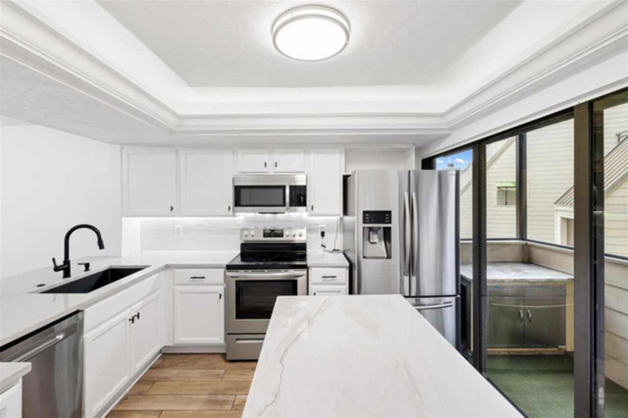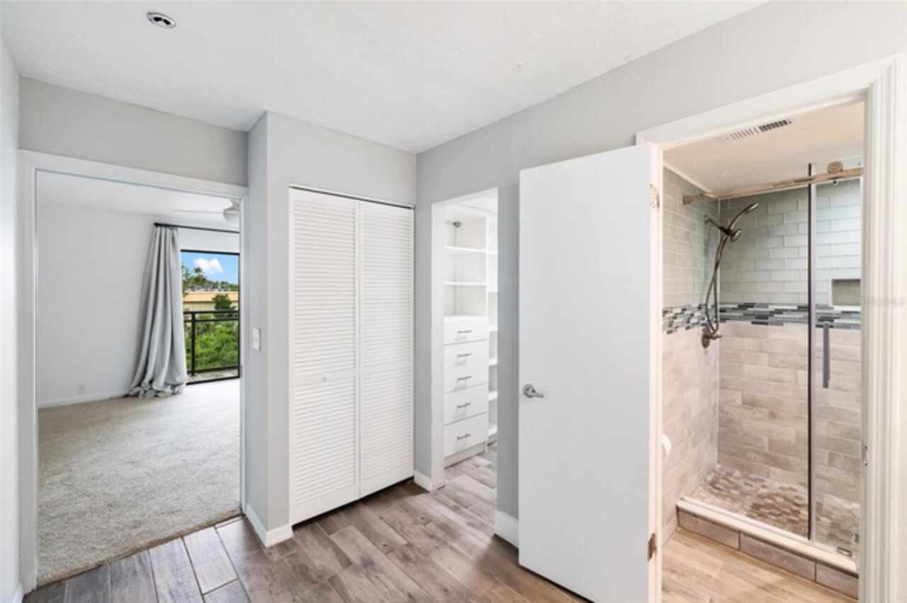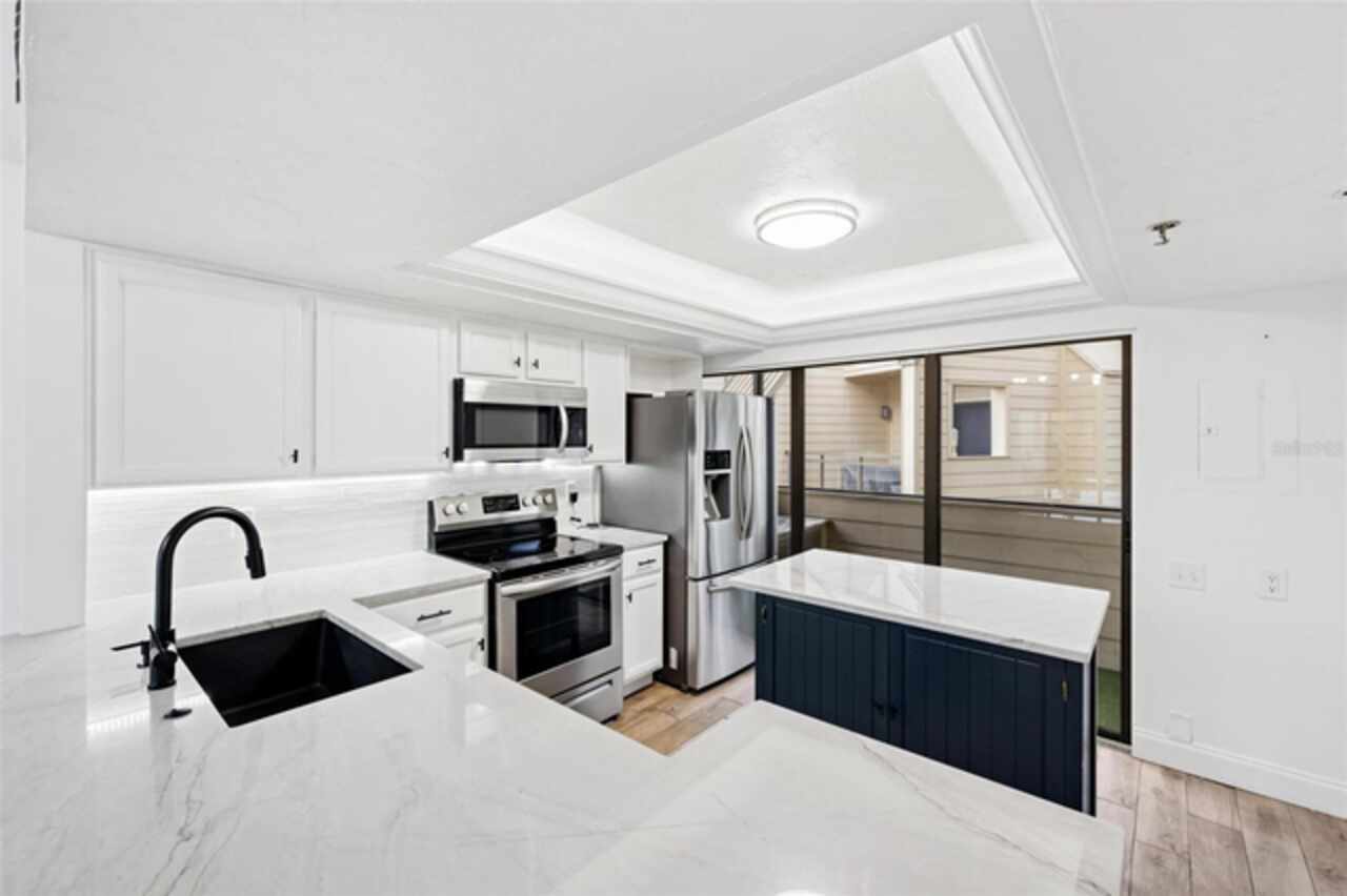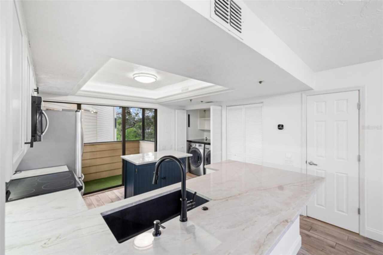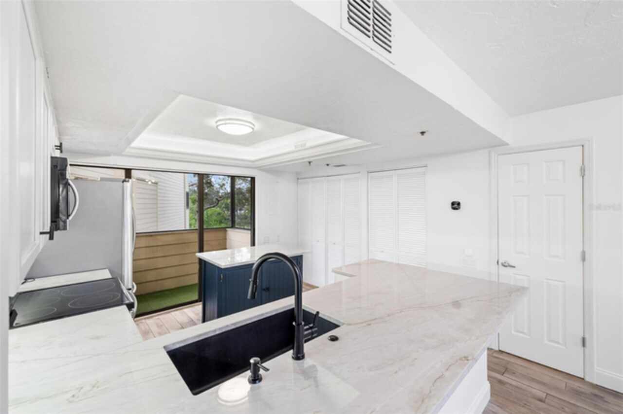 Hudson Oaks offers true waterfront living in the heart of downtown Sarasota, set in a lush and tranquil setting with water views and boating access. This beautifully updated 2-bedroom, 2-bath, two-story condo is part of a hidden-gem community tucked between historic Laurel Park and vibrant Burns Court. You’re just minutes from Sarasota’s top restaurants, boutique shops, Selby Gardens, the Bayfront, and a short ride to Lido Beach and St. Armands Circle. Hudson Oaks provides a blend of waterfront serenity and downtown convenience. Residents enjoy access to private boat docks, a kayak launch, a swimming pool, a grilling area, and a pedestrian bridge that connects directly to Laurel Park. The Hudson Bayou is a protected waterway with small-boat access to Sarasota Bay—ideal for kayaking, paddleboarding, or simply taking in the views. Inside, the home features a split-bedroom layout with both bedrooms located upstairs for privacy. The primary suite includes a walk-in closet and a private covered balcony with beautiful water views. The en-suite bathroom has been tastefully renovated with an upgraded vanity and a walk-in tiled shower with a glass door. The second bedroom is also spacious and filled with natural light. A fully updated guest bathroom with a modern vanity and tiled walk-in shower completes the upper level. Downstairs, the open-concept living and dining areas are bright and airy, with large sliding glass doors leading to a balcony that overlooks the bayou—perfect for relaxing or entertaining. The updated kitchen features granite countertops, pull-out shelving, stainless steel appliances, a subway-tile backsplash, and a pantry closet. A large center island offers additional prep space and room for casual seating. The layout is open to the living area and provides direct access to the fully screened-in balcony off the kitchen with a peaceful pool view, offering a separate outdoor space to enjoy. Recent upgrades include a new roof (2020), kitchen renovation (January 2025), and refreshed bathrooms with new vanities, sinks, faucets, and toilets. All windows and sliding doors come with clear hurricane panels, which are included in the sale. This condo also comes with the largest storage room in the building—perfect for bikes, beach gear, or seasonal items—and a covered carport with an EV hookup, exclusive to this unit in Building B. The HOA is financially strong and fully compliant with Florida’s updated SIRS (Structural Integrity Reserve Study) requirements, with a licensed reserve study specialist having completed the analysis. Schedule your private showing today and experience this rare opportunity for waterfront living in downtown Sarasota.