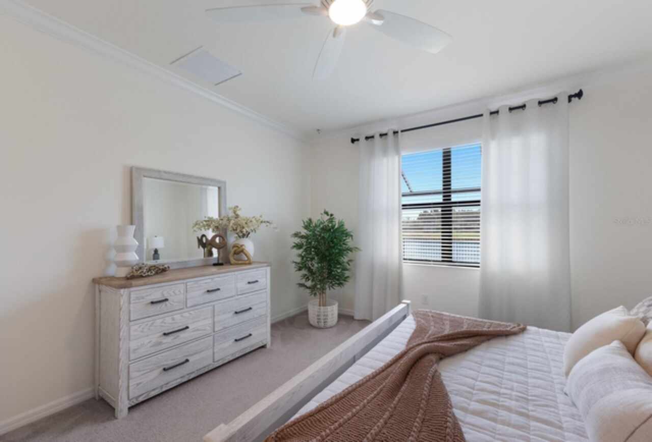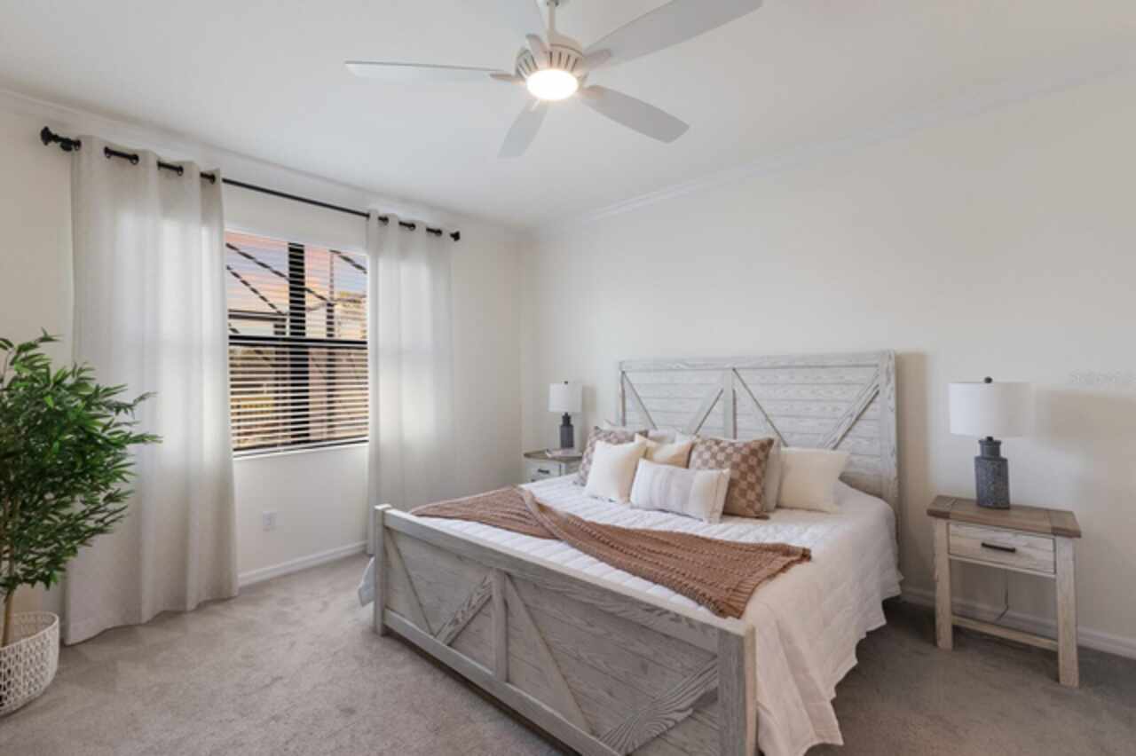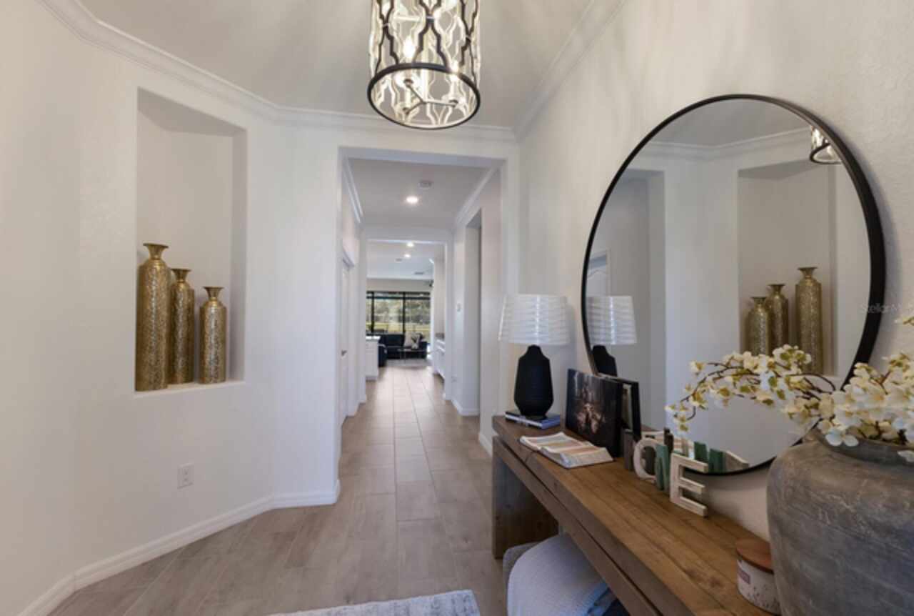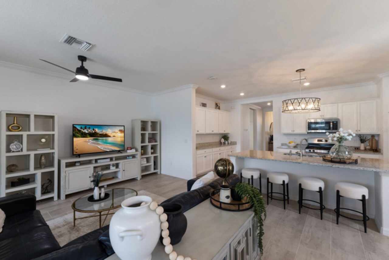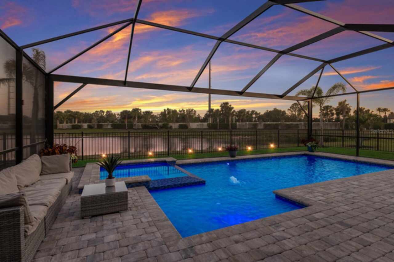 One or more photo(s) has been virtually staged. Home can be purchased FULLY FURNISHED if desired!! WELCOME to this STUNNING 3 bedroom + den, 3 bathroom Marsala model by Lennar, located in the highly sought after, SOLAR-POWERED, GATED community of Polo Run in Lakewood Ranch!!! From the moment you enter, you’ll be impressed by the thoughtful layout, upgraded finishes, and serene lake views. At the front of the home, you’ll find 2 generously sized bedrooms, each with its own ENSUITE full bath making it perfect for family or guests. A SPACIOUS den with double doors offers the ideal spot for a home office, playroom, or media room. The heart of the home features an open concept kitchen with granite countertops, an ISLAND with a dual stainless steel sink and counter seating, stainless steel appliances, and an abundance of cabinetry for plenty of storage. The adjacent dining area, which can be used for casual or formal dining, seamlessly transitions into the bright and spacious living room with plenty of windows and a triple panel slider that opens to your PRIVATE backyard oasis. Tucked away on the opposite side of the home for extra privacy, the owner’s suite boasts a WALK-IN closet and a LUXURIOUS ensuite bathroom complete with dual sinks, a relaxing garden tub, and a tiled walk-in glass shower. Step outside to your peaceful, covered, and screened-in lanai with CUSTOM pavers, a heated saltwater pool and spa... all overlooking the tranquil lake through an unobstructed PANORAMIC screen. Whether you’re hosting a gathering or winding down with a glass of wine, this space is the ultimate retreat. The fully FENCED backyard also provides a safe area for pets to play. Additional upgrades include ELEGANT tile flooring throughout the main living areas, upgraded lighting and ceiling fans, and energy-efficient solar panels that help keep your electric bills low while supporting a sustainable lifestyle. Polo Run offers resort style living with an impressive list of amenities such as a modern clubhouse, resort style pool, state-of-the-art fitness center, tennis and pickleball courts, basketball, bocce ball, a dog park, and a playground, which is all included with a low HOA fee. Lakewood Ranch is known for their A+ rated school system and is perfectly located just a short ride to downtown Sarasota, St. Pete, world class shopping, fine dining and the FAMOUS Gulf beaches! Don’t miss your chance to live in one of Lakewood Ranch’s solar-powered communities with maintenance free luxury and convenience and begin your FLORIDA Lifestyle!