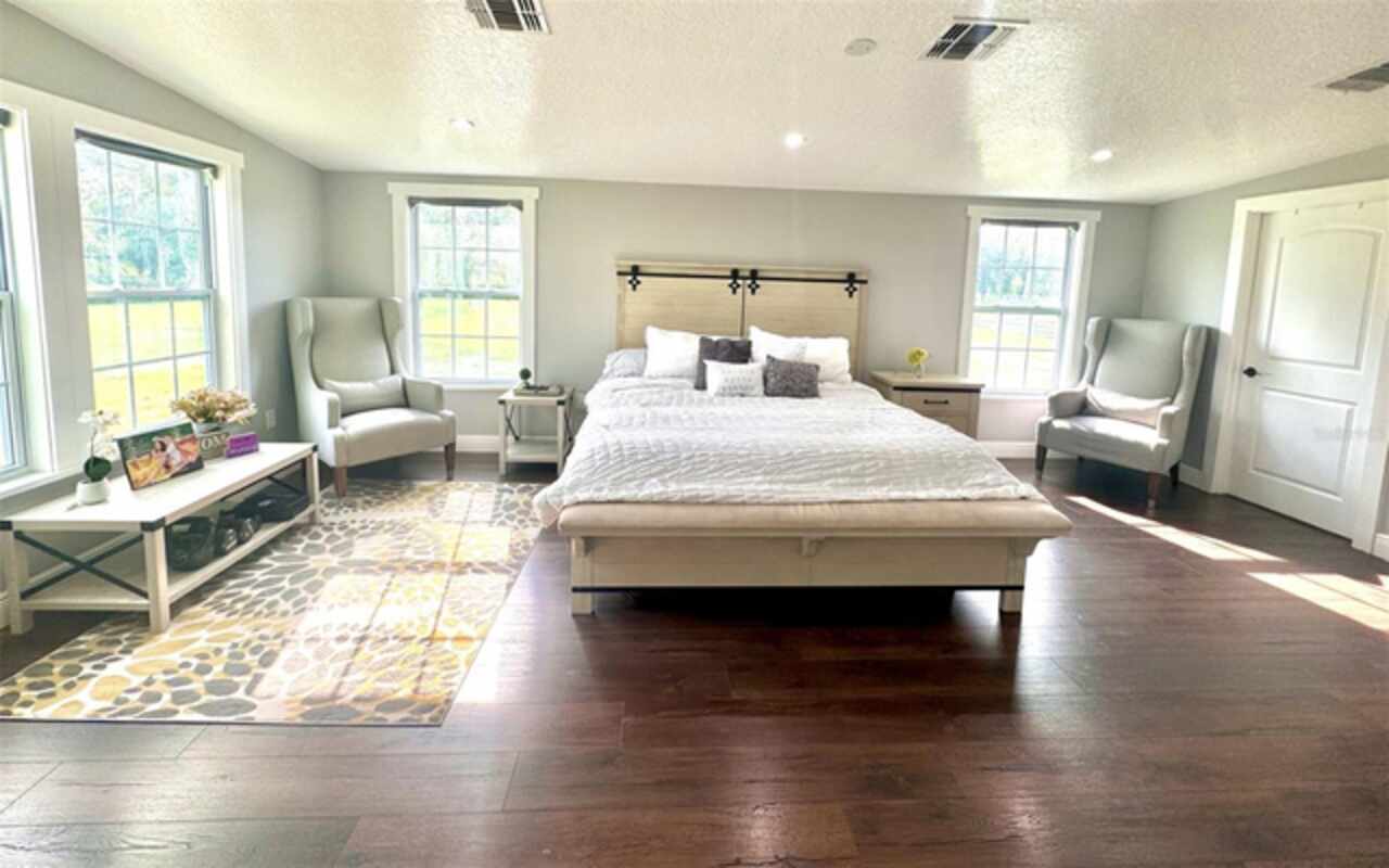 Stunning Country Retreat. Welcome to this beautifully renovated 2004 Fleetwood manufactured home, nestled on 4.85 fully cleared and fenced acres. Offering the perfect blend of privacy, space, and modern convenience, this property is located less than 1 mile from the Lake Apopka boat ramp, and a short drive to downtown Mount Dora. Inside, the spacious 2, 280 sq ft layout features 4 bedrooms and 3 bathrooms, with an open-concept design with a split-bedroom floor plan, ideal for families or multi-generational living. The home was fully renovated in 2022, including modern finishes throughout, central A/C, and a wood/metal frame with stucco exterior for lasting durability. The kitchen comes with stone countertops, 42" cabinets, and appliances that flow effortlessly into the living and dining areas—perfect for everyday living or entertaining guests. Outside, the land offers endless possibilities. The property has a remote entry-front gate. Currently on-site, the property includes dedicated enclosed spaces for chickens, goats, or other small livestock, horses are welcome too. A detached carport at the rear of the property provides covered parking or utility space.