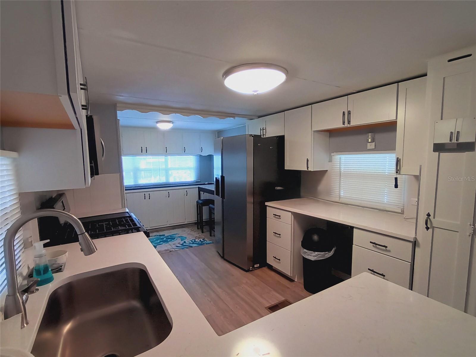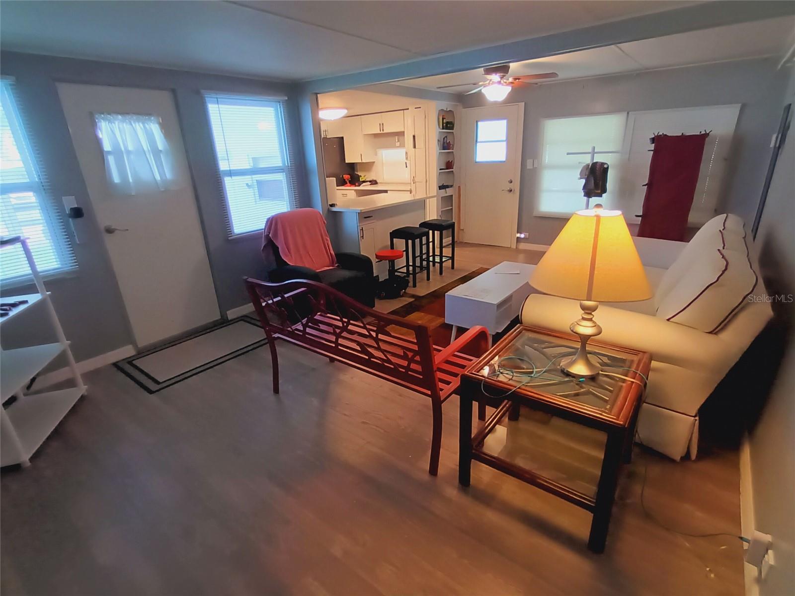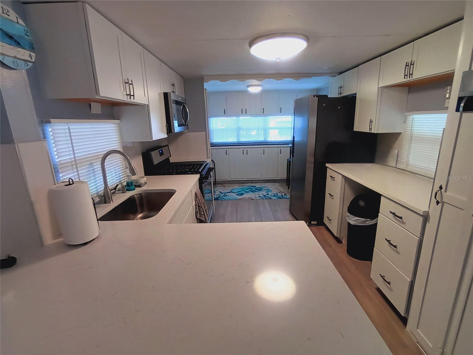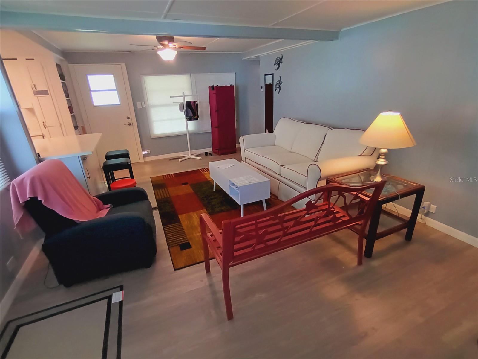 Furnished 2BR/2BA home with 1, 142 sq ft of living space and an optional third bedroom. Features include a remodeled kitchen with quartz countertops, new appliances, gas stove, and refrigerator with ice maker, plus luxury vinyl flooring, tiled bathrooms, walk-in showers, screened porch, new TPO roof, and carport. Located in Tri-Par Estates, enjoy year-round amenities like a heated/cooled pool, upcoming spa, pickleball, fitness center, game rooms, and arts and crafts classes. The clubhouse hosts regular social events. Minutes from downtown Sarasota, beaches, shopping, dining, and the airport. Land ownership included with no direct HOA fees—annual fee of $1, 648 is part of property taxes. Golf cart-friendly with optional RV/boat storage. Schedule your showing today!