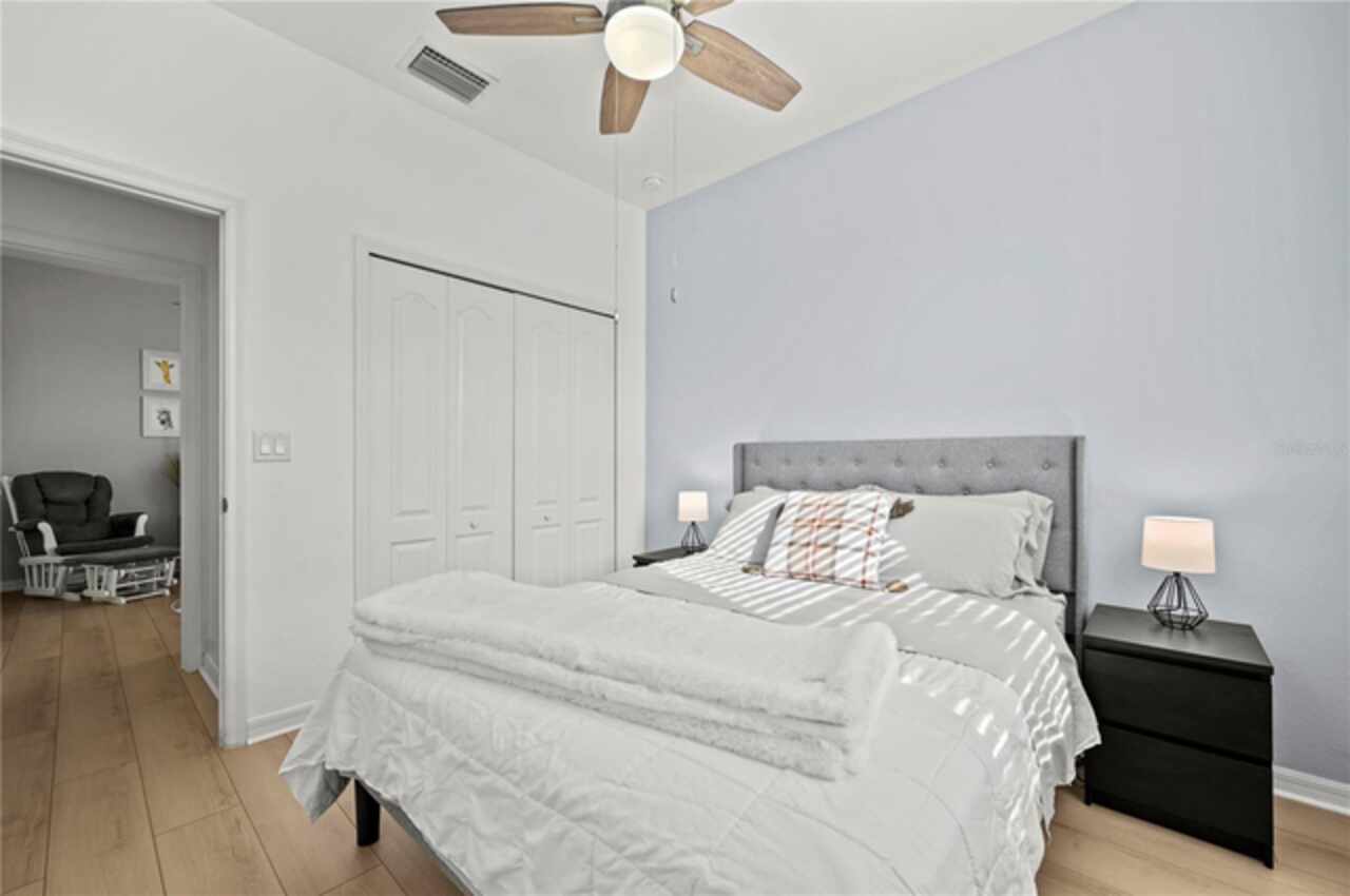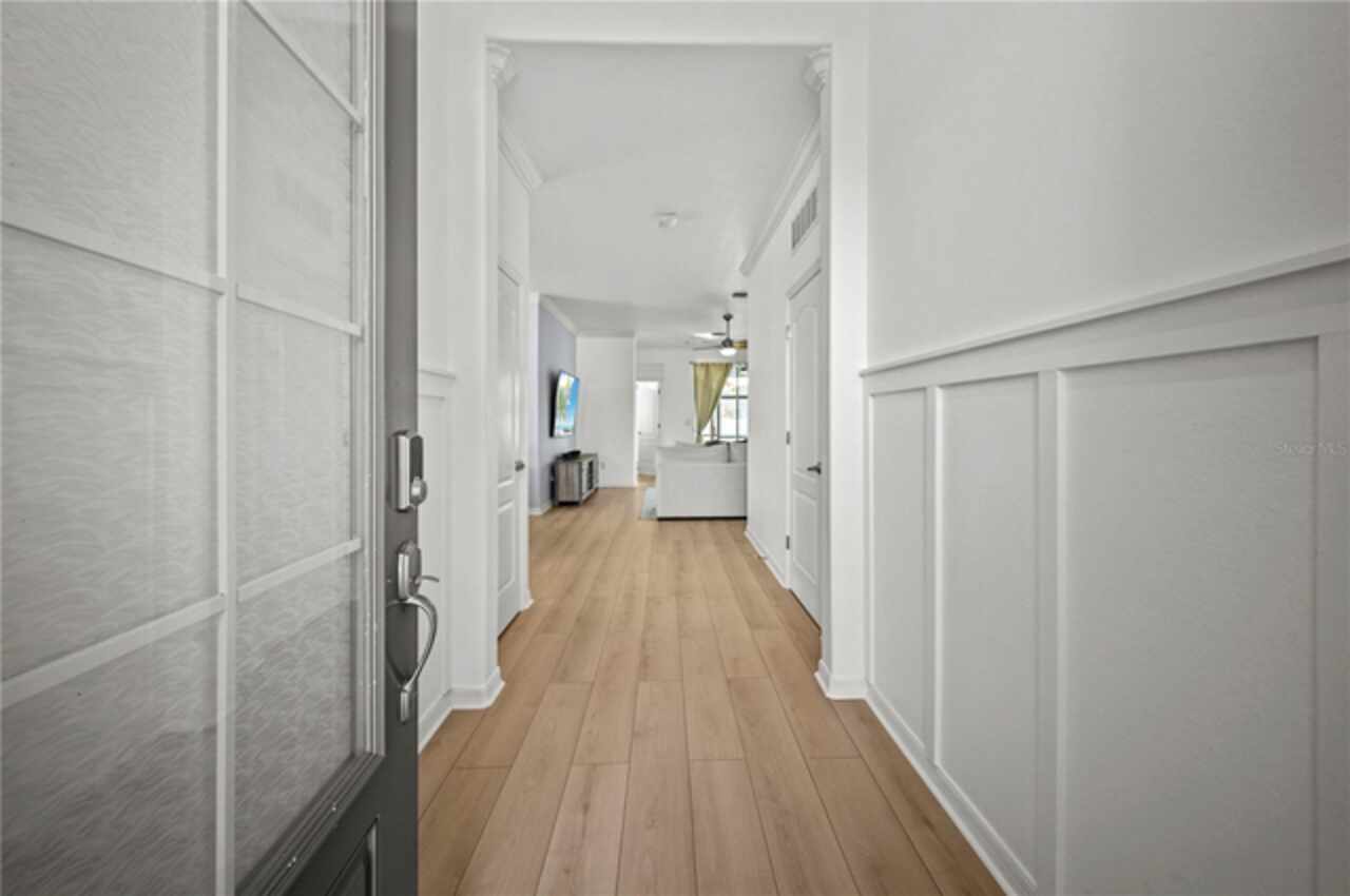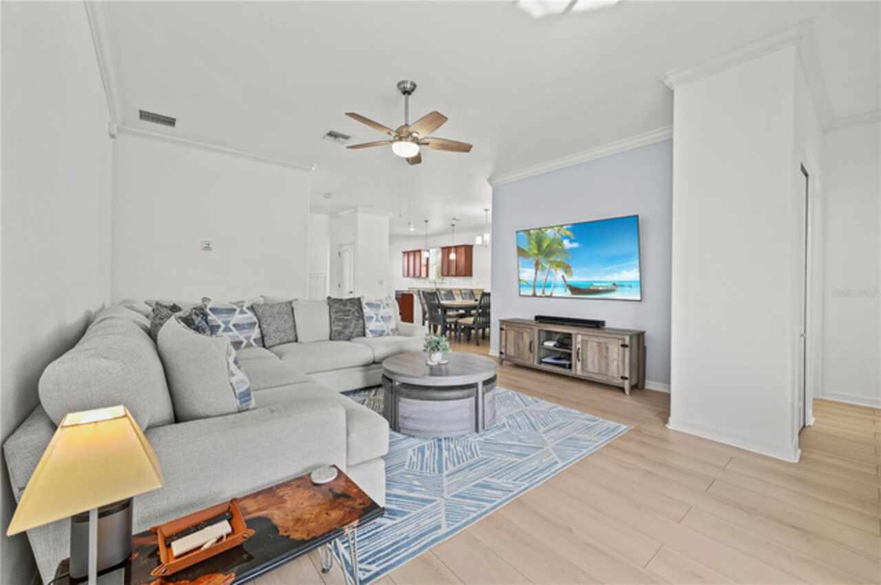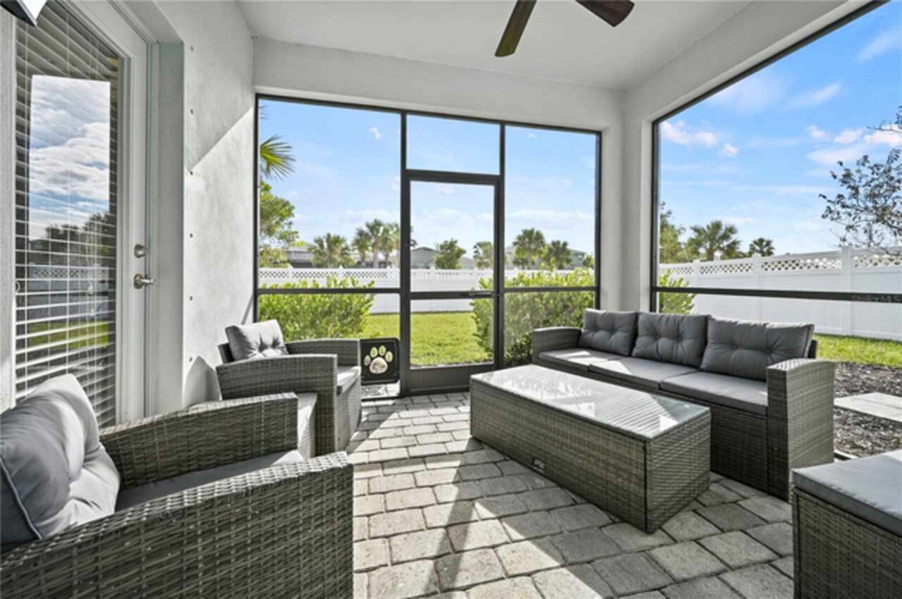 LOW HOA FEES AND FURNITURE NEGOTIABLE! Stunning Single-Family Home! Nestled in the heart of Babcock Ranch, this gorgeous 3-bedroom, 2-bathroom home offers nearly 1, 700 square feet of living space. From the moment you step through the front door, natural light floods the home, creating a warm, inviting atmosphere. As you enter, you’re greeted by an upgraded foyer featuring elegant board and batten detailing, setting the tone for the entire home. The foyer opens to spacious living and dining areas, leading to a chef’s dream kitchen. With ample counter space and room for meal prep and entertaining, this kitchen is ideal for everyday cooking and special gatherings. Recently updated in December 2024, the luxury vinyl flooring flows throughout most of the home, offering a sleek, modern feel. Tile accents are found in the smaller wet areas for added convenience. The expansive Primary Suite is separated from the two guest bedrooms, offering a private retreat. The home’s curb appeal is enhanced by a beautifully landscaped front yard with refined black mulch replacing traditional pine needles, creating a more polished, manicured look. The large backyard, fenced in 2023, offers plenty of space for outdoor activities and room for expansion. Whether relaxing or entertaining, the backyard is perfect for enjoying the outdoors. The entire interior was freshly painted in 2023, offering a clean, crisp aesthetic throughout. For added peace of mind, the home features a privately owned security system operated via an app, ensuring convenience and security for the new homeowners. Additional upgrades include an insulated 2-car garage with plenty of storage space. This home is truly move-in ready and offers a perfect blend of comfort, style, and modern amenities. Conveniently located just a short walk or quick 2-minute golf cart ride to Founder’s Square, this home is in Babcock Ranch, a community rich in amenities with abundant green spaces integrated throughout. Don't miss your chance to own this beautiful home in one of Southwest Florida’s most sought-after locations.