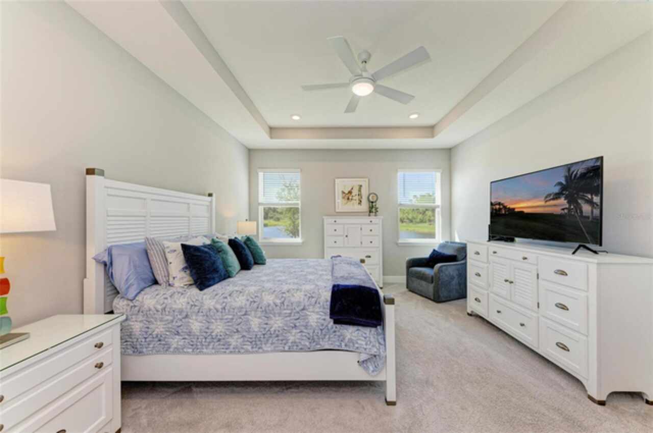 Under contract-accepting backup offers. SELLER OFFERING UP TO $10, 000 IN CLOSING COSTS/RATE BUY DOWN with acceptable offer! Gorgeous home on a PREMIUM POND & PRESERVE LOT! **Preferred lender is offering 1% of the loan amount as a LENDER CREDIT towards Buyer's CLOSING COSTS or INTEREST RATE BUYDOWNS on this specific home!** Nature lover's dream lot with a one-of-a-kind rear yard pond and preserve view! ALSO, this pie-shaped lot provides big rear yard space AND nice elbow room between your neighbors! ENJOY morning coffee or evening cocktails overlooking this tranquil pond with birds, turtles and fish! PLENTY of room for a POOL! Solera is a MAINTENANCE-FREE community so no yard work to do! This home has been meticulously cared for and feels like it's brand new! The Destin model is unique with a roomy, open floor plan, 4 full bedrooms, 3 full bathrooms and a 3 car garage. The 4th bedroom is unique as it is an ensuite with its own full bathroom and walk-in closet. The spacious kitchen with a center island is great for entertaining as it overlooks the living space and has beautiful granite tops, white subway tile backsplash, stainless steel appliances, a closet pantry and an eat-in-kitchen dining space. The great room also has a dining space for those larger social gatherings. Some upgrades and features include tray ceilings in the great room and primary bedroom, staggered ceramic tile in the living areas, 3 solar tubes in various areas to bring in natural light, ceiling fans and lighting have been upgraded throughout, triple slider opens to screened covered lanai space overlooking the pond and preserve. Primary bathroom has two sinks, garden tub, glass-enclosed shower and spacious walk-in closet. Solera has a gorgeous resort-style community pool with spacious pool deck and covered areas plus playgrounds. Reasonable HOA fees cover the amenities and grounds maintenance so you don't have to be concerned with yard work! The location of this community is ideal as it's in the heart of Lakewood Ranch with close proximity to shopping, restaurants, medical, UTC mall, the newly built Mote Marine Aquarium (almost completed), the new library, Lakewood Ranch Main Street, Waterside, SRQ Airport, Lakewood Ranch Medical Center, and our beautiful area beaches! A-Rated Schools!