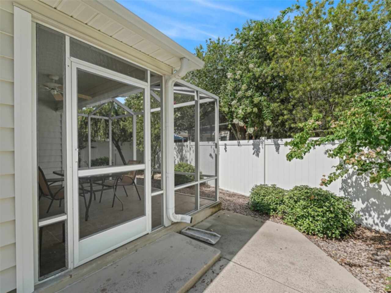 Welcome to this lovely Eagle model in Kingfisher Villas, located in the desirable Village of Pennecamp, perfectly situated between Lake Sumter Landing and Brownwood Square. This well-maintained 3-bed, 2-bath home features no carpet, a newer roof 2023, A/C 2019, and is move-in ready. Enjoy a private patio, birdcage, and fenced yard—perfect for your pups! Surrounded by golf courses, pools, and recreation, this home is ideal for snowbirds or full-time residents. All furniture and golf cart available separately. Priced to sell—don’t miss out!