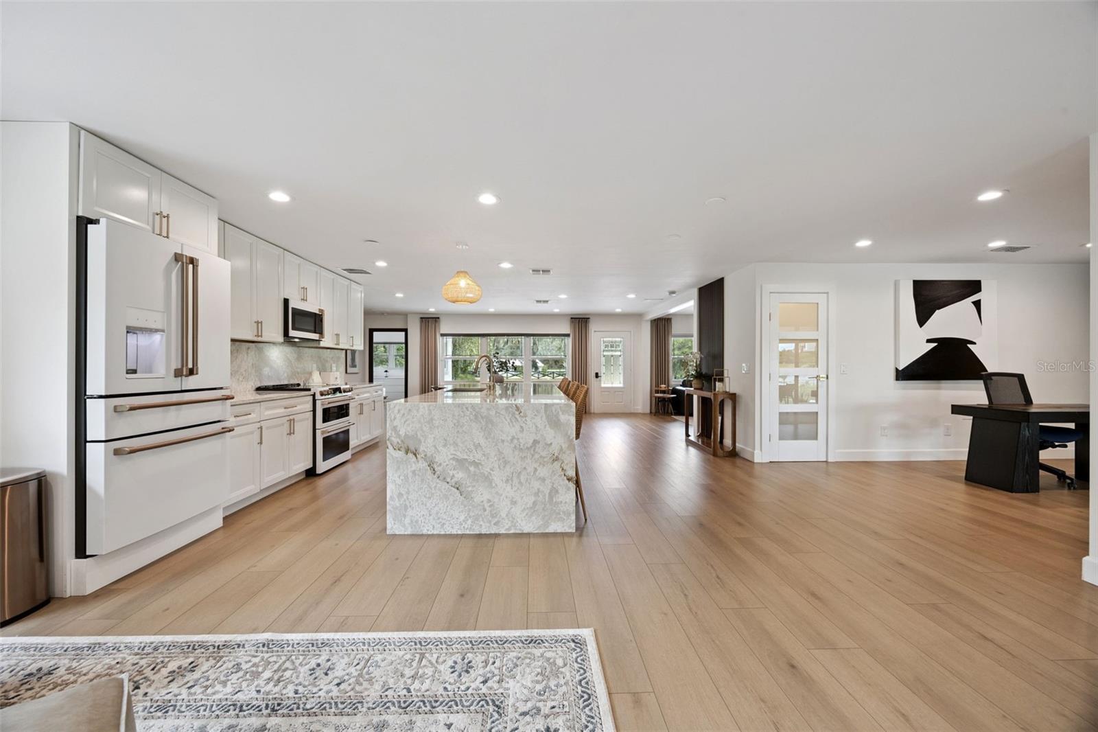 Located in the Rare Lake Avalon Rural Settlement where oversized lots and protected rural zoning create one of Winter Garden’s last truly rare, low-density communities. Welcome to this fully remodeled, modern lakefront retreat on the shores of Lake Avalon, offering the perfect balance of sophistication, privacy, and convenience. Situated on almost 1.5 acres of fenced, irrigated land, this stunning single-story home features 3 bedrooms, 3.5 baths, and approximately 2, 400 sq. ft. of living space with an attached 2-car garage—all meticulously updated with high-end finishes throughout. Step inside to an open, airy floor plan filled with natural light and luxury vinyl wood flooring that flows seamlessly from room to room. The gourmet kitchen is the heart of the home, featuring a dramatic quartz waterfall island, soft-close cabinetry, elegant gold accent hardware, and premium GE Cafe Matte white kitchen appliances, all included, along with washer and dryer. The kitchen overlooks a spacious dining area and family room, perfect for entertaining or relaxing by the wood-burning fireplace while taking in serene views of the backyard and lake beyond. The primary suite is a luxurious private retreat with two walk-in closets, direct access to the back porch, and a spa-style bathroom featuring double vanities, a beautifully tiled walk-in shower, and a freestanding soaking tub. The two additional bedrooms each have their own custom; modern bathrooms designed with premium tile and fixtures. Outside, the possibilities are endless. Enjoy the peaceful setting surrounded by mature trees, a large fire pit area, and a private pathway leading to your own dock—perfect for skiing, fishing, kayaking, or simply watching the sunset over Lake Avalon. Lake Avalon is a freshwater lake of about 184 acres in size and the lake supports fish species including largemouth bass and blue catfish. The property offers ample space for a boat, RV, or multiple vehicles along the extended paved driveway, with no HOA restrictions, allowing you the freedom to add a guest house, barn, or workshop if desired. Major updates include: Roof (2021), A/C (2021), Plumbing (2019), Water Heater (2020), Windows (2019), Septic (2019 and clean out 2025), Well Pump (2025), Water Softener & Purification System (2021). The home operates on well and septic, ensuring low utility costs and self-sufficiency. Located just minutes from Historic Downtown Winter Garden, Fowler’s Grove, and Hamlin Town Center, you’ll enjoy the best of both worlds—city conveniences with a peaceful, country feel. This home truly has it all: acreage, lake access, privacy, and luxurious modern design—all move-in ready for the holidays. There’s simply nothing else like it on the market. Come experience lakefront living at its finest in one of Central Florida’s most desirable locations. Call for your private tour today!