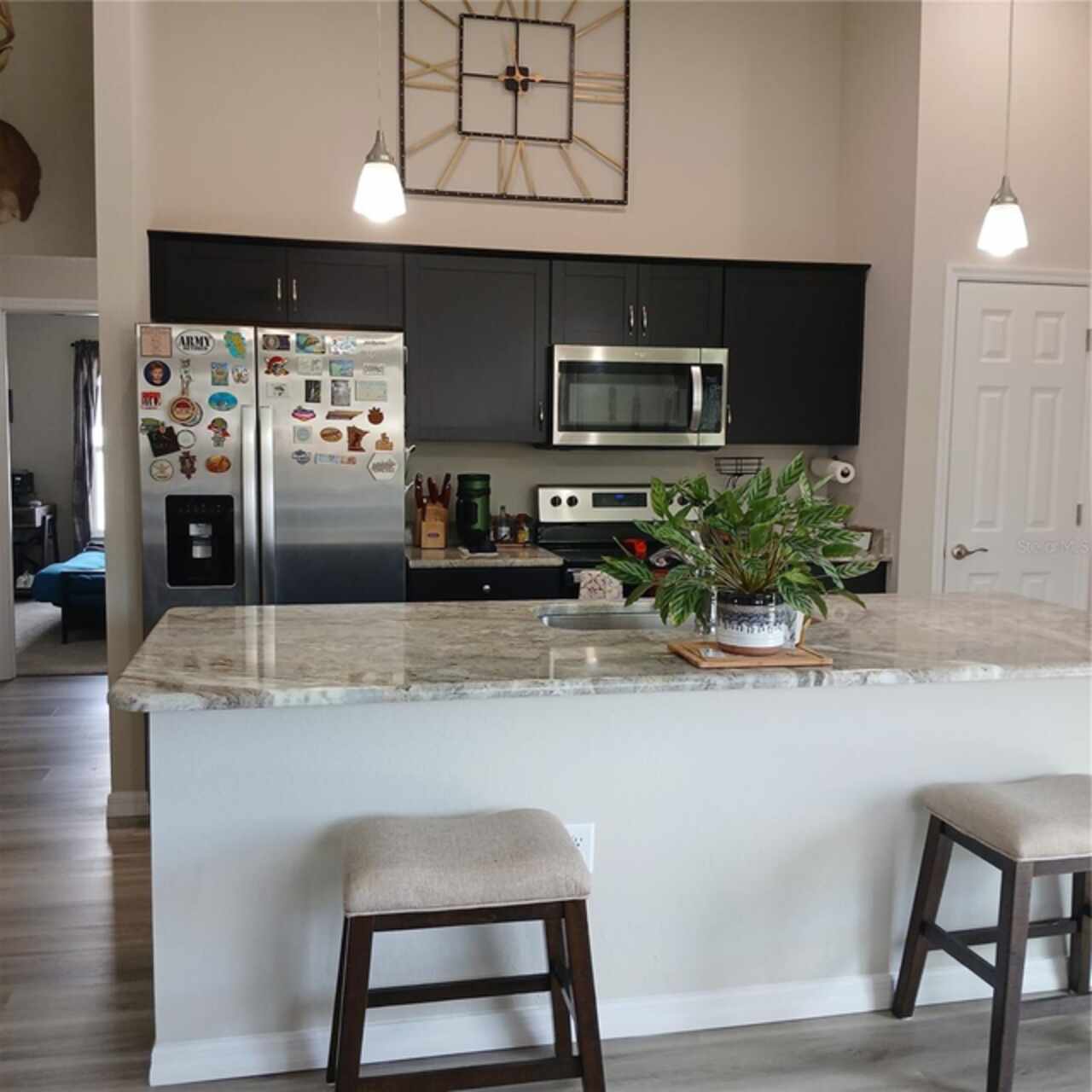 Ceiling Fans(s), Eat-in Kitchen, High Ceilings, Living Room/Dining Room Combo, Open Floorplan, Primary Bedroom Main Floor, Stone Counters