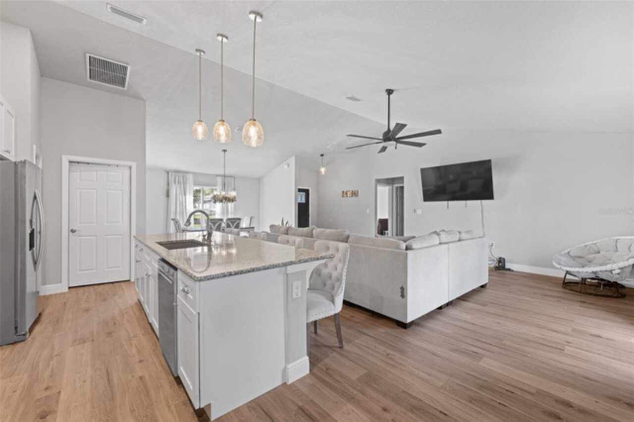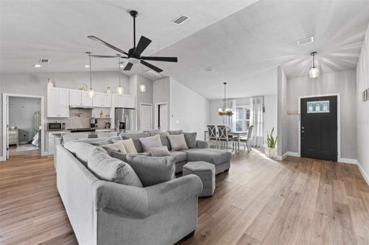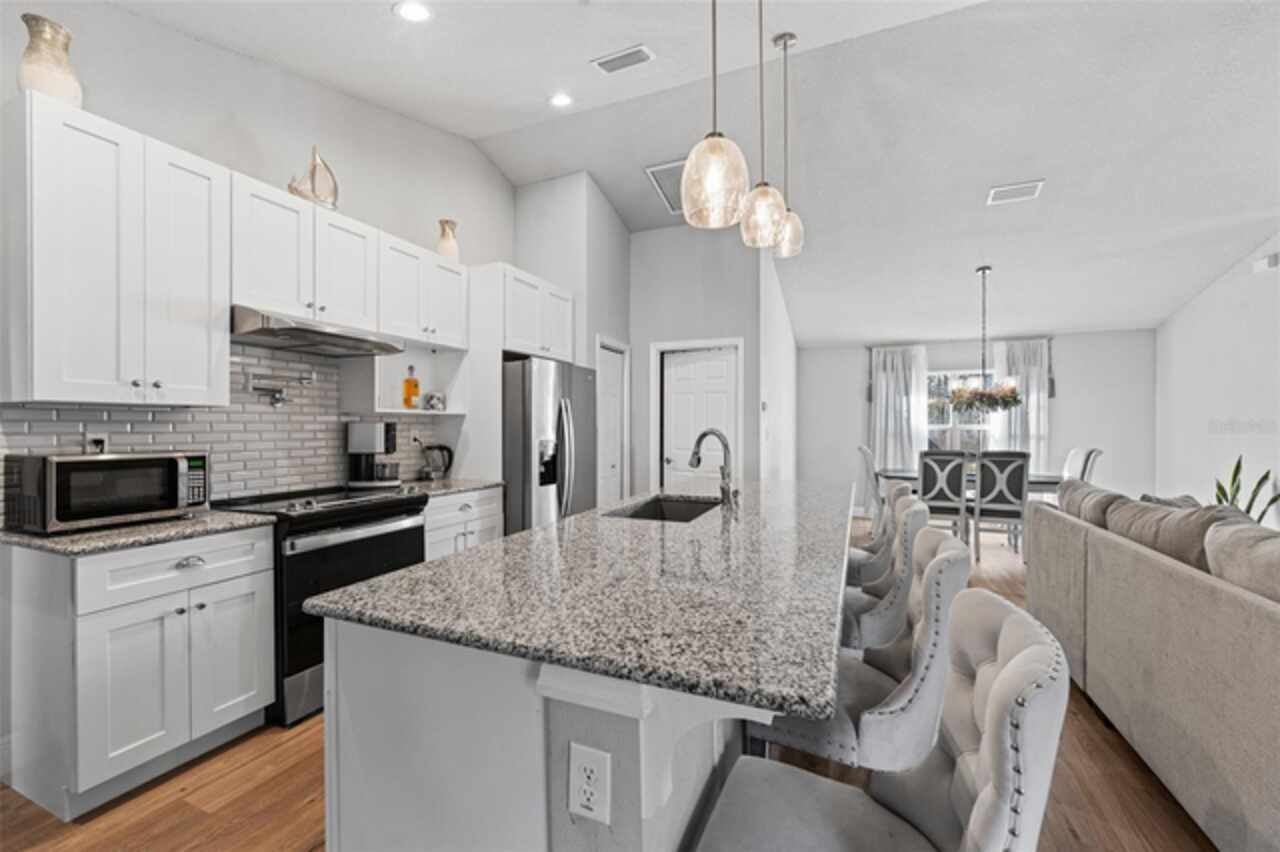 Short Sale. Welcome Home to Your Dream Retreat in Marion Oaks! MOTIVATED SELLERS!!!! Step into this stunning, nearly new home and feel an instant sense of warmth and elegance. Just 1.5 years young, this beauty greets you with a long, inviting driveway, eye-catching stone accents, and a gorgeous front door featuring a decorative window that sets the tone for what’s inside. As you walk through the door, be prepared to fall in love with the open, airy floor plan that flows effortlessly under the glow of upgraded light fixtures and abundant natural light streaming through large windows. No carpet here! The gorgeous vinyl plank flooring runs throughout, adding both style and easy maintenance. At the heart of the home, the chef’s dream kitchen is ready to impress! A spacious 9-foot island makes the perfect gathering spot, while granite countertops, an elegant granite sink, upgraded cabinetry, stylish tile backsplash, and stainless steel Whirlpool appliances (including a sleek slide-in range and range hood) create a show-stopping space. And yes—there’s even a pot filler for added convenience! The thoughtful upgrades continue throughout the home, from 6-inch trimmed baseboards to upgraded ceiling fans and charming French doors leading to the backyard. The luxurious master bath is a true sanctuary, featuring a walk-in shower with exquisite glass and decorative tile accents. No HOA! Enjoy the freedom of homeownership with no added fees while taking advantage of the Marion Oaks Community Center’s basketball court, shuffleboard, beach volleyball, and playground.
