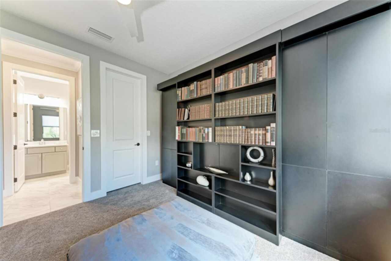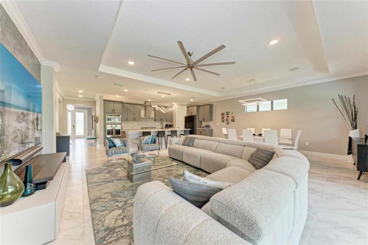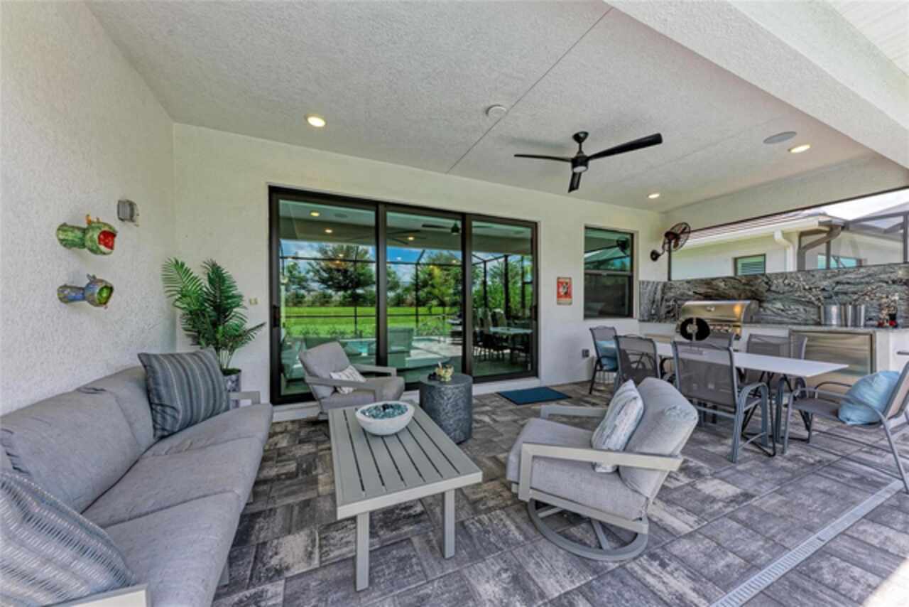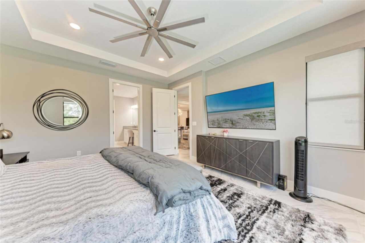 Just bring your suitcase—this turnkey home is move-in ready and can be sold fully furnished at your request. The choice is yours! Skip the 9 month wait for new construction — move into your dream home in just 30 days! Experience the perfect blend of luxury, comfort, and resort-style living in this exquisite 4-bedroom + flex room, 4-bathroom pool home located in Cresswind, Lakewood Ranch’s premier 55+ community. Thoughtfully upgraded inside and out, this home offers refined living spaces, a serene backyard retreat, and access to world-class amenities — all without the wait. Hurricane-impact windows and a whole-house generator hookup provide year-round security. Inside, the open-concept design is filled with elegant finishes and high-end upgrades. The gourmet kitchen is a chef’s delight, boasting an upgraded microwave/oven, Insta-hot faucet, custom-finished pantry, and a stunning stone-accented island — perfect for entertaining. The great room impresses with a custom feature wall, built-in entertainment system, motorized shades, and an added architectural column for style and dimension. The owner’s suite is a true retreat, featuring dual shower heads, motorized shades, finished closets, and additional outlets for convenience. Guest bedrooms and the versatile flex room offer custom cabinetry, a Murphy bed, built-in desk, and ceiling fans. Fresh interior paint and professionally cleaned/sealed tile floors with a 5-year warranty complete the move-in-ready appeal. The upstairs is perfect for family or out of town guests. Outdoor Living at Its Finest Step outside to your private oasis. The expansive screened lanai features a custom outdoor kitchen, ceiling fan, speakers, TV hookup, and ambient cage lighting. Relax in the resort-style saltwater pool and spa, complete with a pool railing and extra spa step for ease. Upgraded travertine pavers, lush landscaping, stone pathways, and an extended concrete pad create a perfect space for entertaining or unwinding in style. Additional Upgrades Include a whole-home water filtration system, wireless access points in the lanai and great room, front path and lanai lighting whole-house gutters & enhanced irrigation system timed garage and entryway lighting. The unbeatable Location is just minutes from the Lakewood Ranch Library, Waterside Place, shopping, dining, and UTC, with easy access to I-75, downtown Sarasota, and the Gulf Coast’s stunning beaches. This pet-friendly, well-managed 55+ community offers over 250 acres of amenities, including a resident-exclusive clubhouse, SmartFit/EGym training center, yoga and art studios, card rooms, pickleball and tennis courts, bocce, walking trails, an event lawn for food trucks, and a heated resort pool and spa — all overseen by a full-time lifestyle director. Don’t wait months for new construction — this upgraded luxury home is ready for you today. Schedule your private showing and start living the Lakewood Ranch lifestyle now!