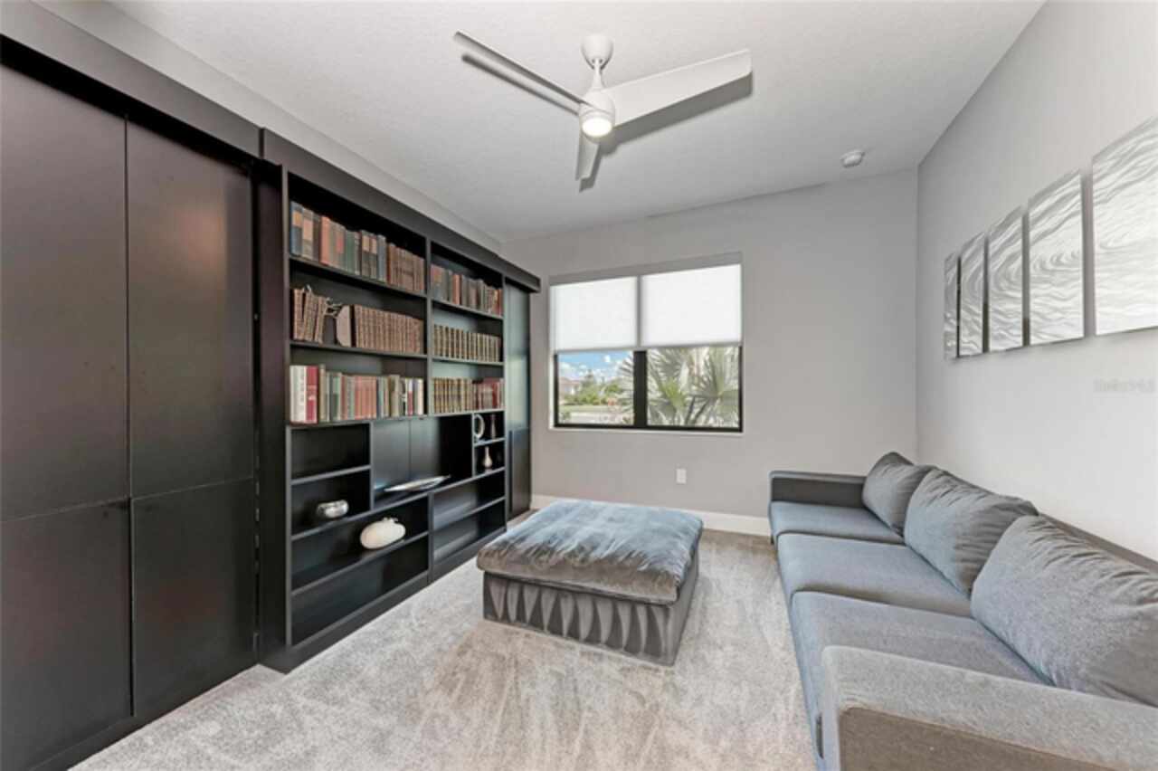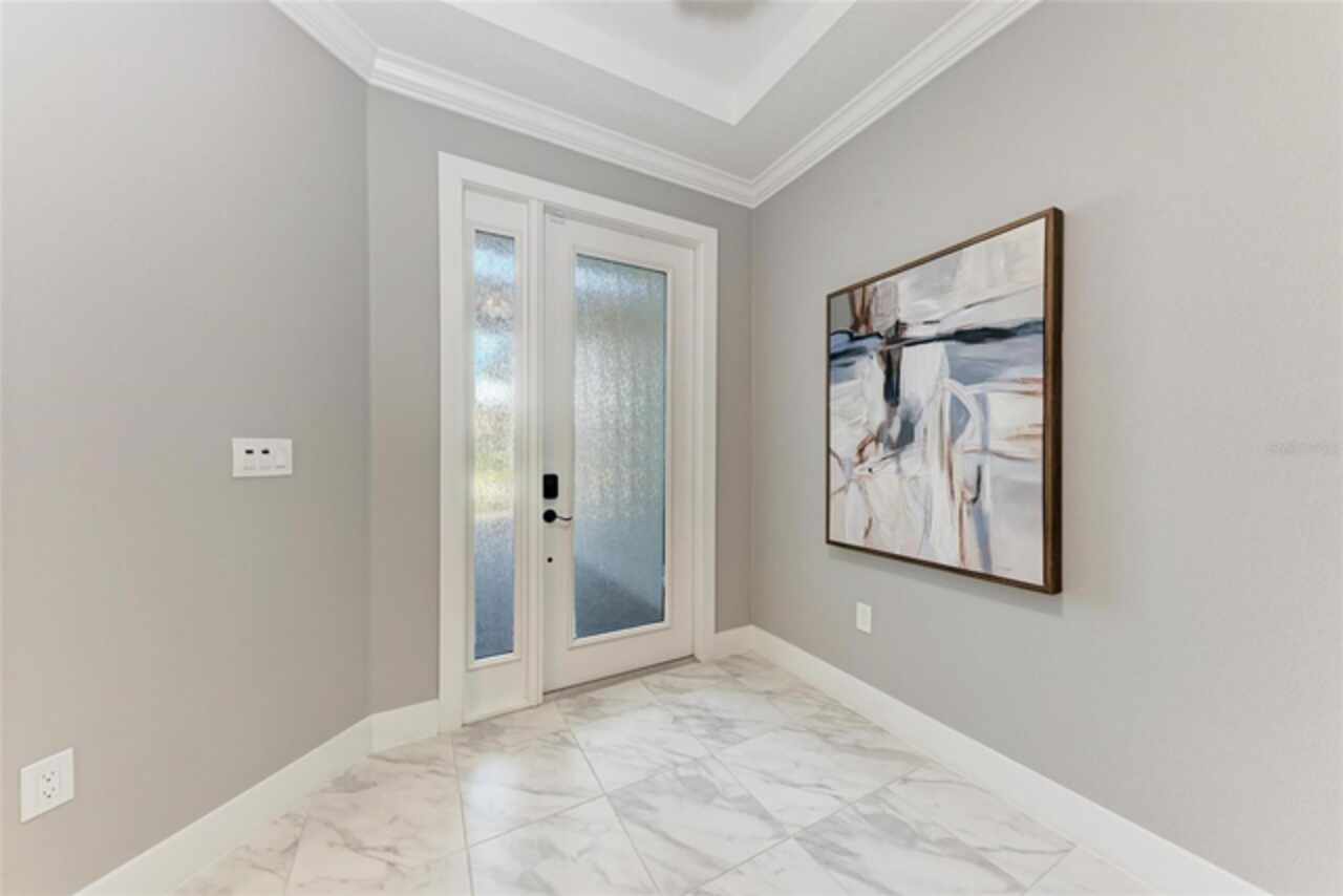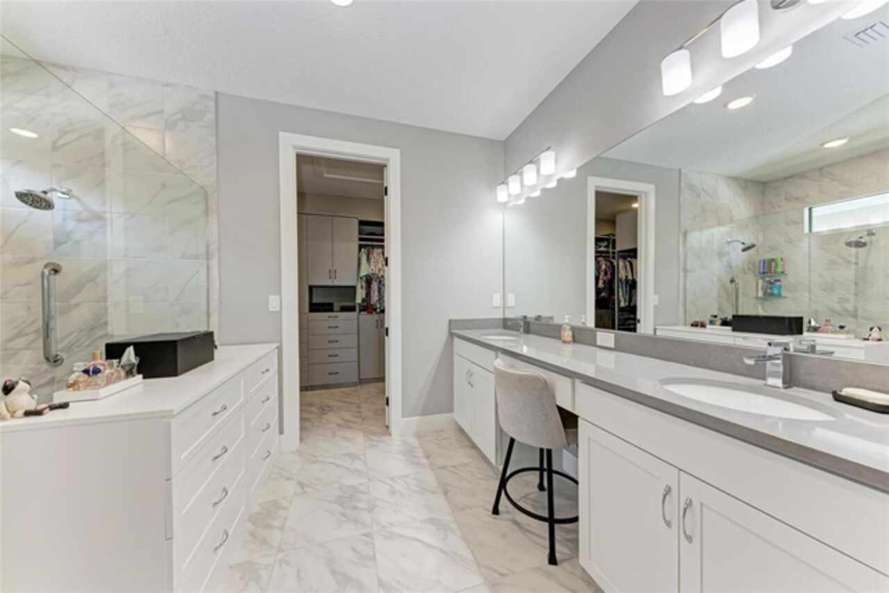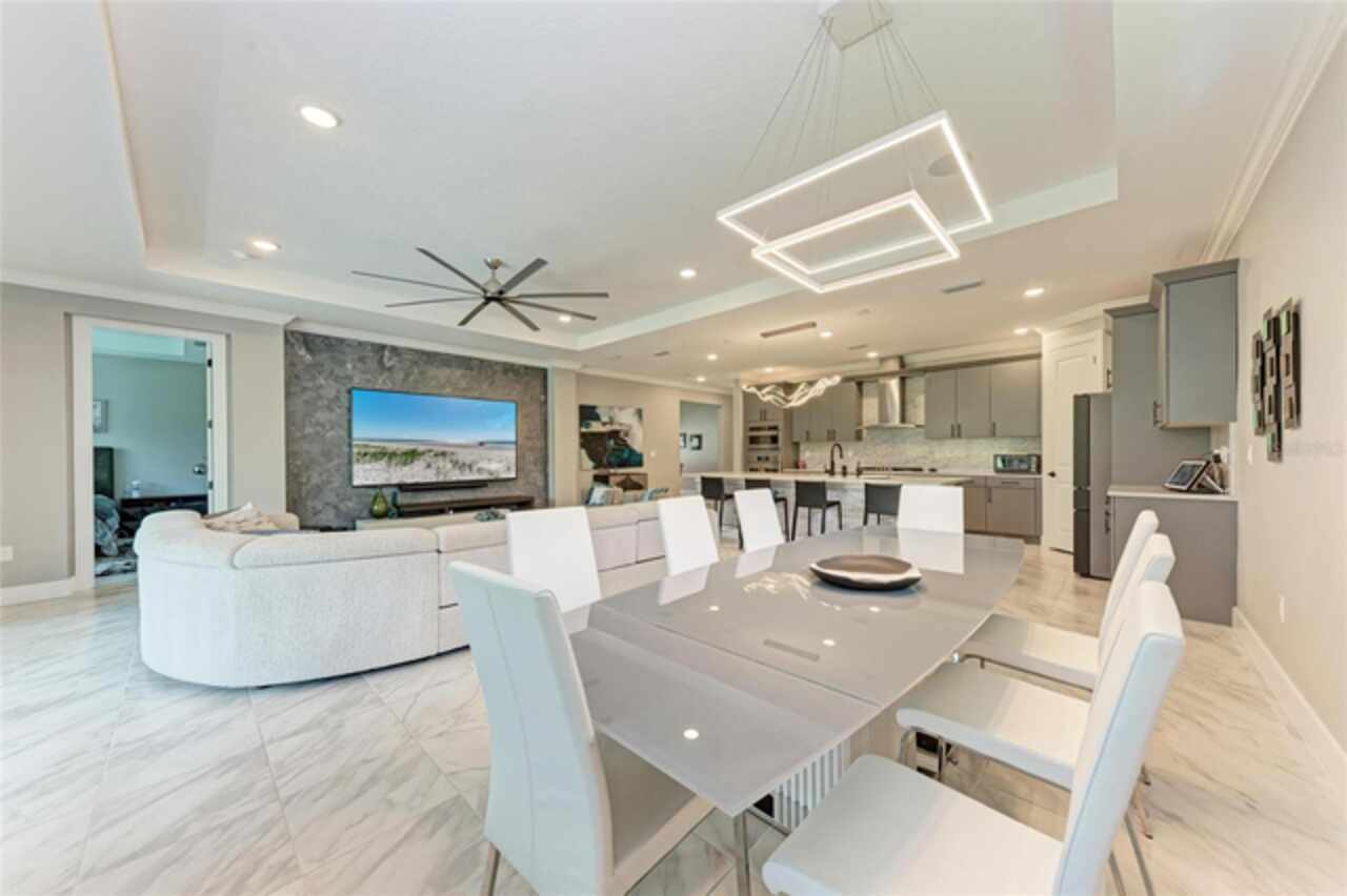Just bring your suitcase—this turnkey home is move-in ready and can be sold fully furnished at your request. The choice is yours! Skip the 9 month wait for new construction — move into your dream home in just 30 days! Experience the perfect blend of luxury, comfort, and resort-style living in this exquisite 4-bedroom + flex room, 4-bathroom pool home located in Cresswind, Lakewood Ranch’s premier 55+ community. Thoughtfully upgraded inside and out, this home offers refined living spaces, a serene backyard retreat, and access to world-class amenities — all without the wait. Hurricane-impact windows and a whole-house generator hookup provide year-round security. Inside, the open-concept design is filled with elegant finishes and high-end upgrades. The gourmet kitchen is a chef’s delight, boasting an upgraded microwave/oven, Insta-hot faucet, custom-finished pantry, and a stunning stone-accented island — perfect for entertaining. The great room impresses with a custom feature wall, built-in entertainment system, motorized shades, and an added architectural column for style and dimension. The owner’s suite is a true retreat, featuring dual shower heads, motorized shades, finished closets, and additional outlets for convenience. Guest bedrooms and the versatile flex room offer custom cabinetry, a Murphy bed, built-in desk, and ceiling fans. Fresh interior paint and professionally cleaned/sealed tile floors with a 5-year warranty complete the move-in-ready appeal. The upstairs is perfect for family or out of town guests. Outdoor Living at Its Finest Step outside to your private oasis. The expansive screened lanai features a custom outdoor kitchen, ceiling fan, speakers, TV hookup, and ambient cage lighting. Relax in the resort-style saltwater pool and spa, complete with a pool railing and extra spa step for ease. Upgraded travertine pavers, lush landscaping, stone pathways, and an extended concrete pad create a perfect space for entertaining or unwinding in style. Additional Upgrades Include a whole-home water filtration system, wireless access points in the lanai and great room, front path and lanai lighting whole-house gutters & enhanced irrigation system timed garage and entryway lighting. The unbeatable Location is just minutes from the Lakewood Ranch Library, Waterside Place, shopping, dining, and UTC, with easy access to I-75, downtown Sarasota, and the Gulf Coast’s stunning beaches. This pet-friendly, well-managed 55+ community offers over 250 acres of amenities, including a resident-exclusive clubhouse, SmartFit/EGym training center, yoga and art studios, card rooms, pickleball and tennis courts, bocce, walking trails, an event lawn for food trucks, and a heated resort pool and spa — all overseen by a full-time lifestyle director. Don’t wait months for new construction — this upgraded luxury home is ready for you today. Schedule your private showing and start living the Lakewood Ranch lifestyle now!