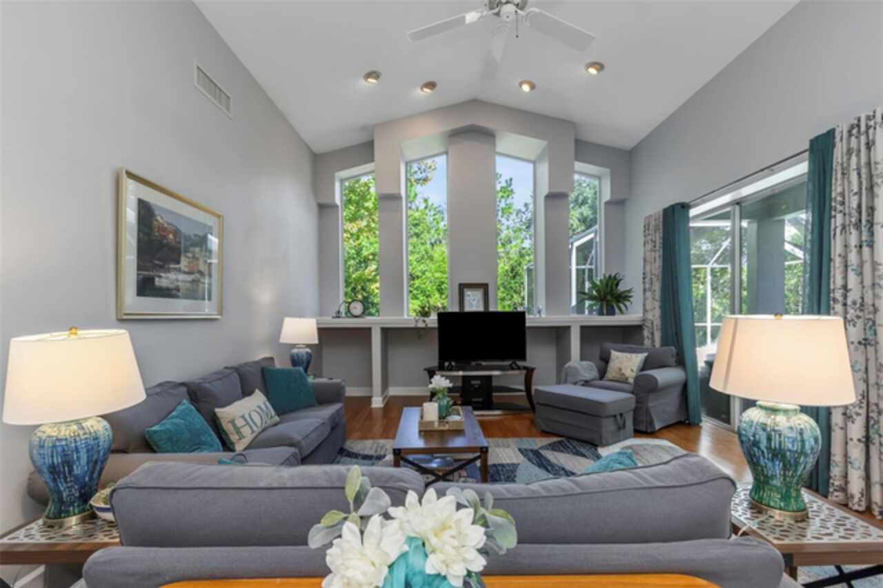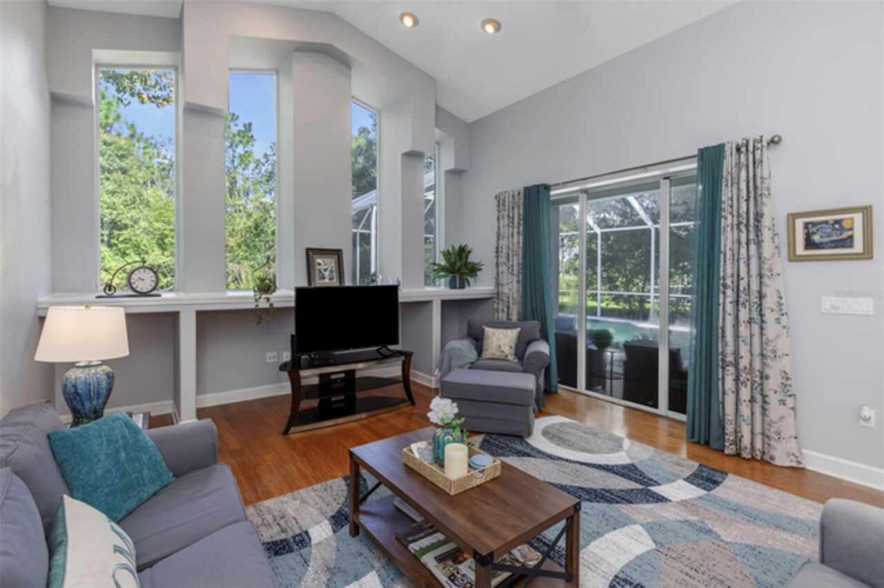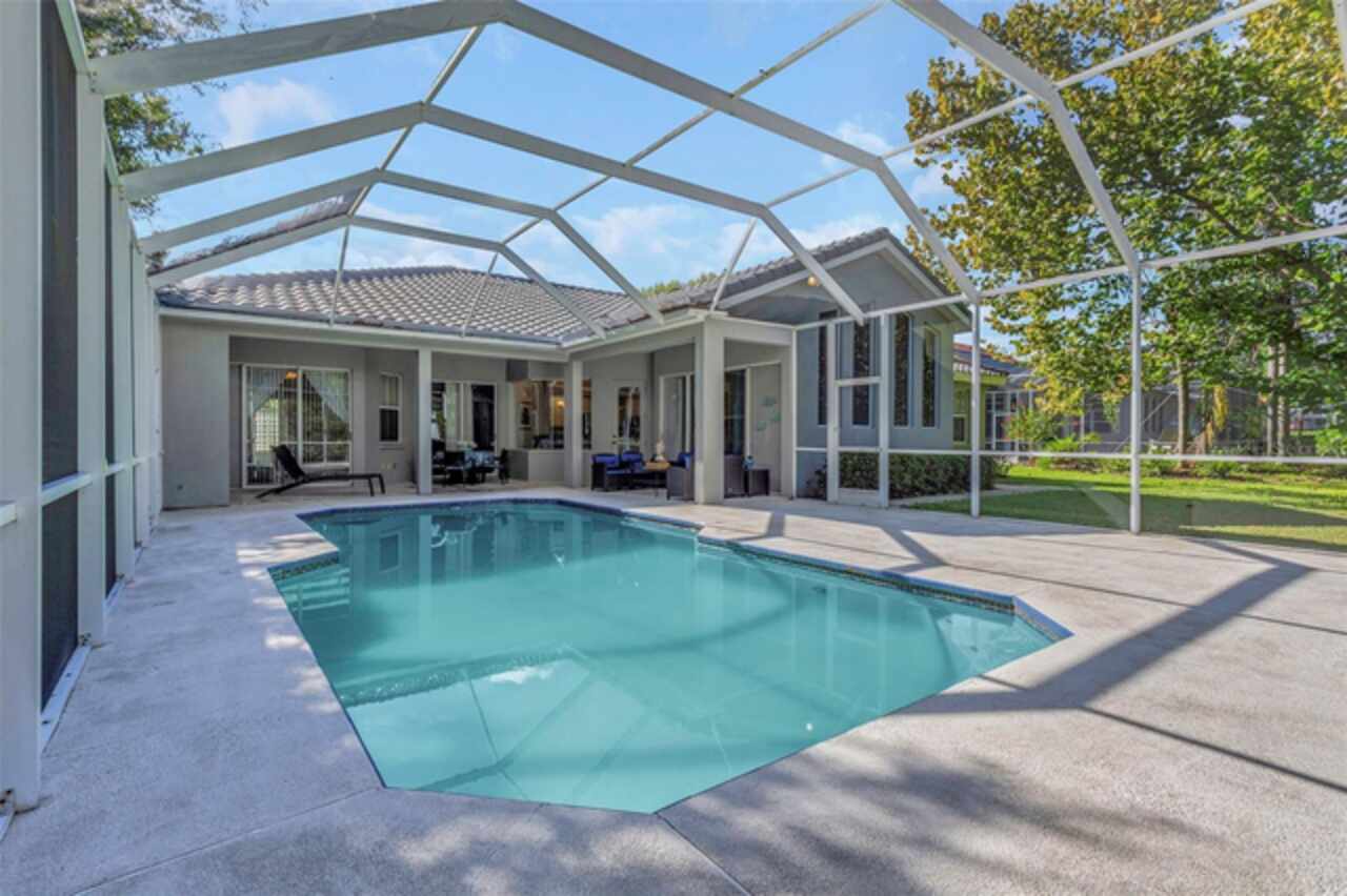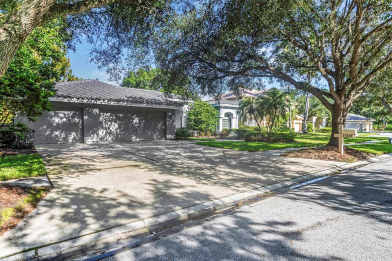 PRICE REDUCED! Welcome to this bright and inviting 5-bedroom, 3-bath, and 3-car garage home set on a quiet cul-de-sac street within the exclusive double-gated community of Hunters Green. New roof (2022), new refrigerator (2025) new waterheater (2025), new washer and dryer (2024), dishwasher (2025), new pool pump (2025) and freshly painted (2025), well-maintained, and lovingly cared for, this home is ready to be passed on to its next proud homeowner. Soaring ceilings, abundant windows, and an open layout fill the space with natural light and a warm, welcoming ambiance. The spacious kitchen overlooks the living room and offers an island, breakfast nook, and ample counter space for the home chef. Step outside to an oversized screened pool and large covered lanai with serene conservation and golf course views, offering both beauty and privacy. Hunter's Green provides resort-style amenities including a championship golf course, country club, playgrounds, tennis courts, picnic areas, and miles of sidewalks perfect for walking, jogging, or biking. This peaceful, safe neighborhood blends long-term residents with young families, and offers quick access to I-75, shopping, dining, and downtown Tampa, close to Pinellas beaches and about 50 miles to Orlando's theme parks. American Home Shield best home warranty coverage is offered to the new homeowners!